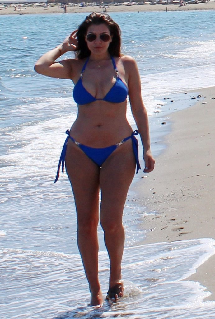 Imogen Thomas exibe seu corpo sexy na praia em Marbella, 24/05/2018. A modelo e estrela de TV de 35 anos usava um biquíni azul Chasing Summer.