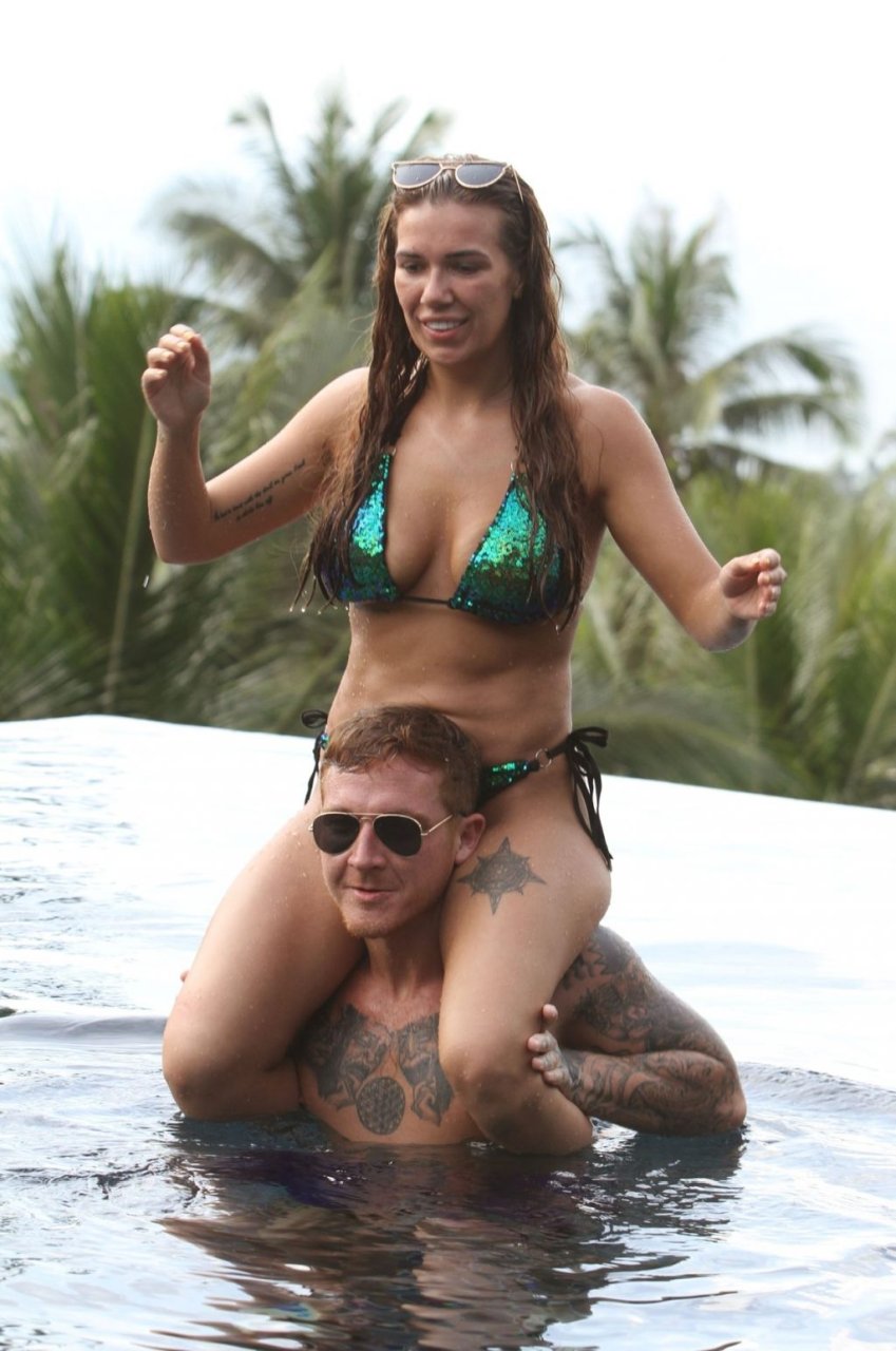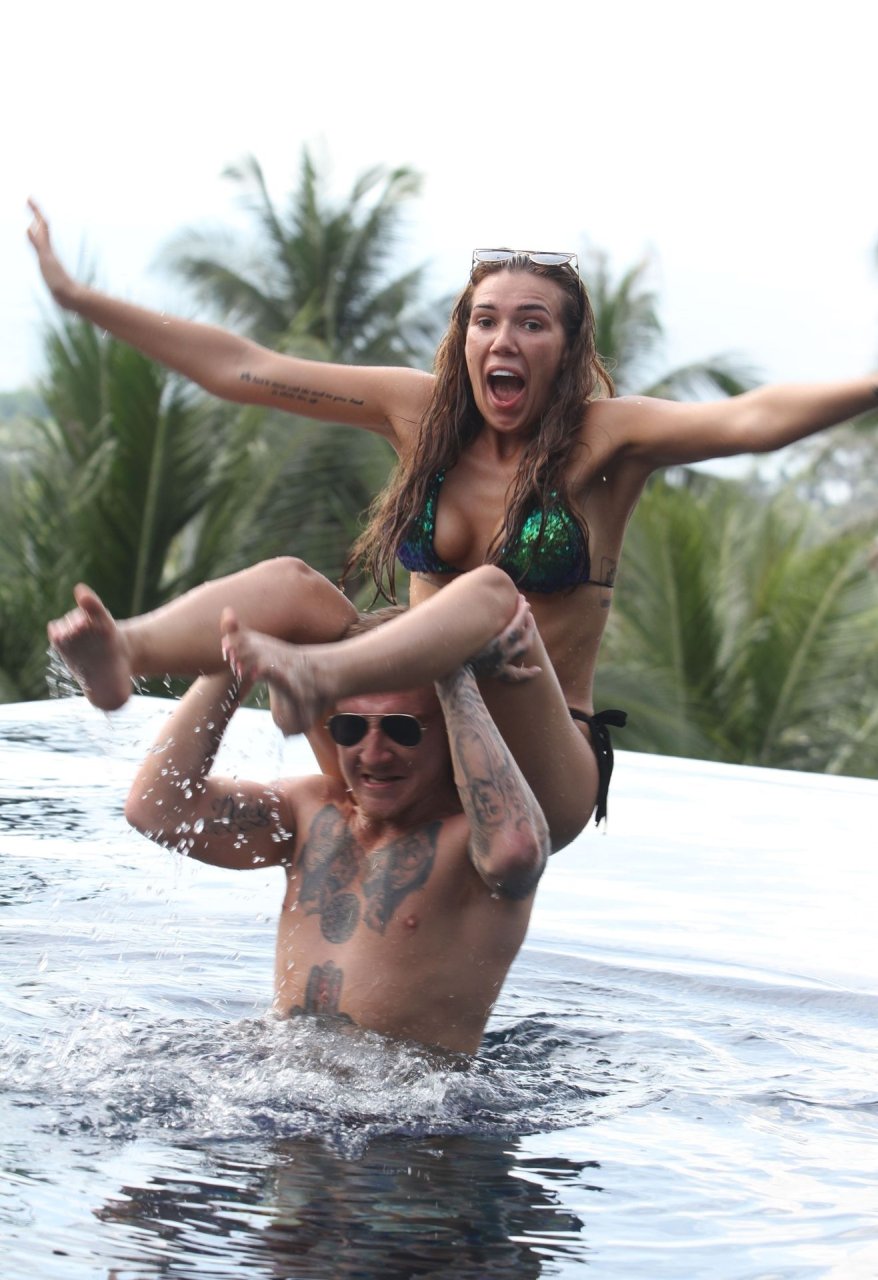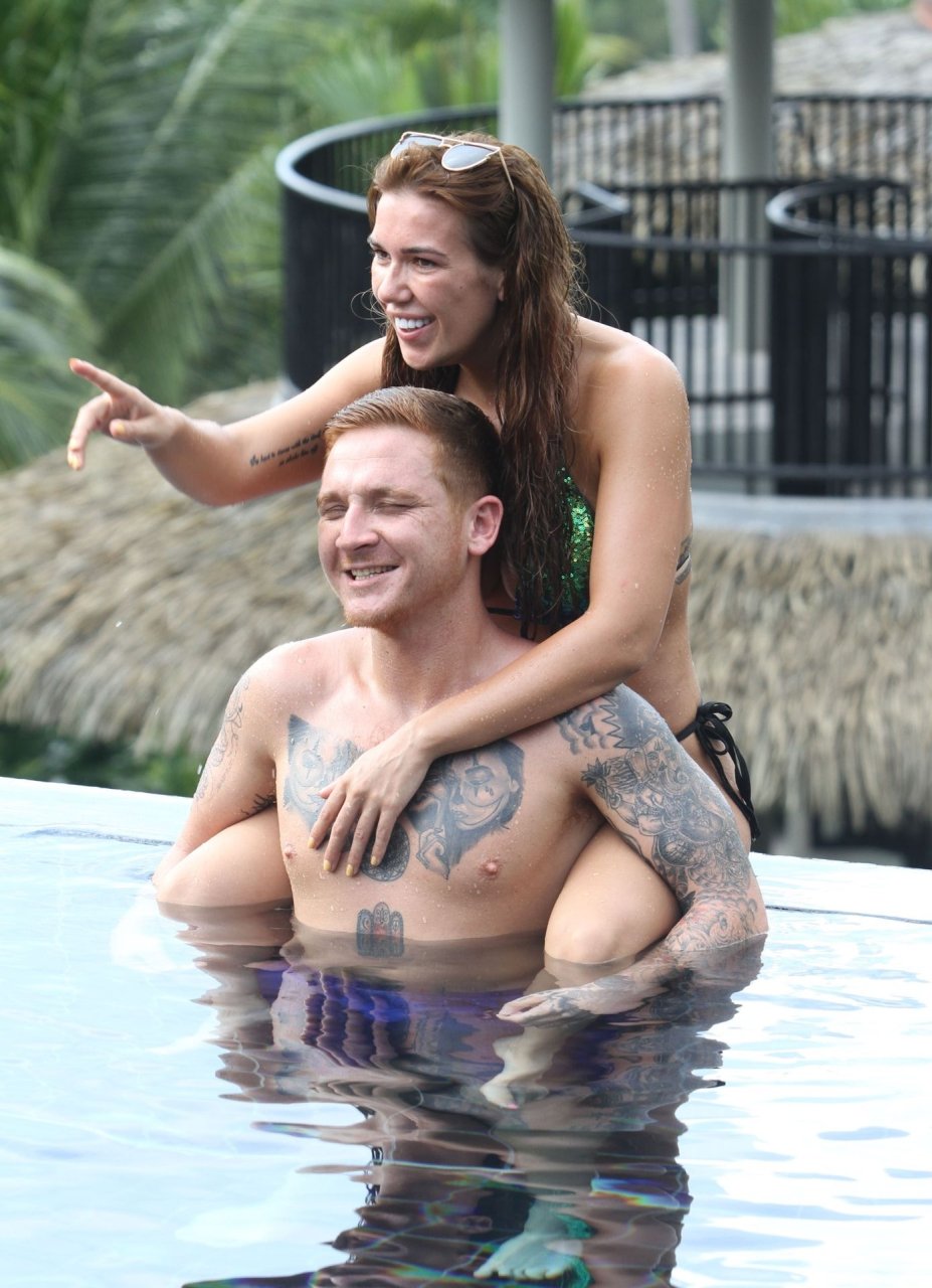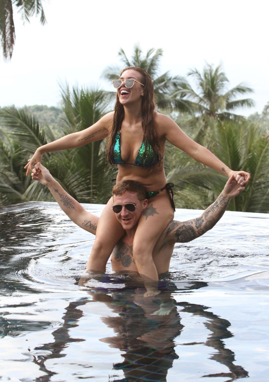 A estrela de “Ibiza Weekender” Imogen Townley exibe um display sexy de carinho com seu namorado fortemente tatuado, Lewis.