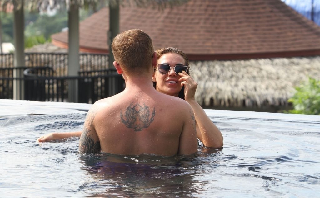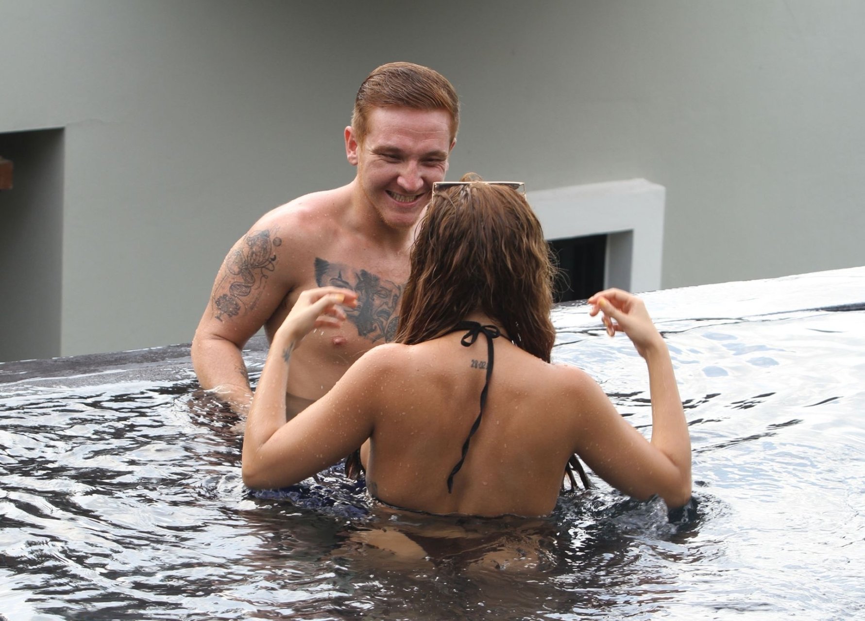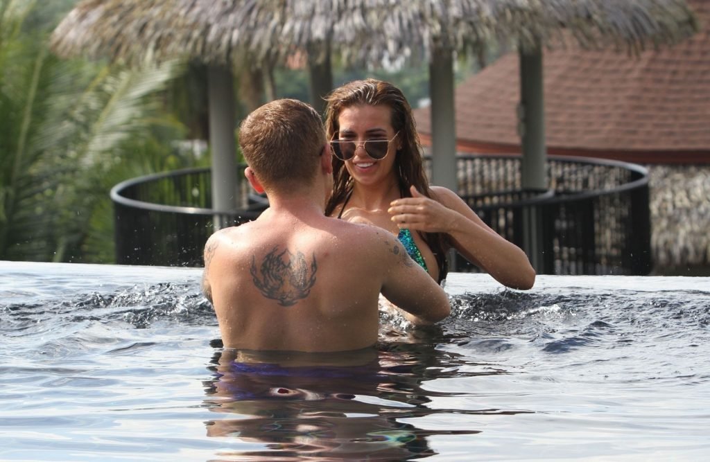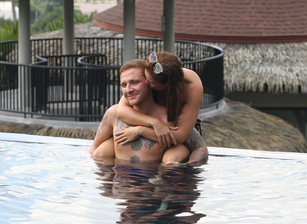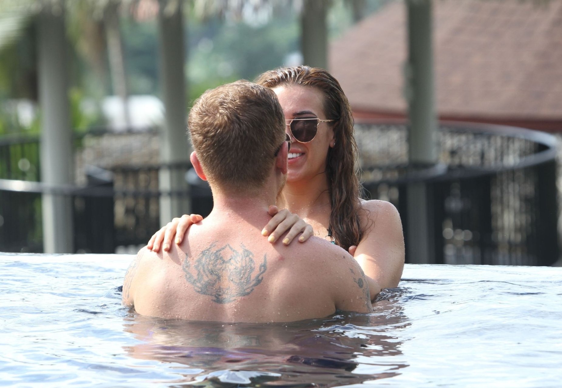 A estrela de “Ibiza Weekender” Imogen Townley exibe um display sexy de carinho com seu namorado fortemente tatuado, Lewis.