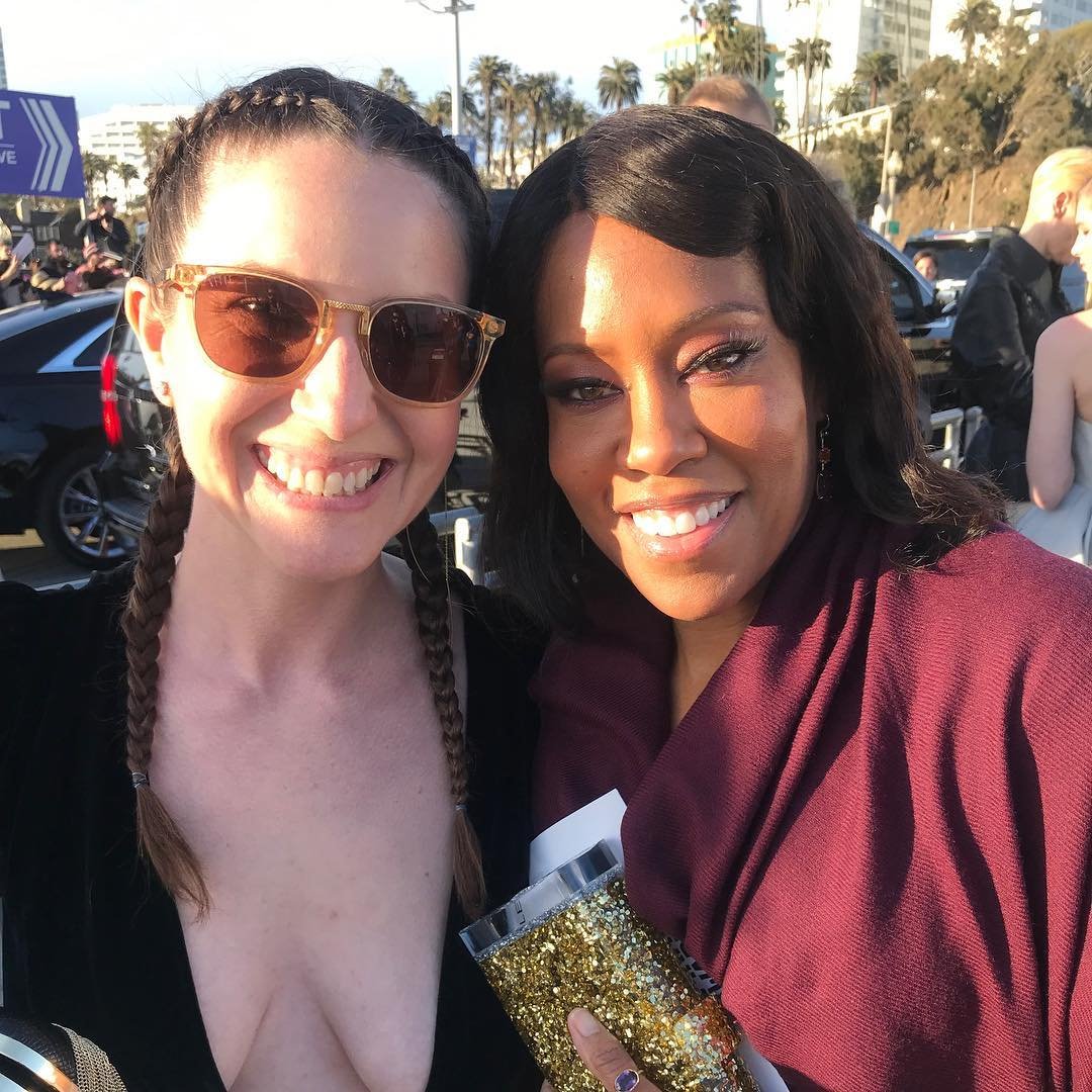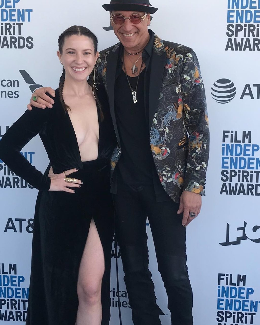 Atriz/roteirista/produtora Independence Hall tem um problema no figurino no “tapete azul” com Ice Mrozek no Film Independent Spirit Awards 2019 em Santa Monica, 23/02/2019.