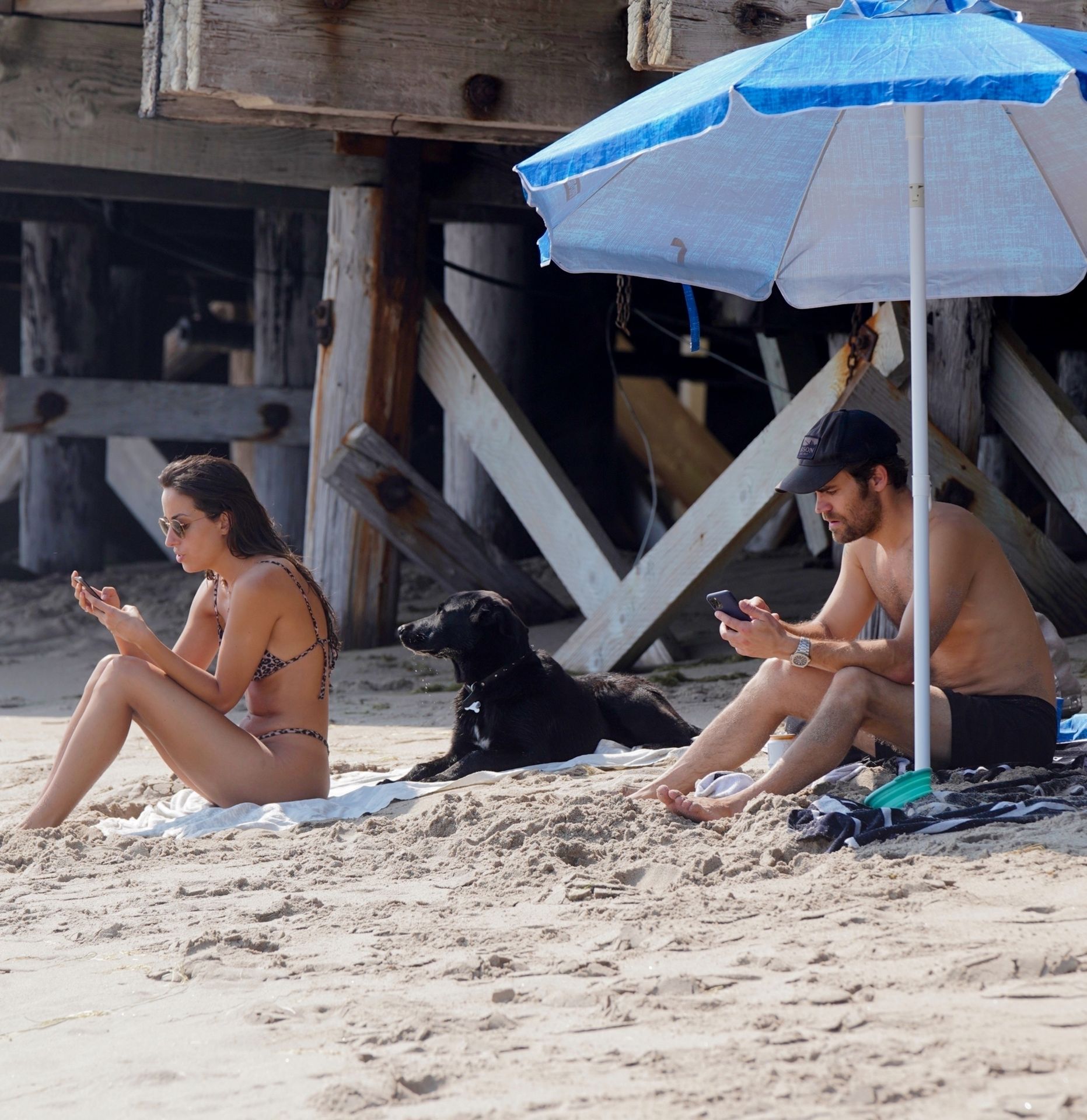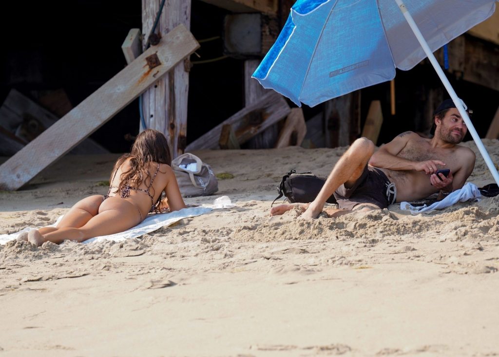 Paul Wesley e sua esposa Ines de Ramon exibem seus corpos de praia durante um divertido dia na praia de Malibu, 22/08/2020.