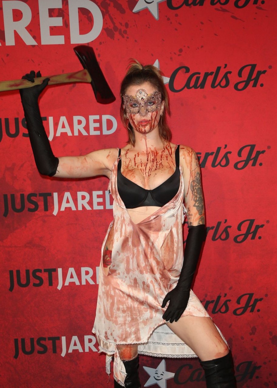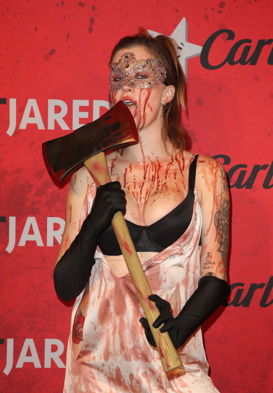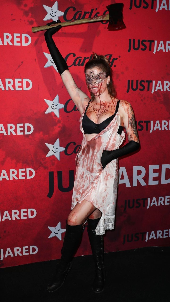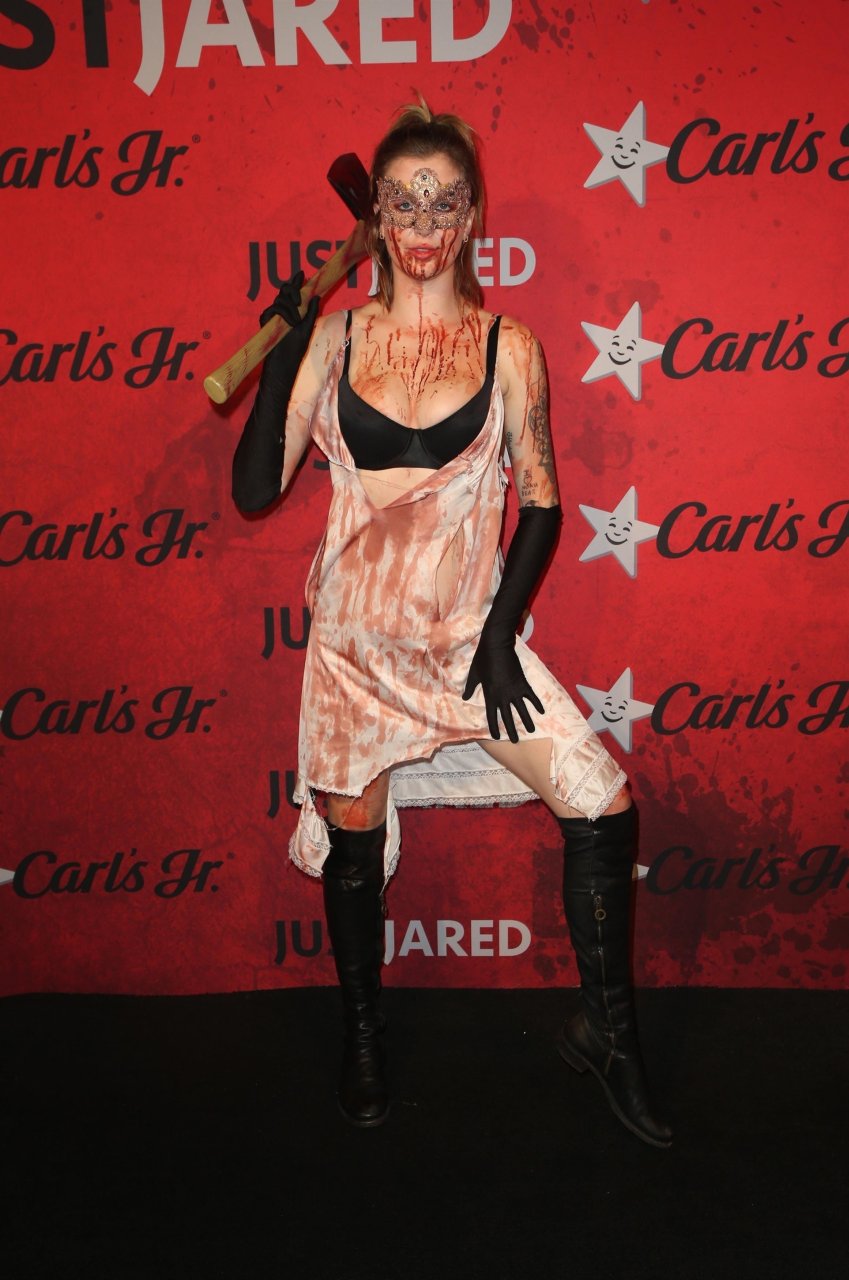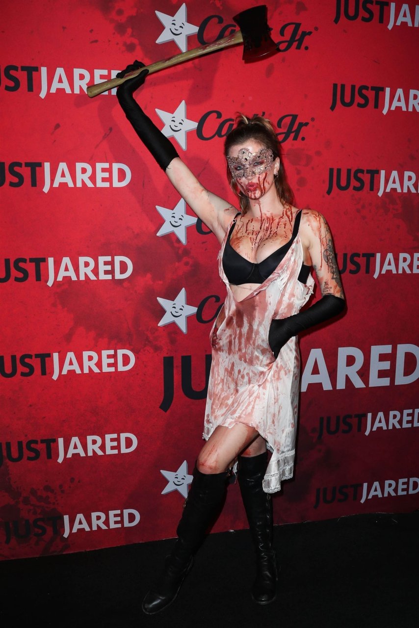Model Ireland Baldwin teve um problema de guarda-roupa (escorregou a calcinha) na 7ª Festa Anual de Halloween do Just Jared no Goya Studios em Los Angeles, 27/10/2018. É o buraco certo!
