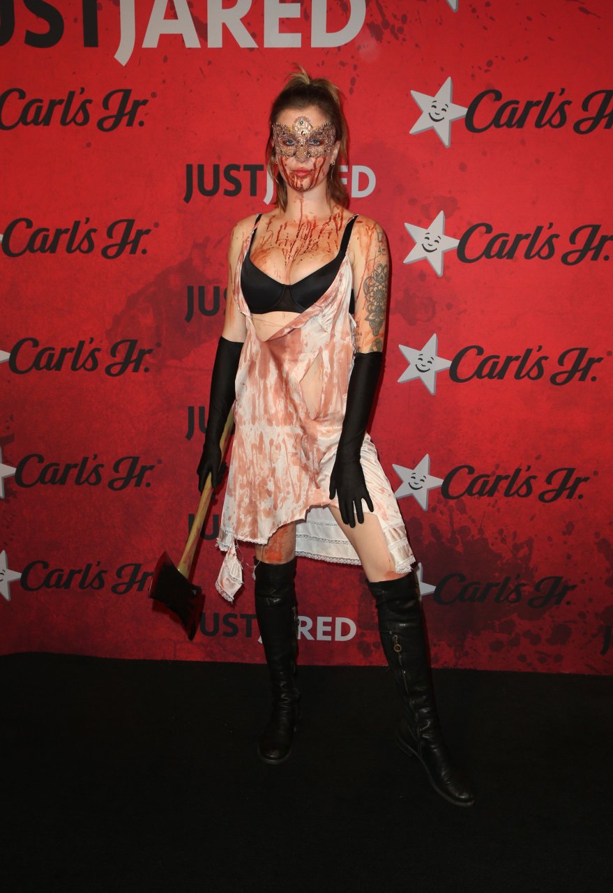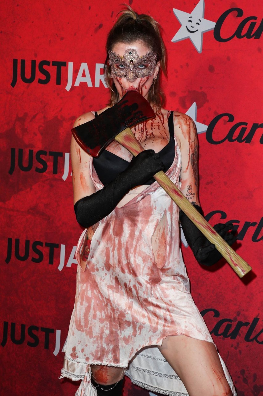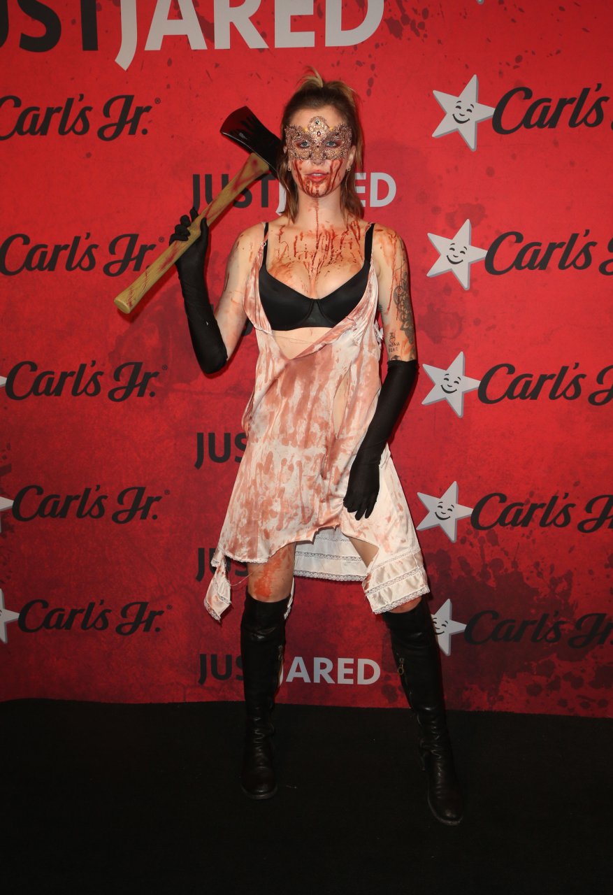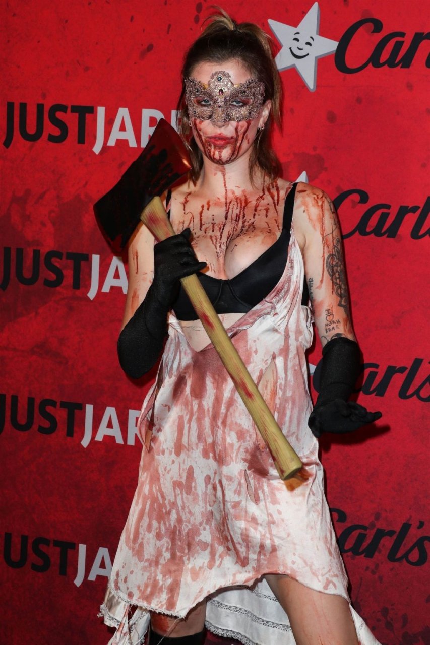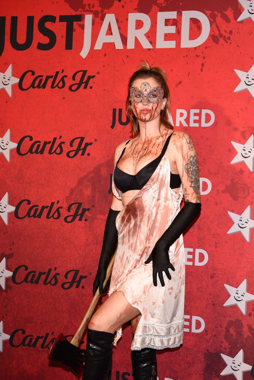 Model Ireland Baldwin teve um problema de guarda-roupa (escorregou a calcinha) na 7ª Festa Anual de Halloween do Just Jared no Goya Studios em Los Angeles, 27/10/2018. É o buraco certo!