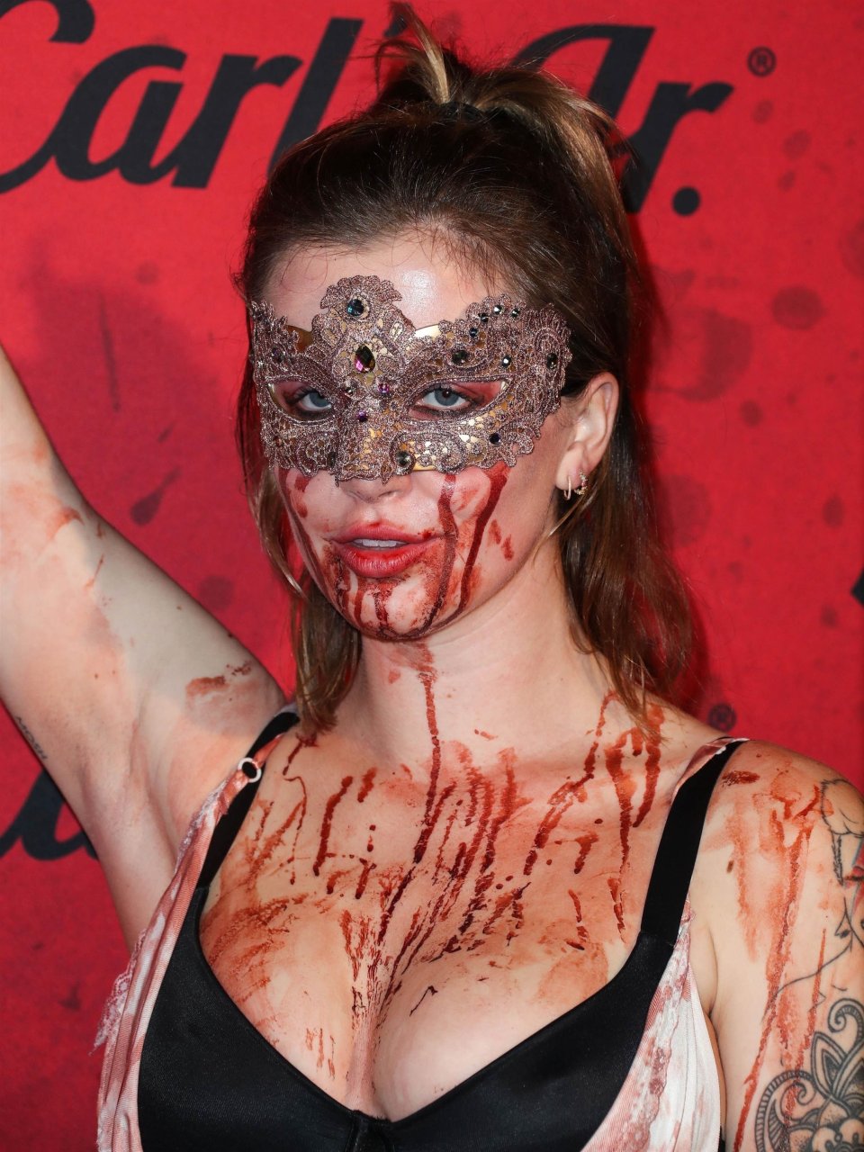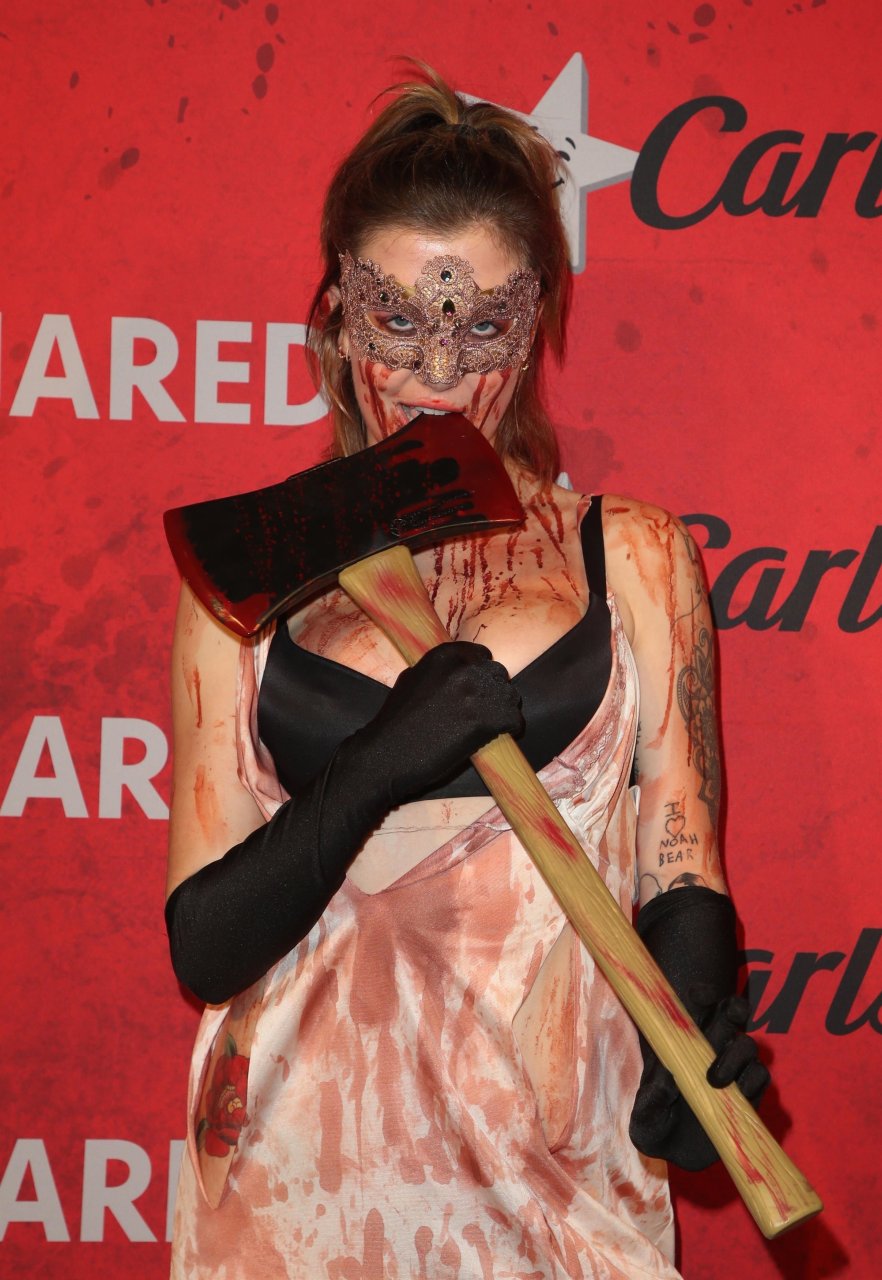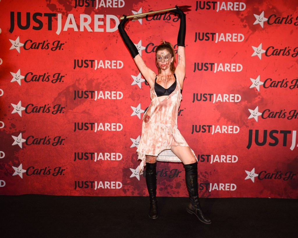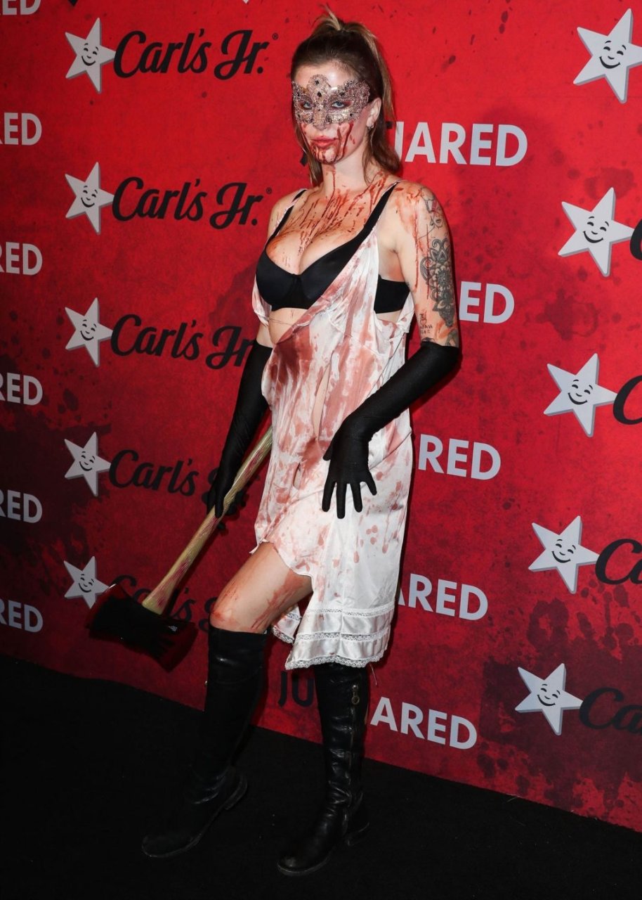 Model Ireland Baldwin teve um problema de guarda-roupa (escorregou a calcinha) na 7ª Festa Anual de Halloween do Just Jared no Goya Studios em Los Angeles, 27/10/2018. É o buraco certo!
