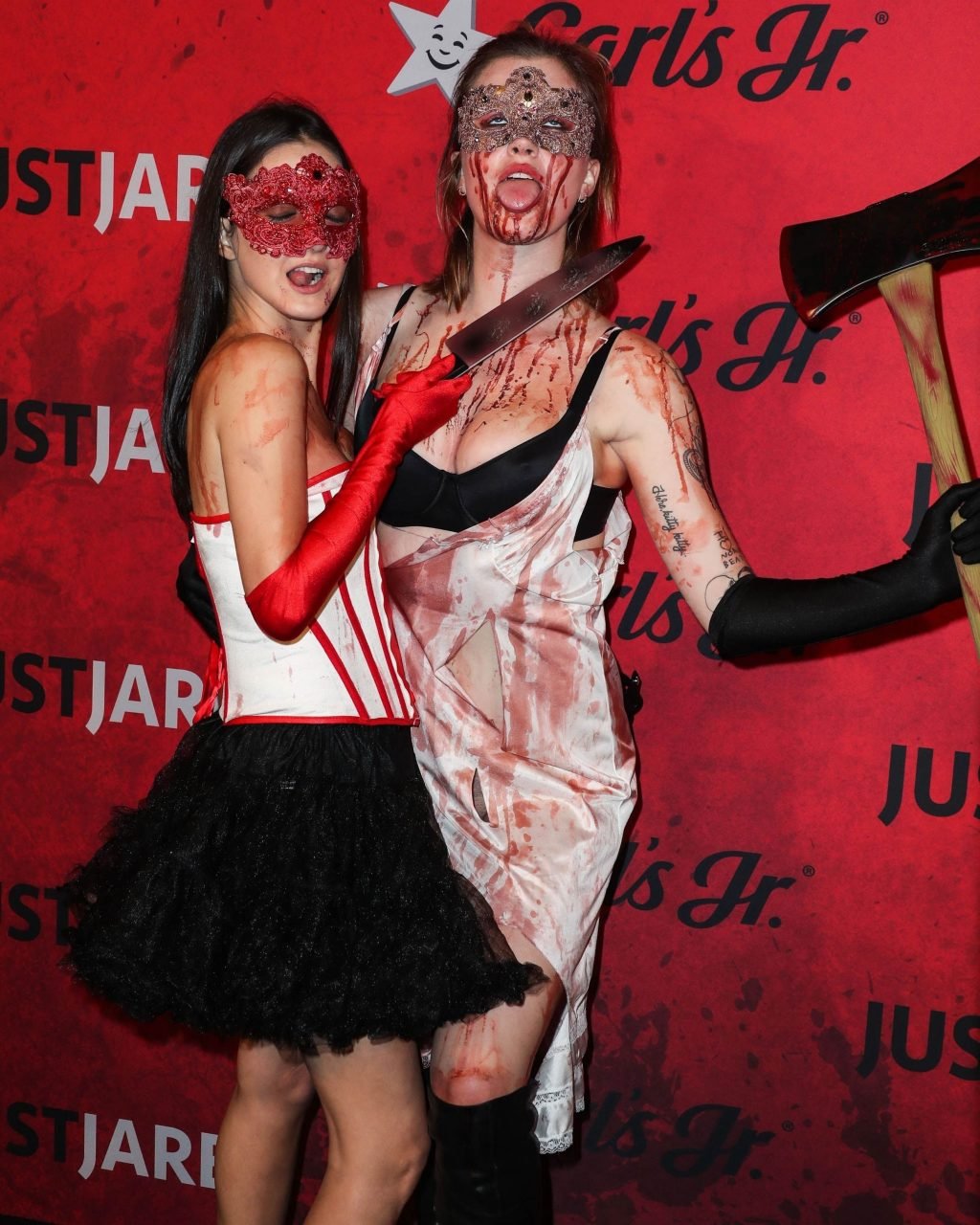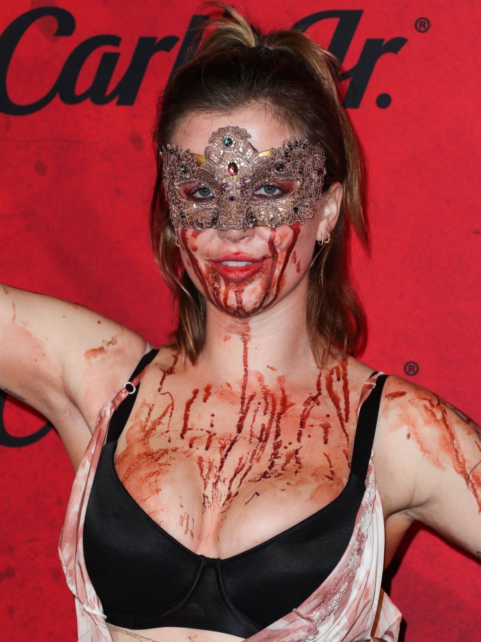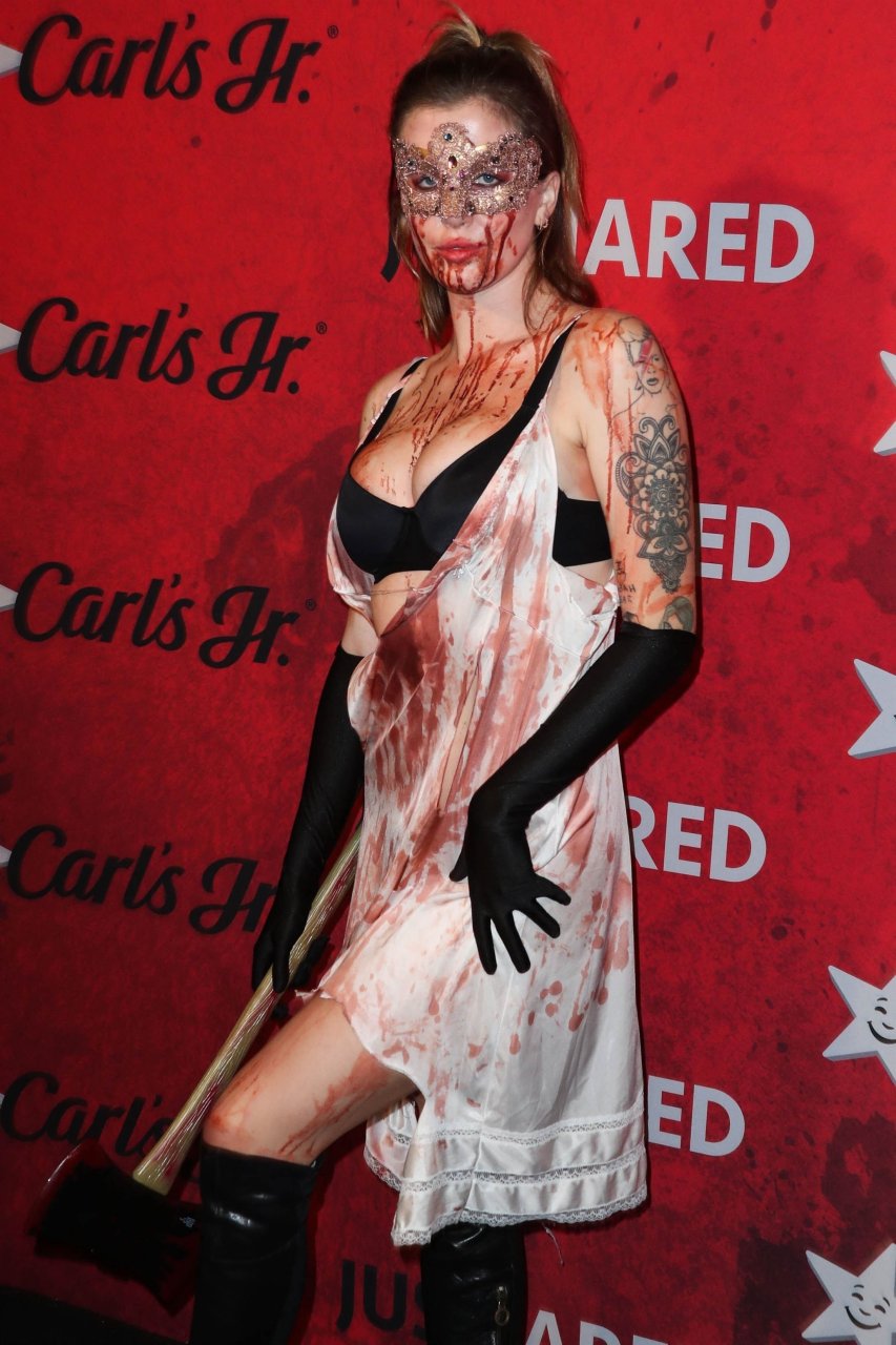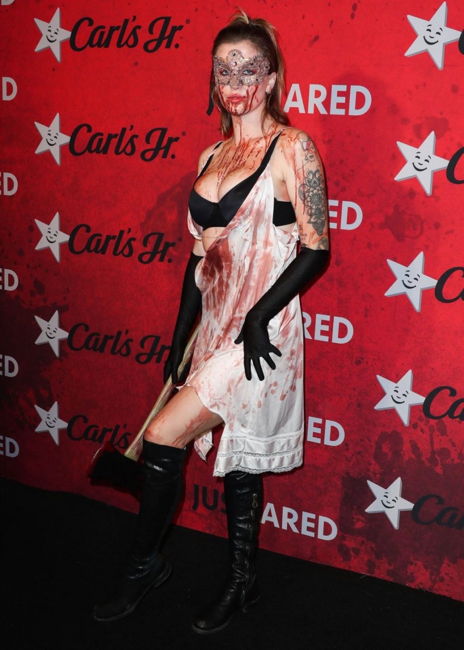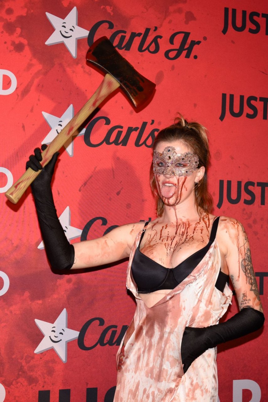 Model Ireland Baldwin teve um problema de guarda-roupa (escorregou a calcinha) na 7ª Festa Anual de Halloween do Just Jared no Goya Studios em Los Angeles, 27/10/2018. É o buraco certo!