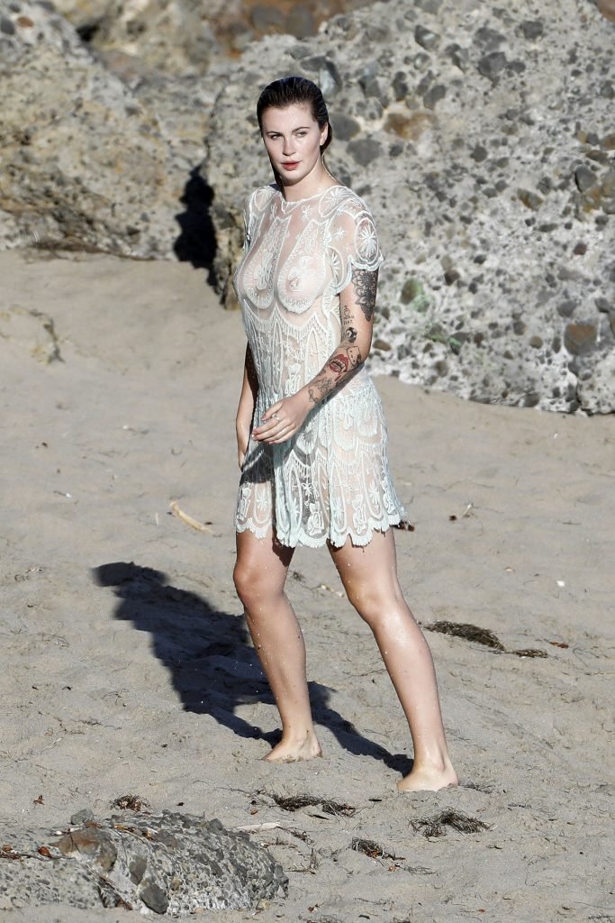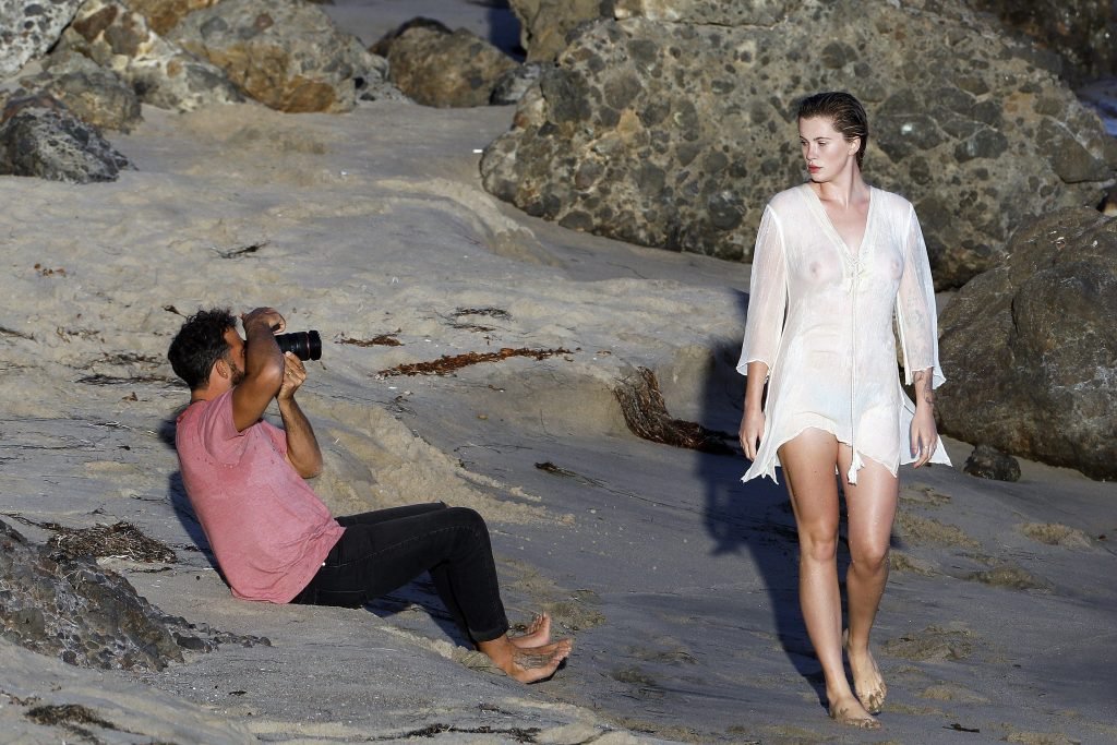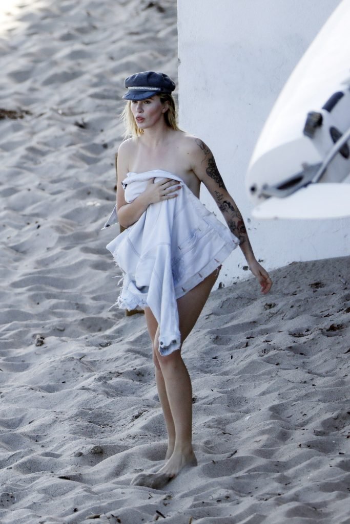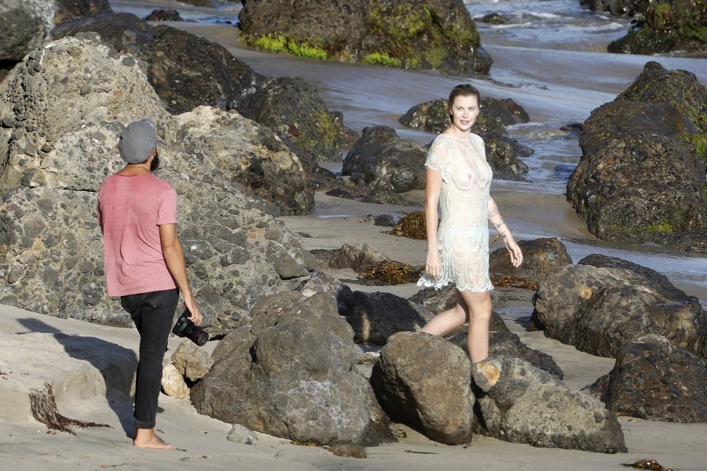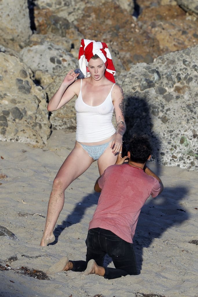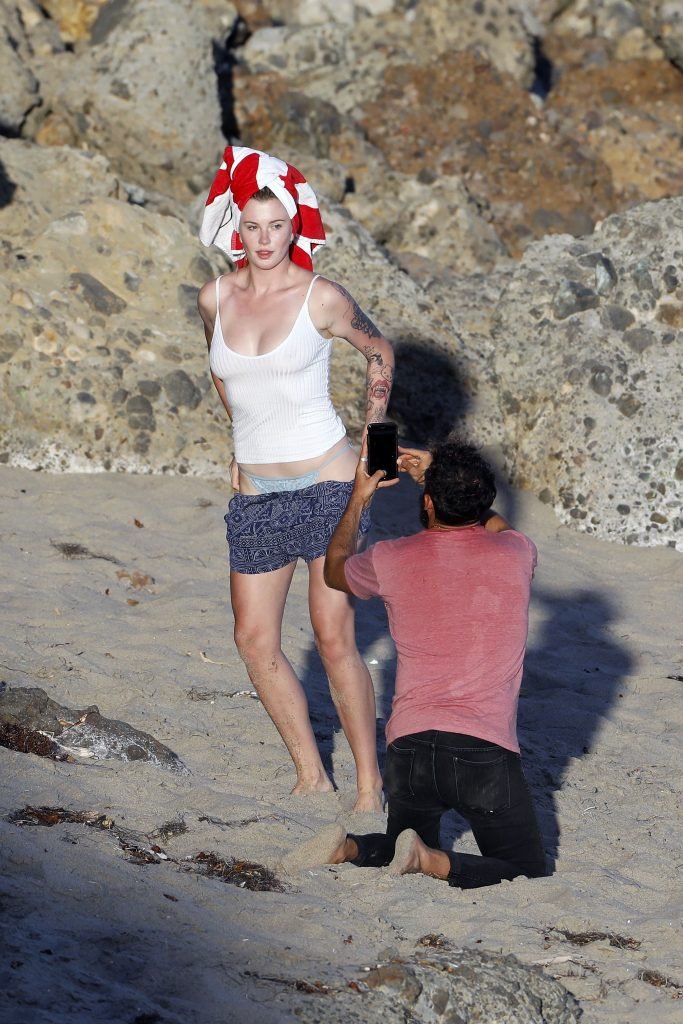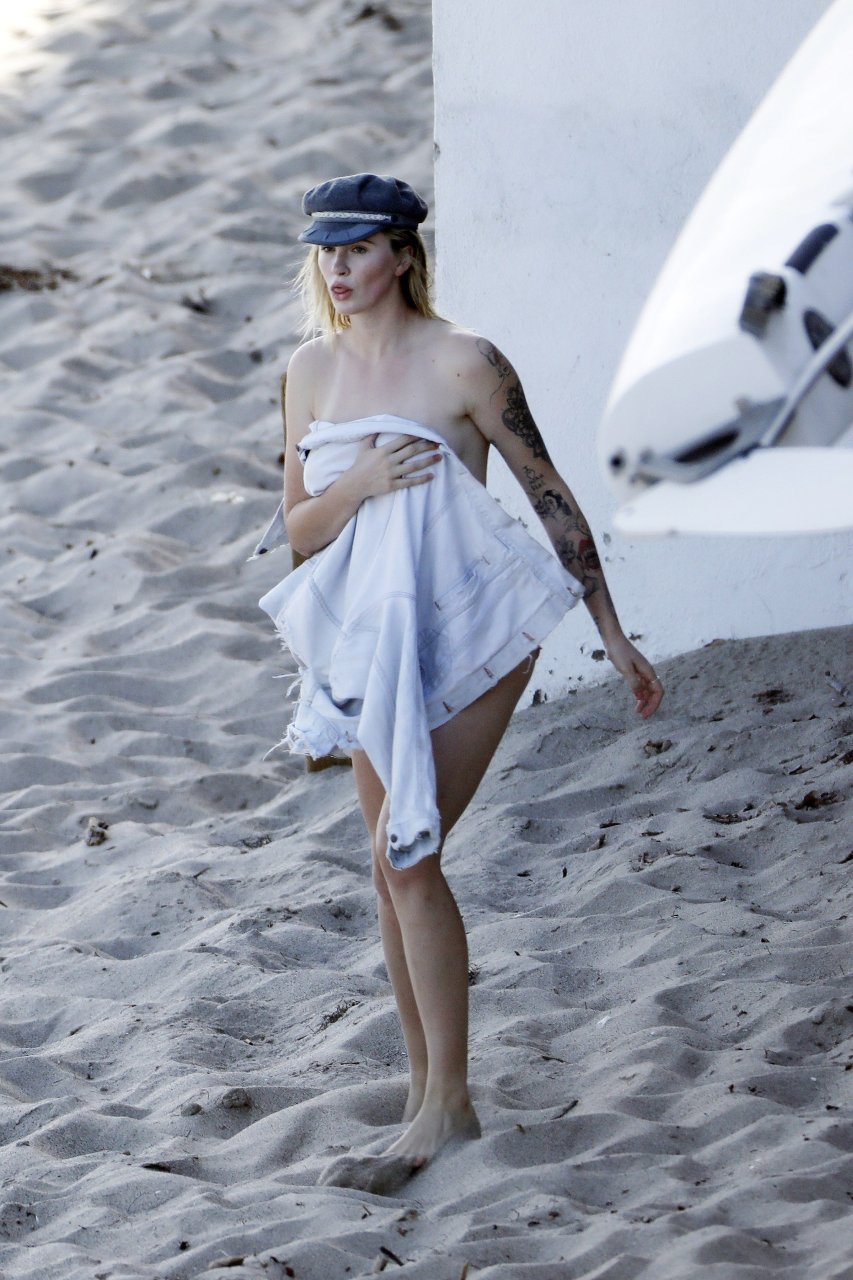 Ireland Baldwin posa para uma sessão de fotos na praia em Malibu, 05/10/2017. Ireland Baldwin-Basinger é uma modelo de moda americana, atriz (Campus Caller). Idade – 21 anos (nascida em 23 de outubro de 1995).