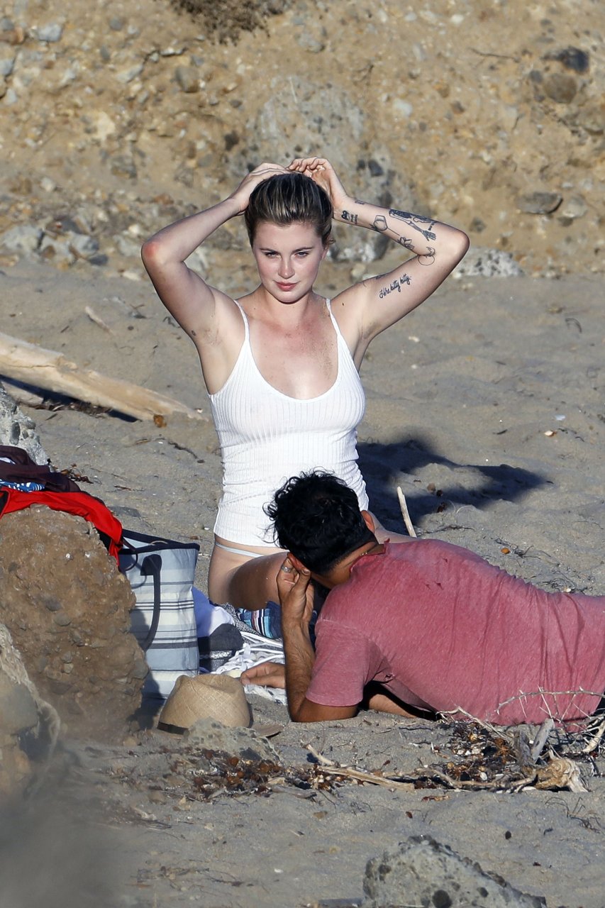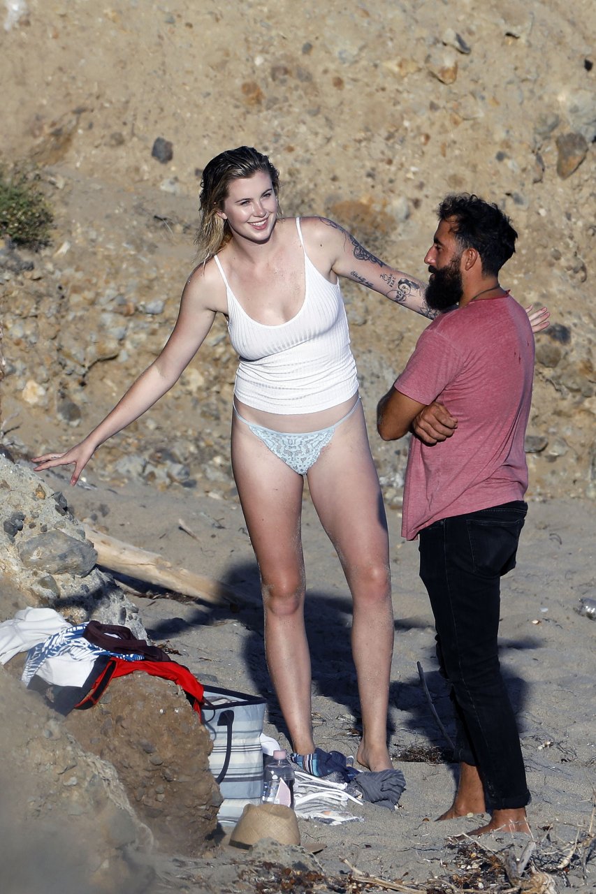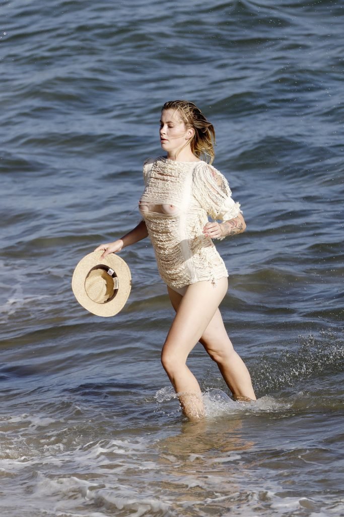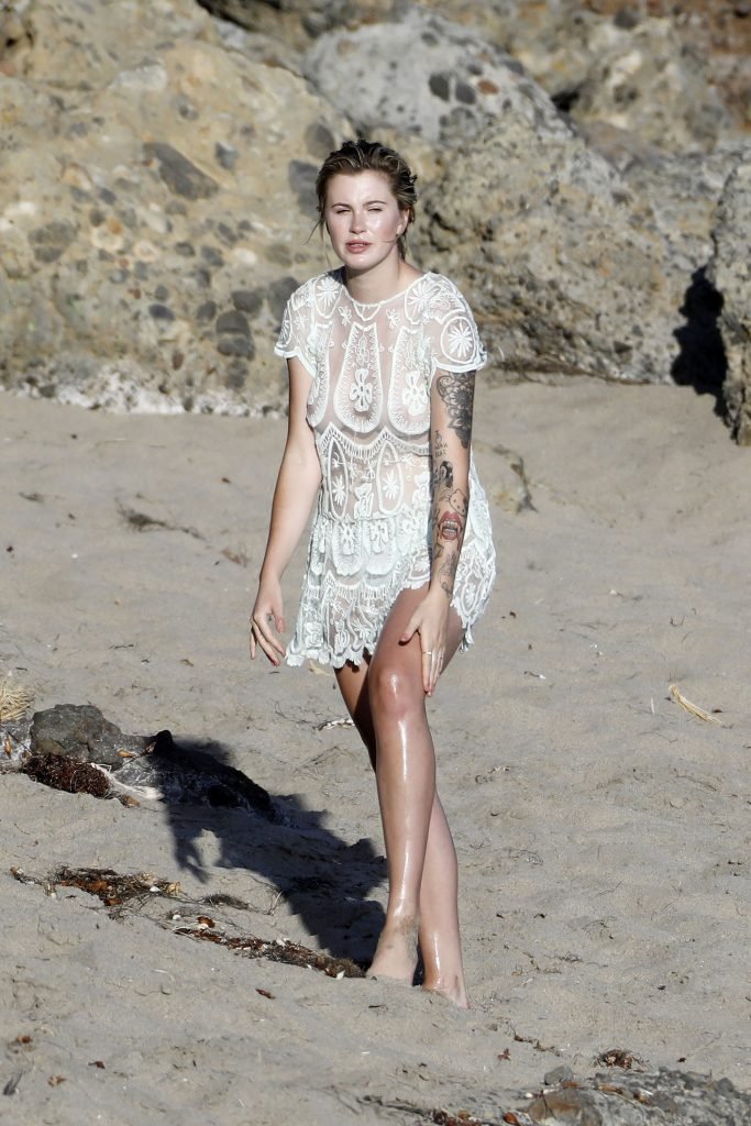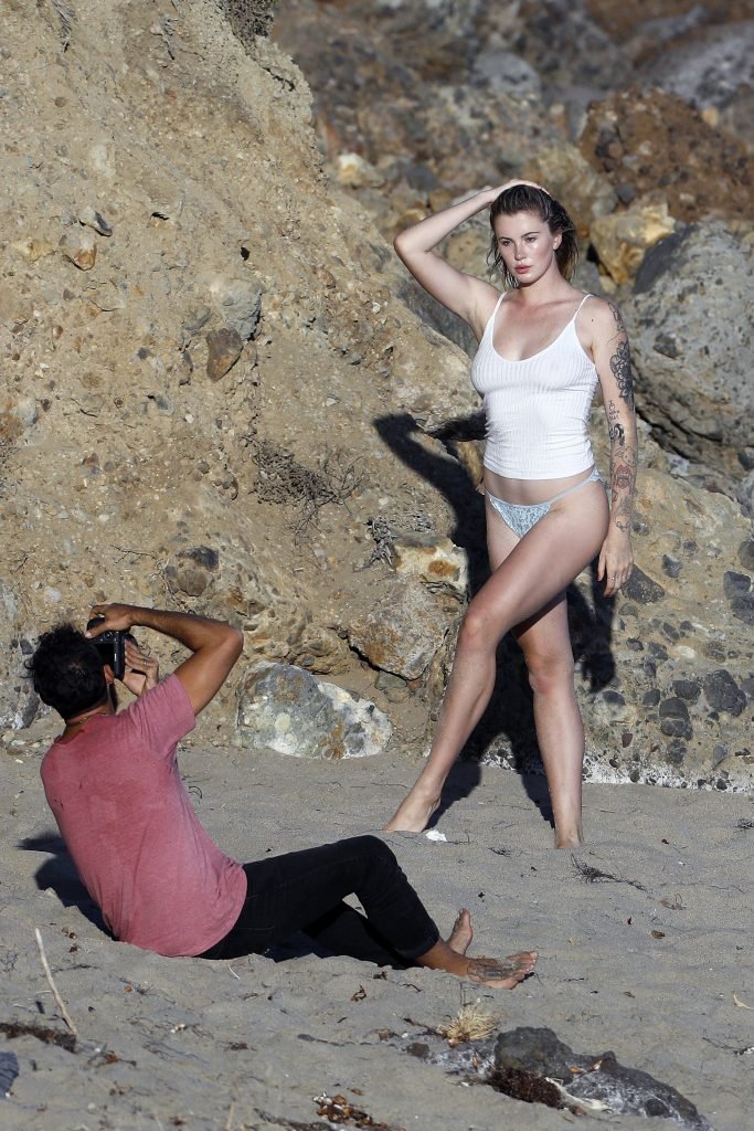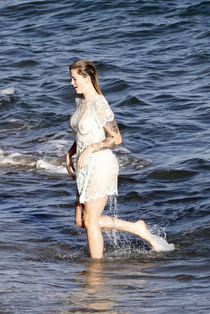 Ireland Baldwin posa para uma sessão de fotos na praia em Malibu, 05/10/2017. Ireland Baldwin-Basinger é uma modelo de moda americana, atriz (Campus Caller). Idade – 21 anos (nascida em 23 de outubro de 1995).
