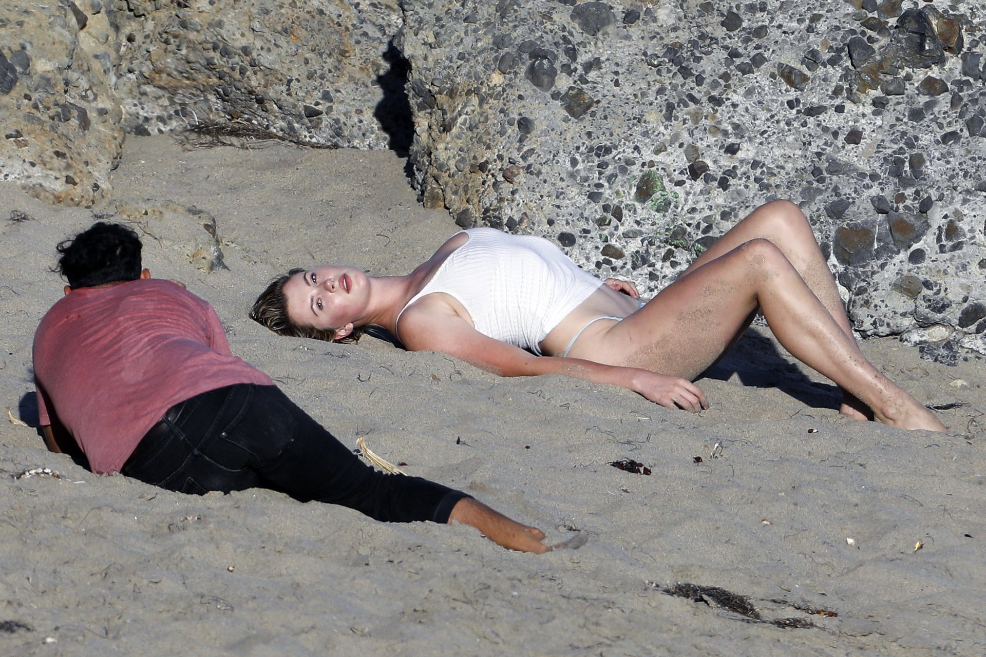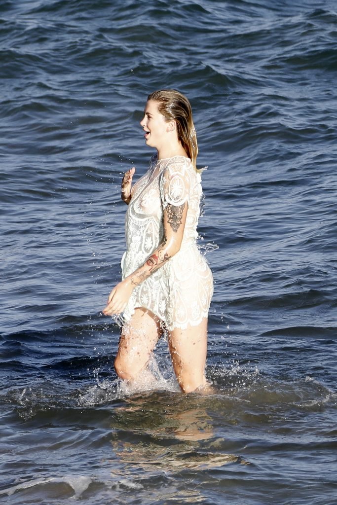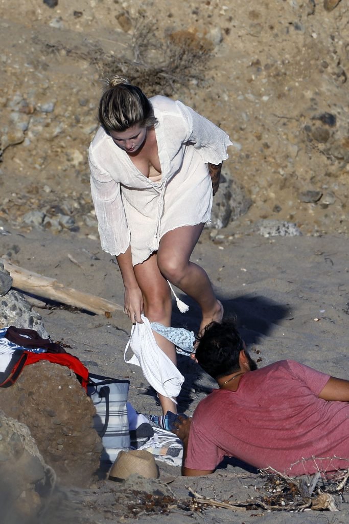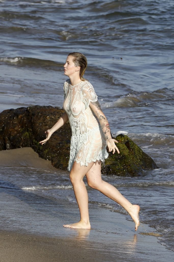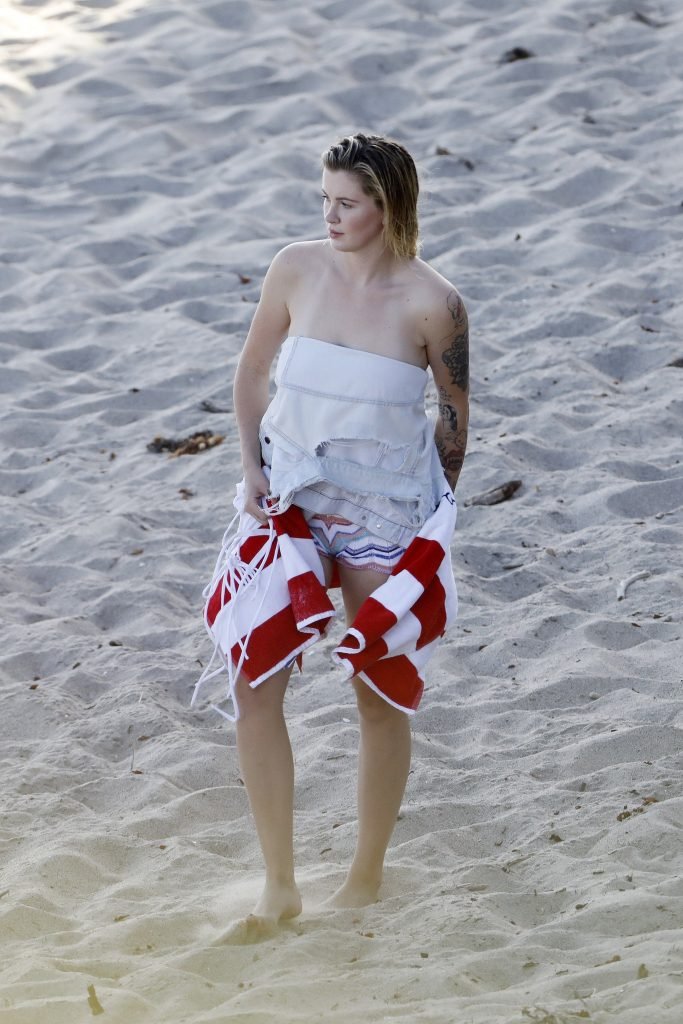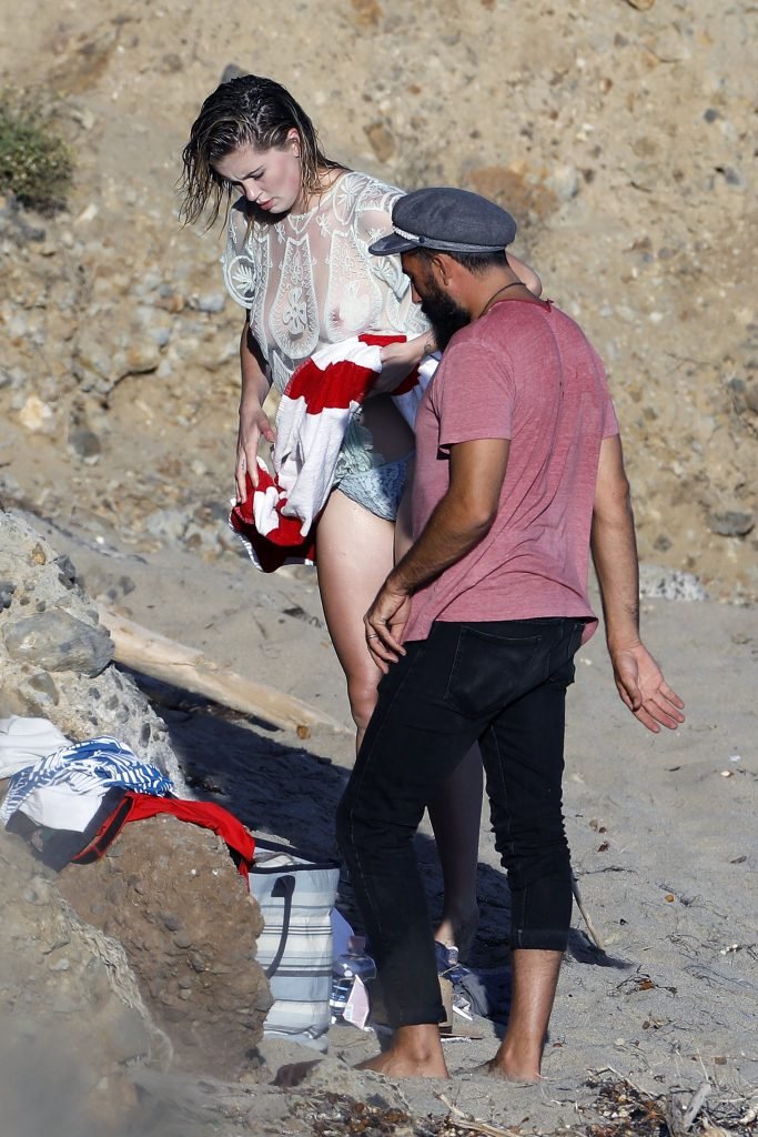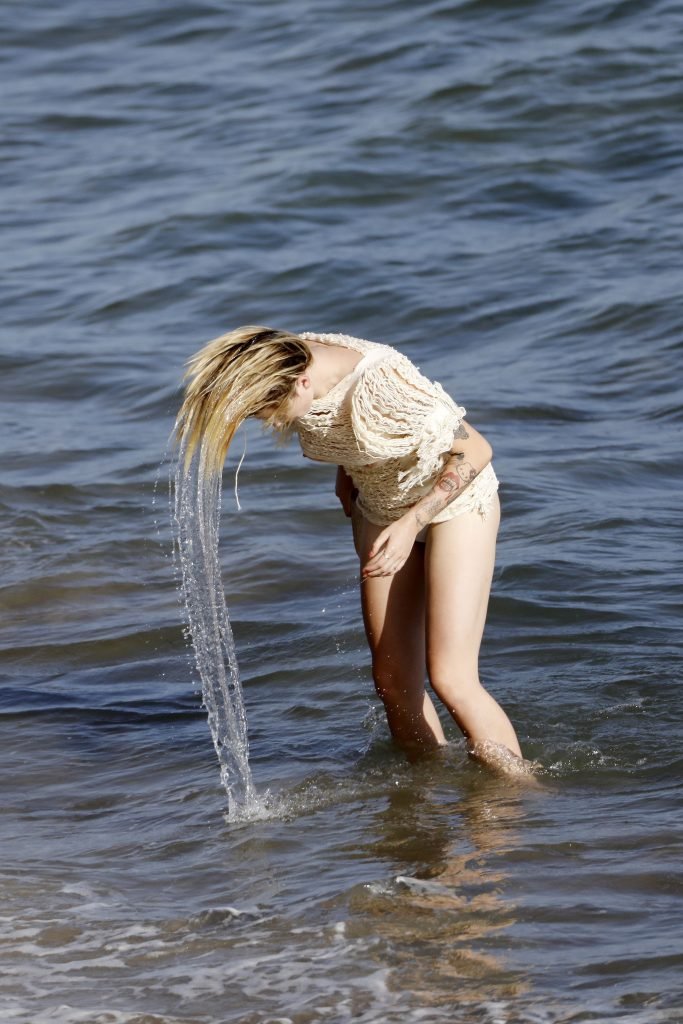 Ireland Baldwin posa para uma sessão de fotos na praia em Malibu, 05/10/2017. Ireland Baldwin-Basinger é uma modelo de moda americana, atriz (Campus Caller). Idade – 21 anos (nascida em 23 de outubro de 1995).