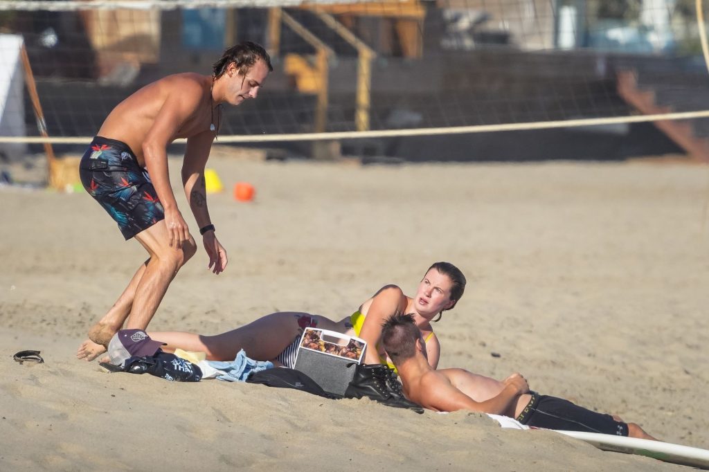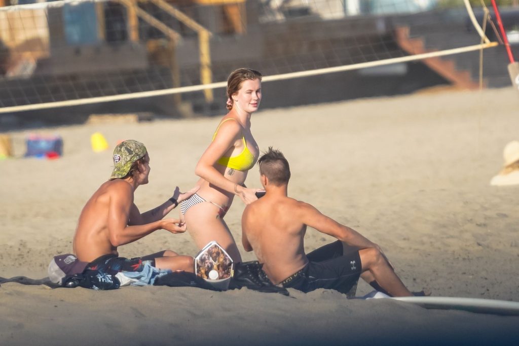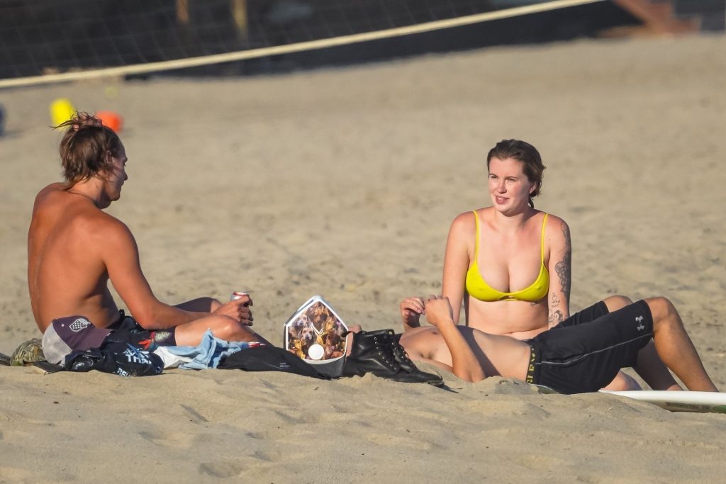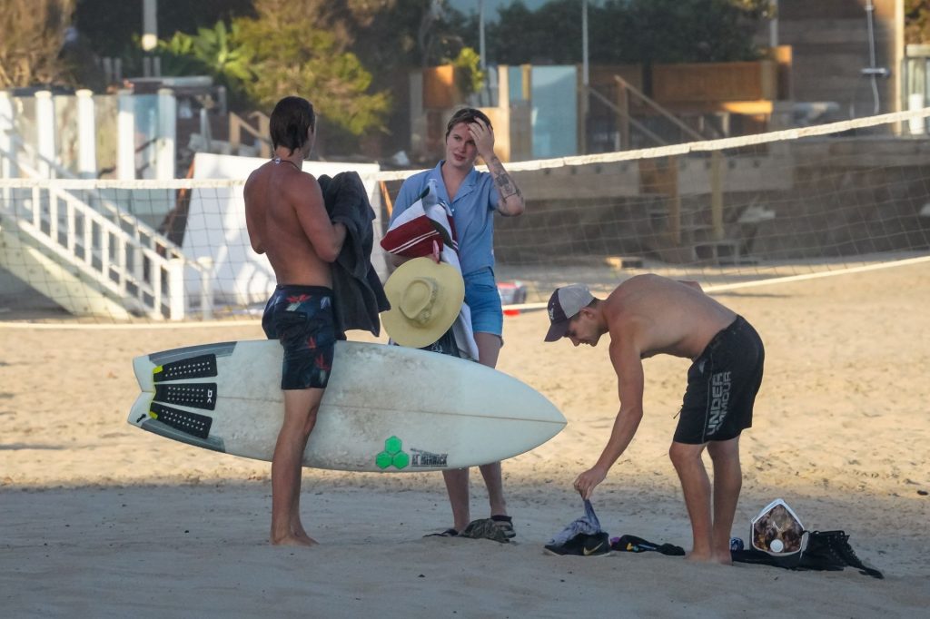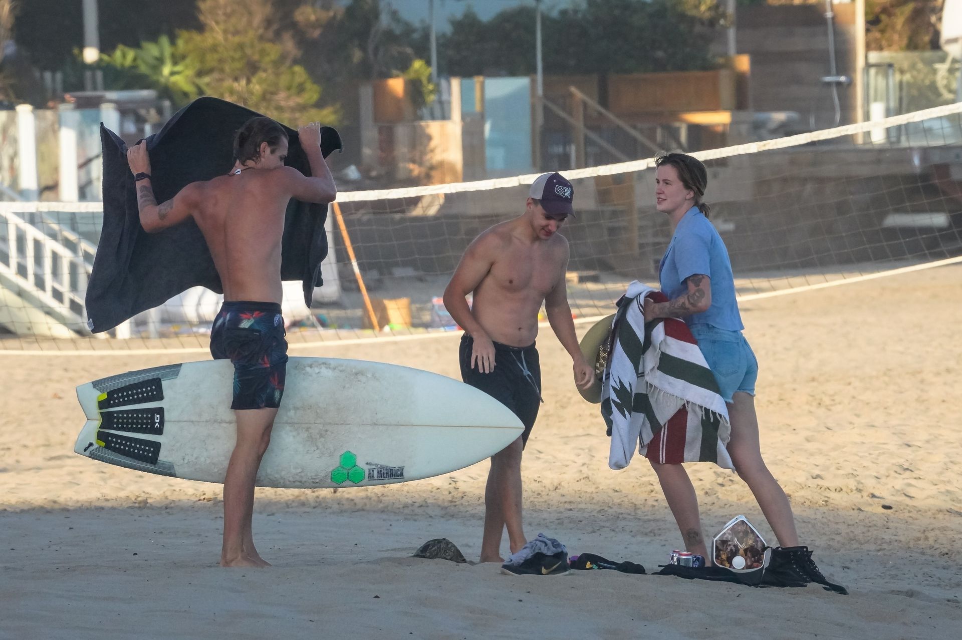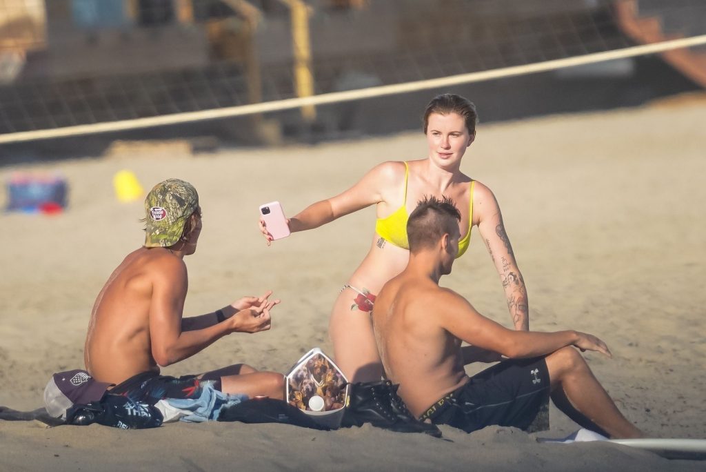 Socialite e filha de Alec Baldwin, Ireland Baldwin é vista aproveitando mais um dia despreocupado na praia com seu namorado Corey Harper e amigos em Malibu, 13/07/2020.
