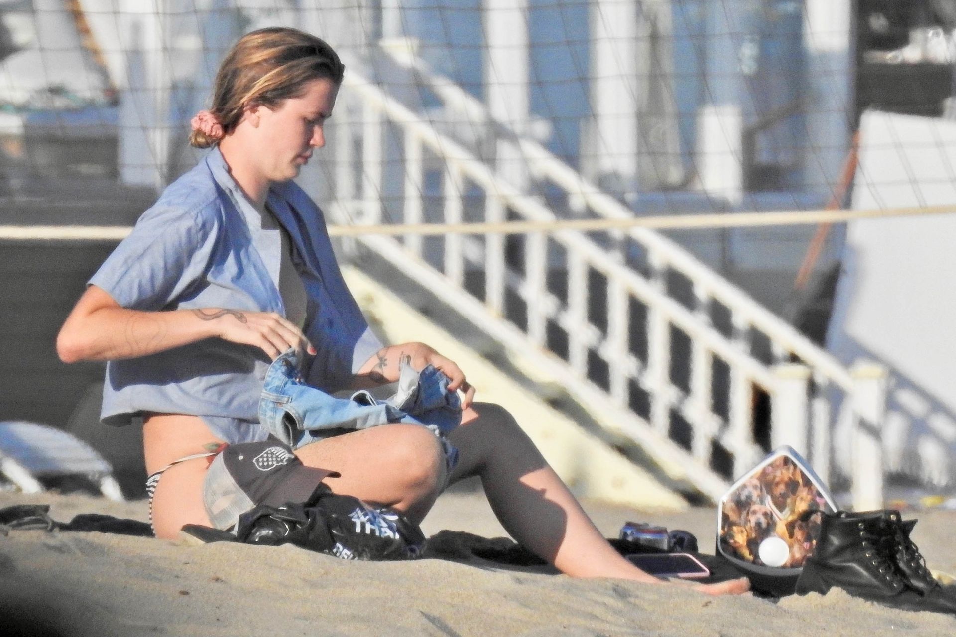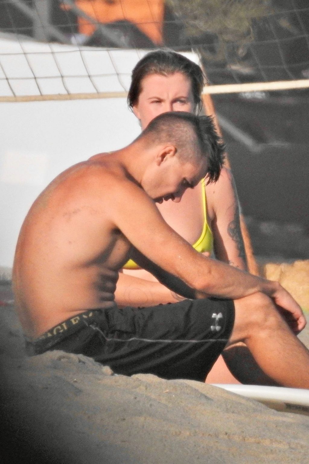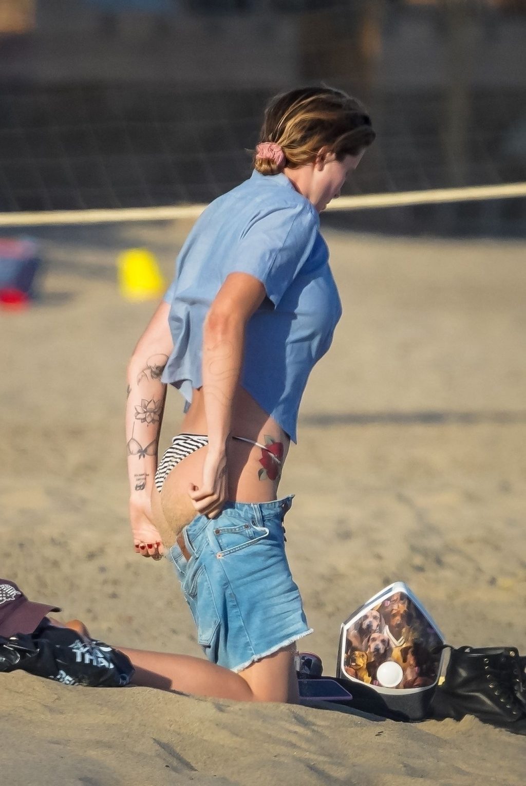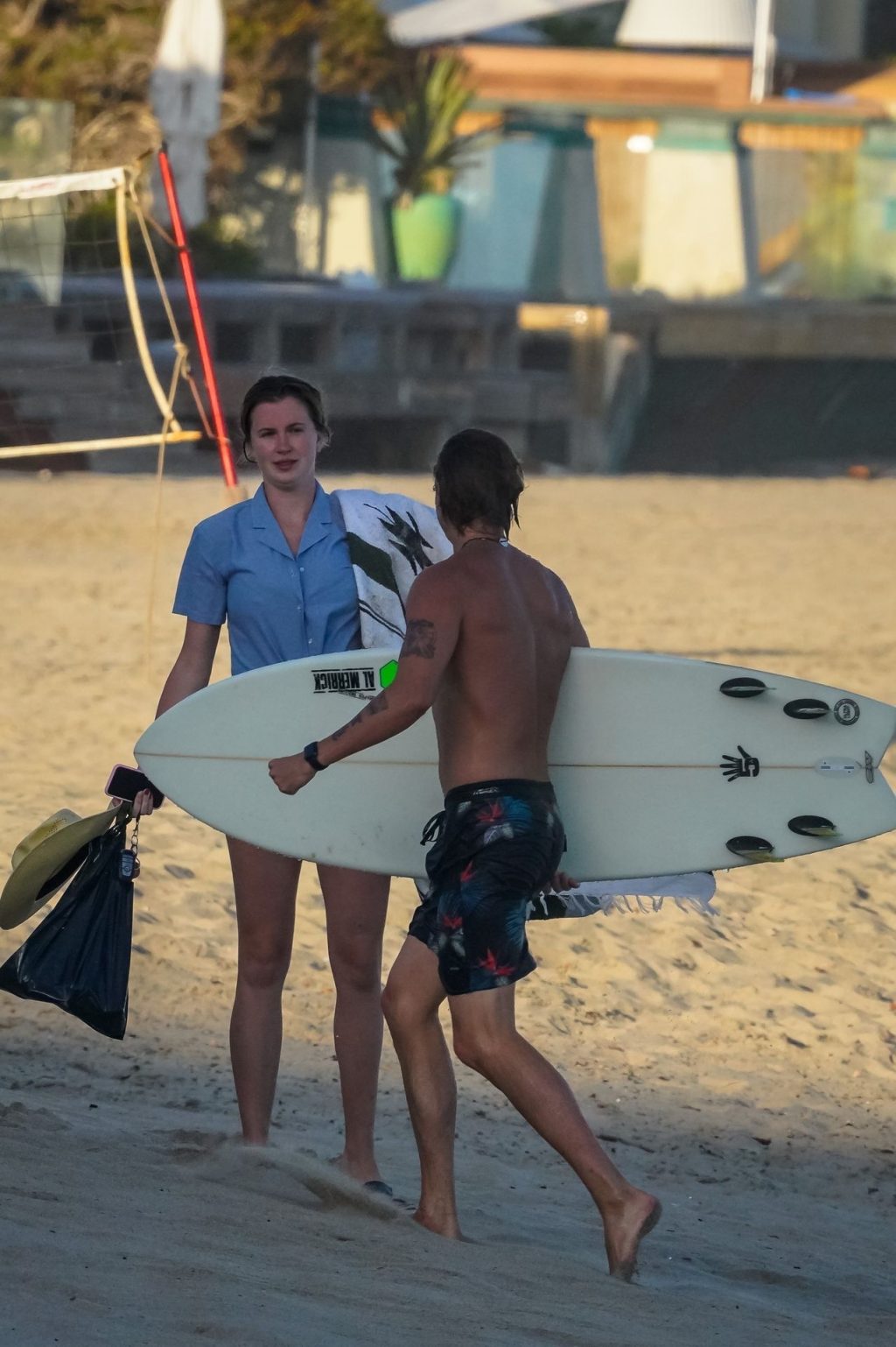 Socialite e filha de Alec Baldwin, Ireland Baldwin é vista aproveitando mais um dia despreocupado na praia com seu namorado Corey Harper e amigos em Malibu, 13/07/2020.