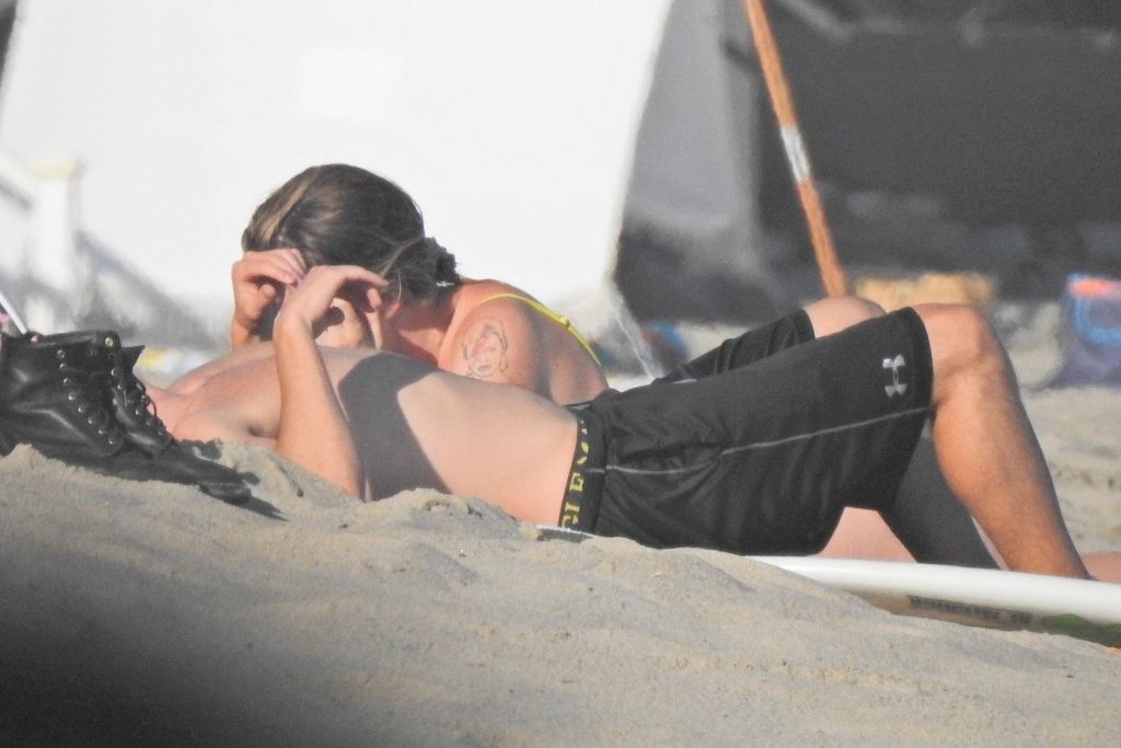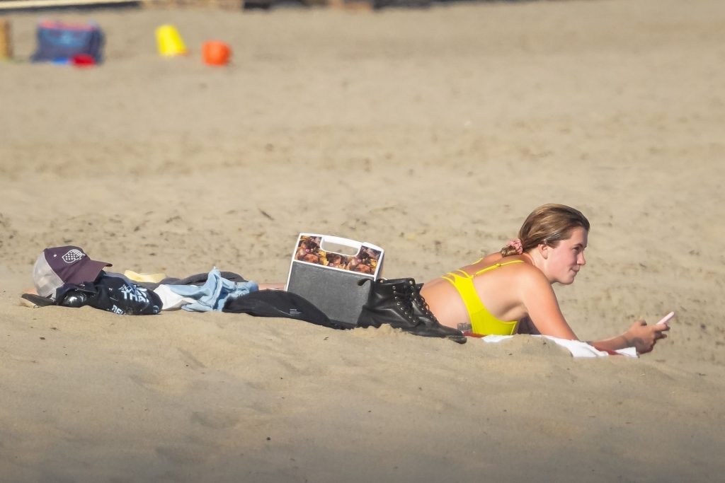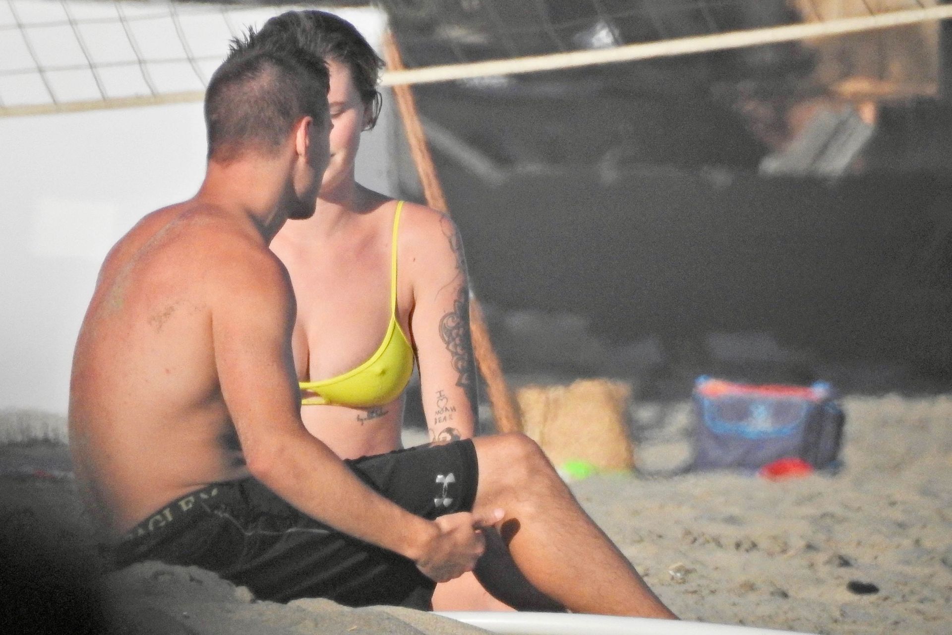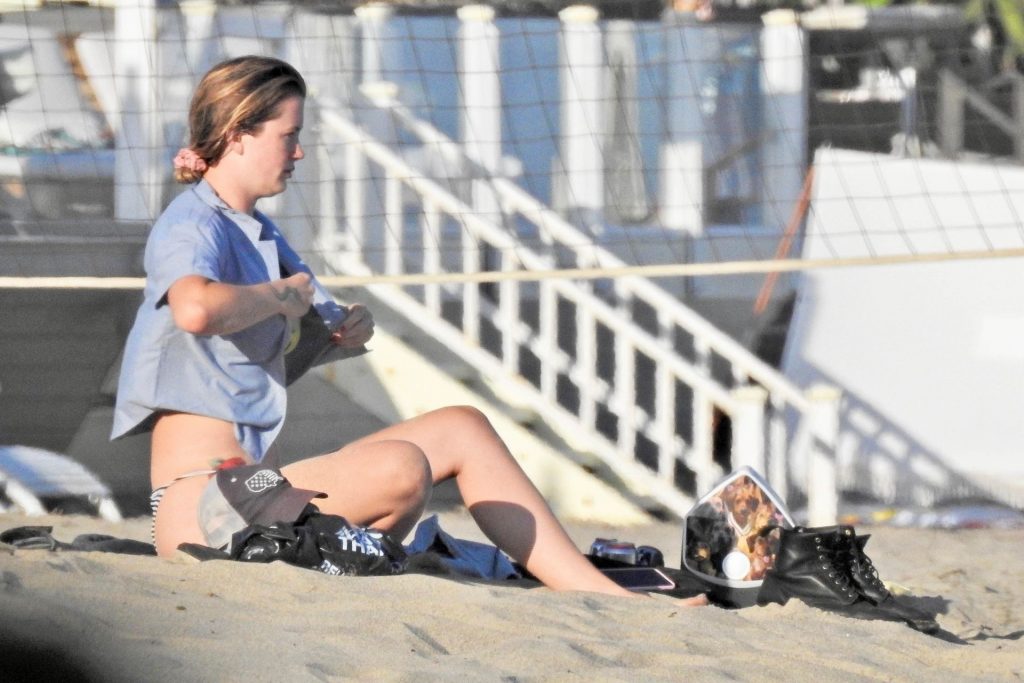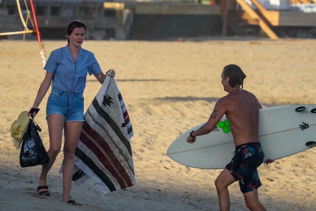Socialite e filha de Alec Baldwin, Ireland Baldwin é vista aproveitando mais um dia despreocupado na praia com seu namorado Corey Harper e amigos em Malibu, 13/07/2020.