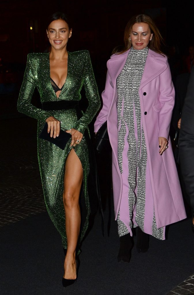 Irina Shayk usa um vestido verde elegante no Intimissimi On Ice na Arena em Verona, Itália, 06/10/2017. Irina Shaykhlislamova (Shayk) é uma top model russa, atriz. Idade – 31 (6 de janeiro de 1986).
