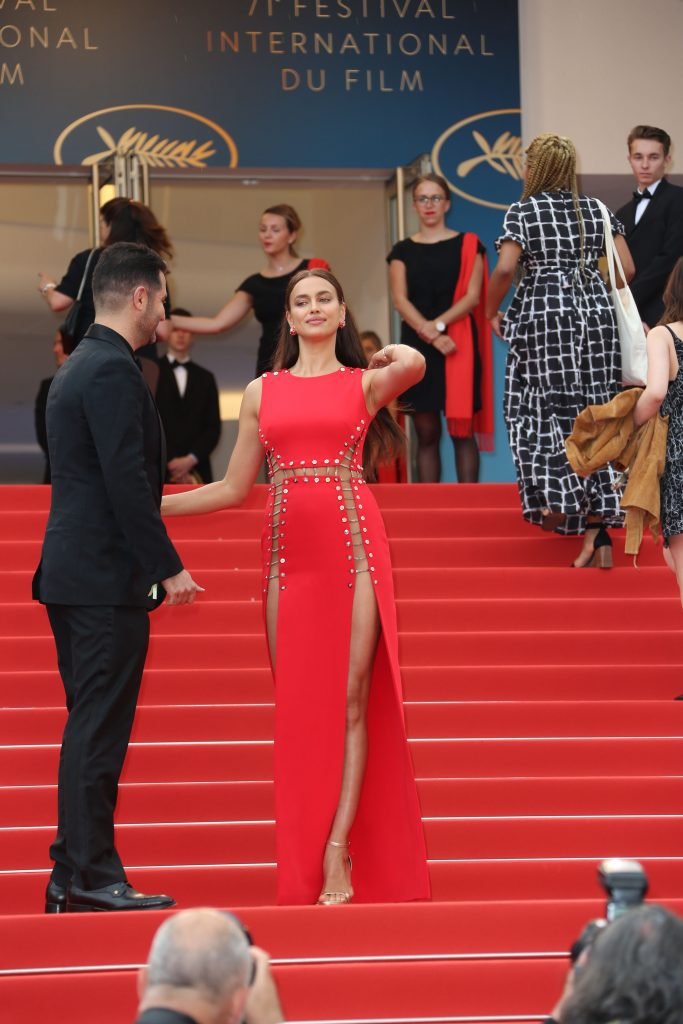 Irina Shayk sem calcinha comparece à estreia do filme ‘Sorry Angel’ em um vestido Versace vermelho espontâneo no 71º Festival de Cinema de Cannes na França, 10/05/2018. Irina Shayk é uma modelo e atriz nascida na Rússia, Idade: 32.