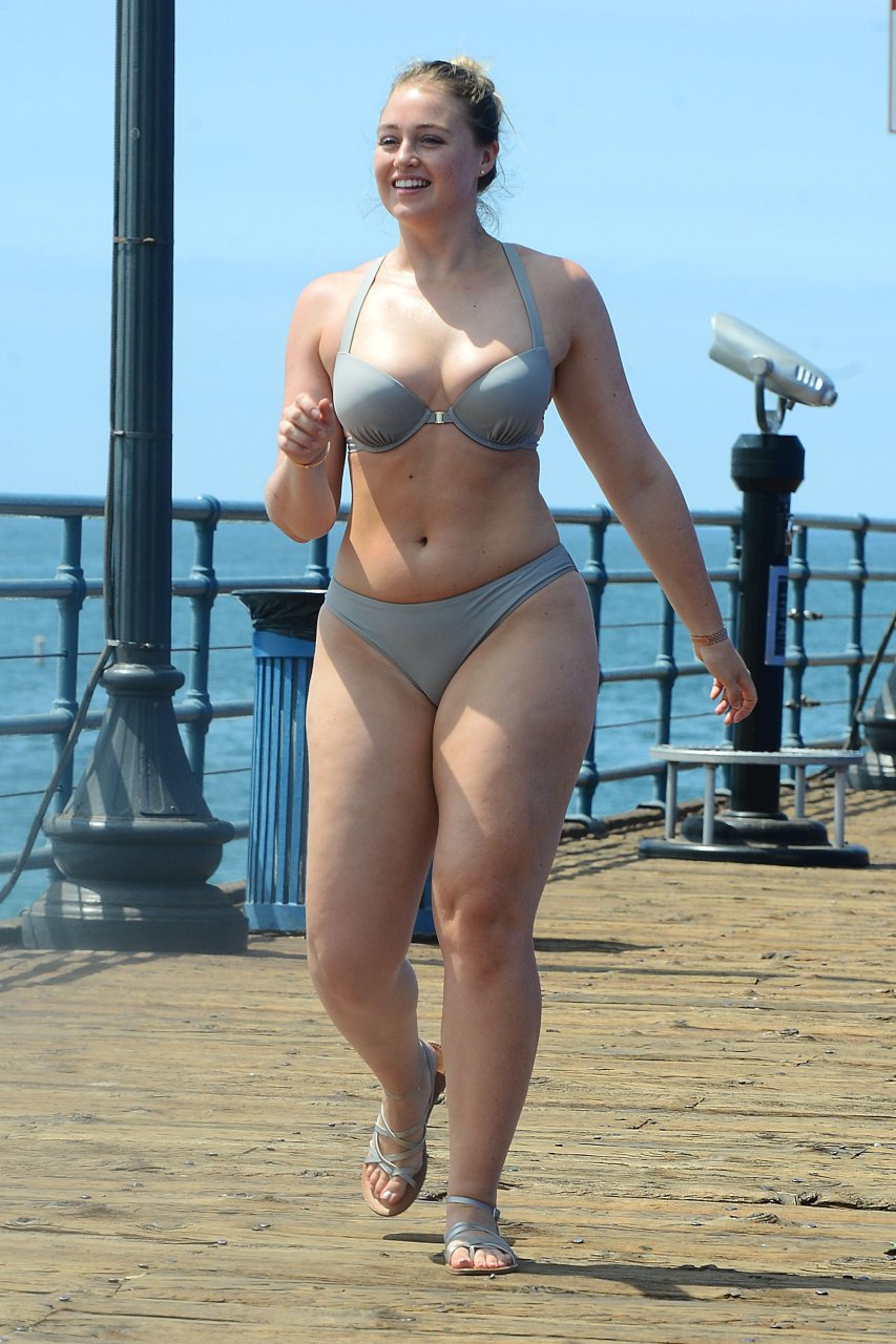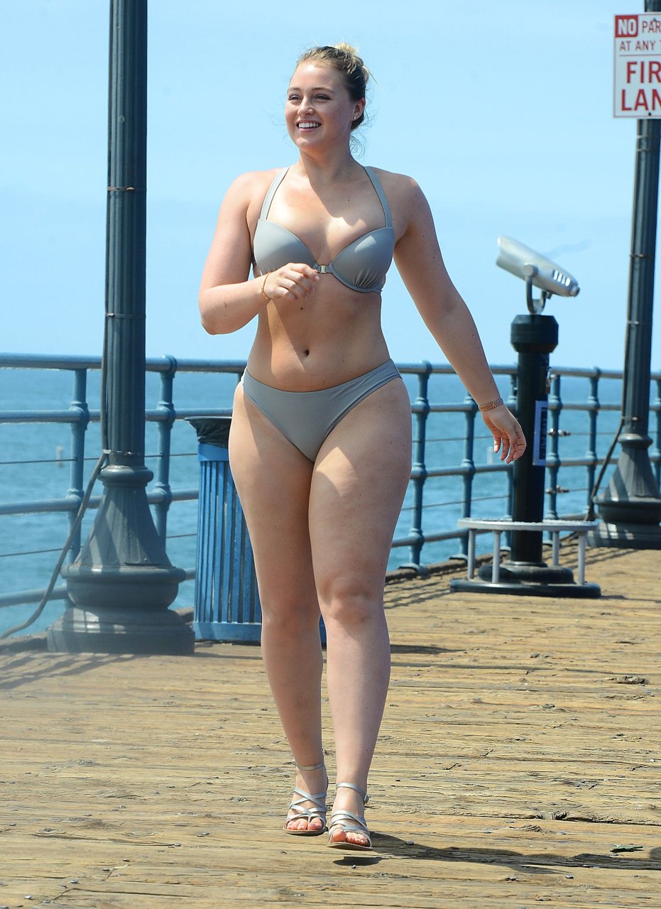 A modelo de 26 anos Iskra Lawrence faz uma sessão de fotos de biquíni para seu site em Santa Monica, 15/08/2017.