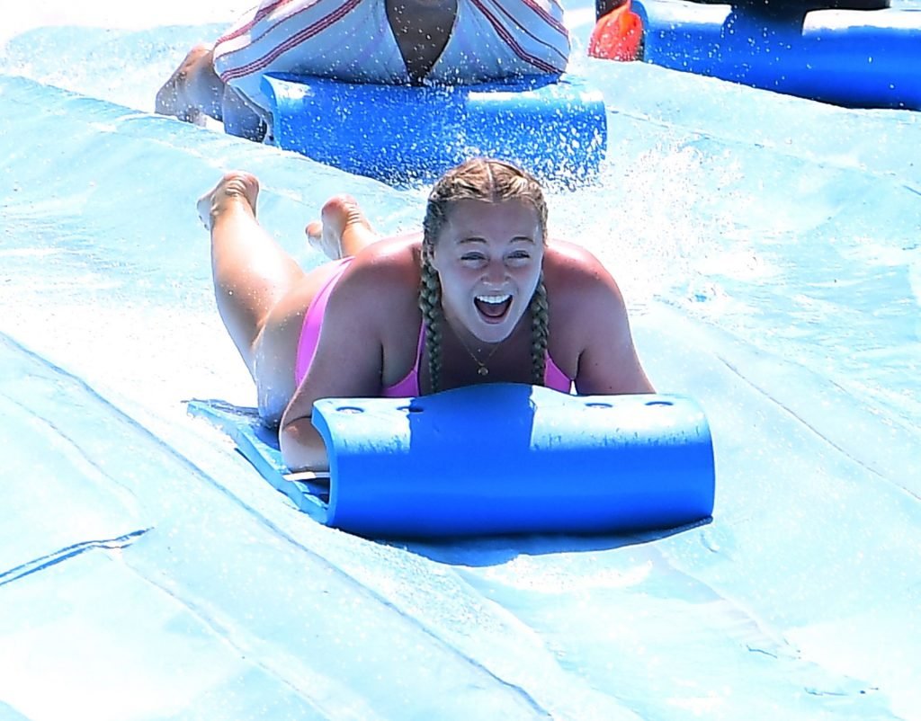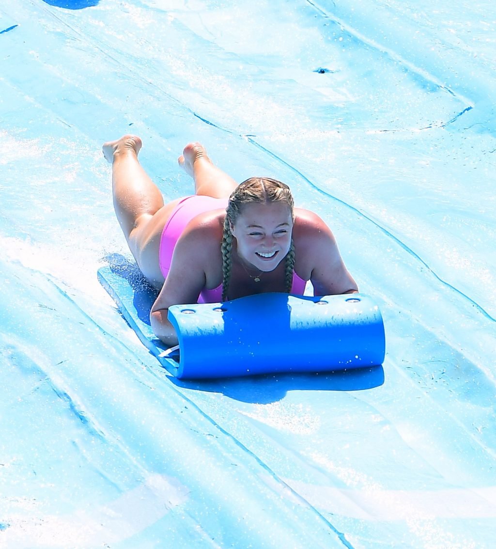 Ela exibiu suas famosas curvas enquanto continuava seu Desafio Sem Maquiagem de uma Semana. Parecia que ela se divertiu muito descendo os toboáguas com suas amigas, antes de dar um mergulho na água gelada.