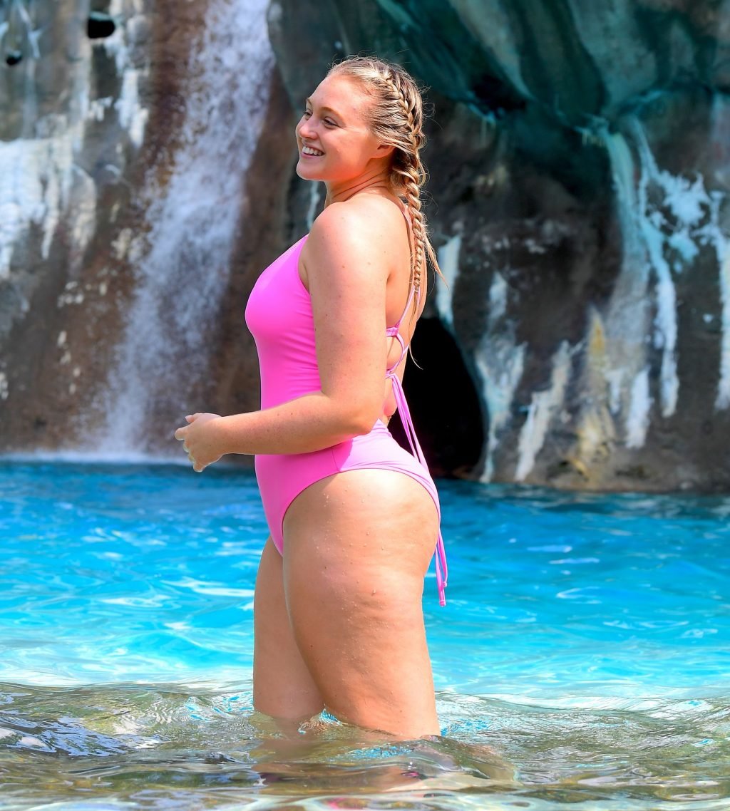 Model Iskra Lawrence foi vista se divertindo ao sol na tarde de segunda-feira no Mountain Creek Waterpark em Nova York, 29/07/2019. A deslumbrante modelo usava um biquíni rosa choque enquanto se molhava e curtia as atrações.