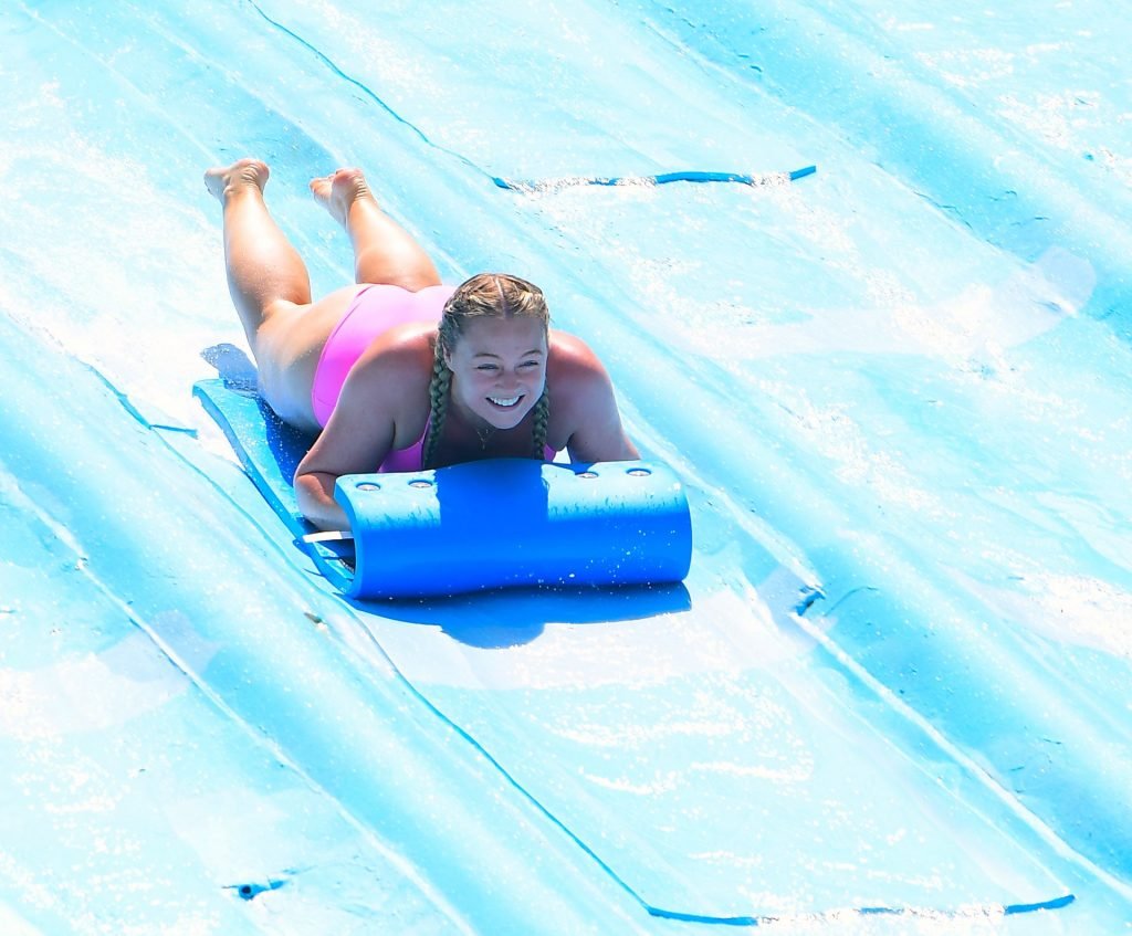 Vou te dizer uma coisa. Quando ela desce aquele escorregador de água, as pessoas saem do caminho. Antes dela fazer a descida, há um anúncio pelo interfone e eles lançam uma daquelas sinalizações.