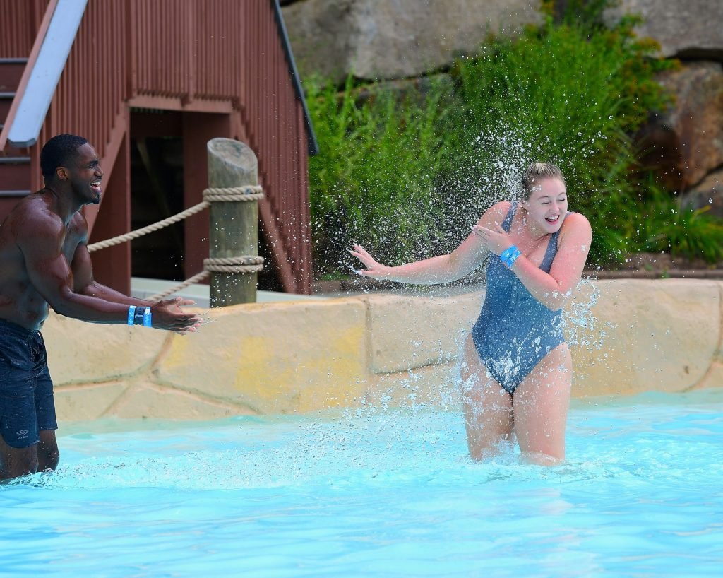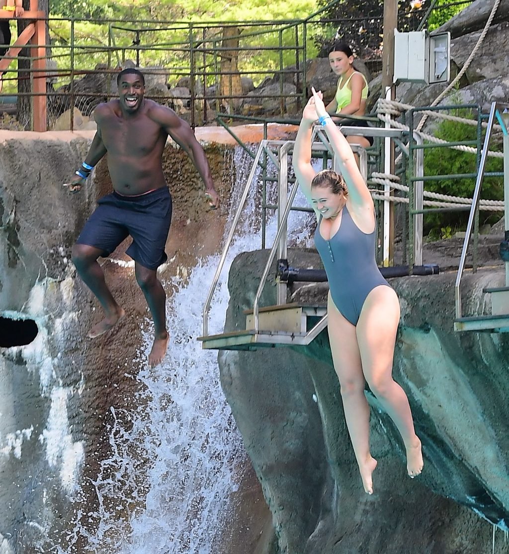 Iskra Lawrence e o namorado, Philip Payne, foram vistos aproveitando um raro tempo livre enquanto visitavam o Mountain Creek Water Park em New Jersey para se divertir ao sol no fim de semana do Dia do Trabalho.