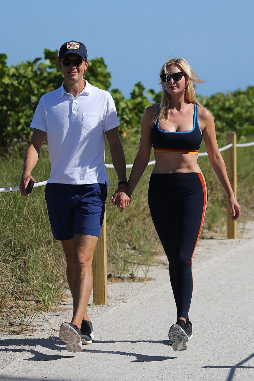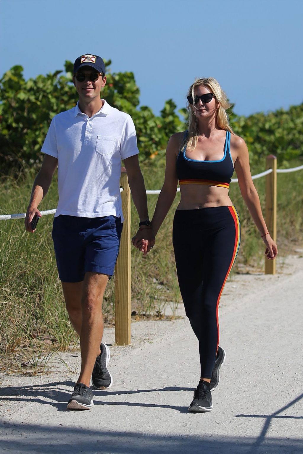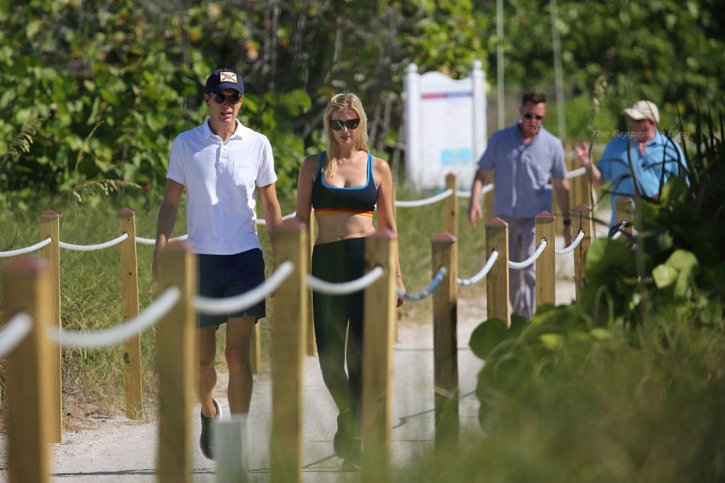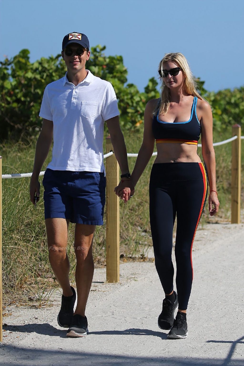 Ivanka Trump exibe suas curvas com um top esportivo e leggings enquanto passeia com o marido Jared Kushner em Miami, 08/05/2021.