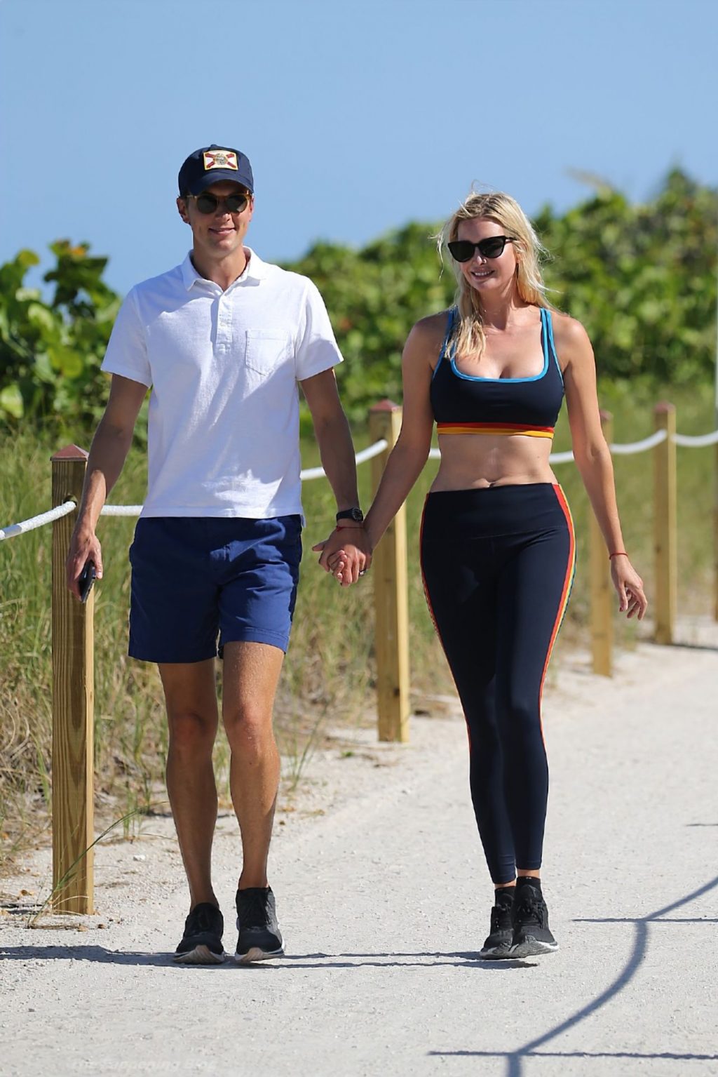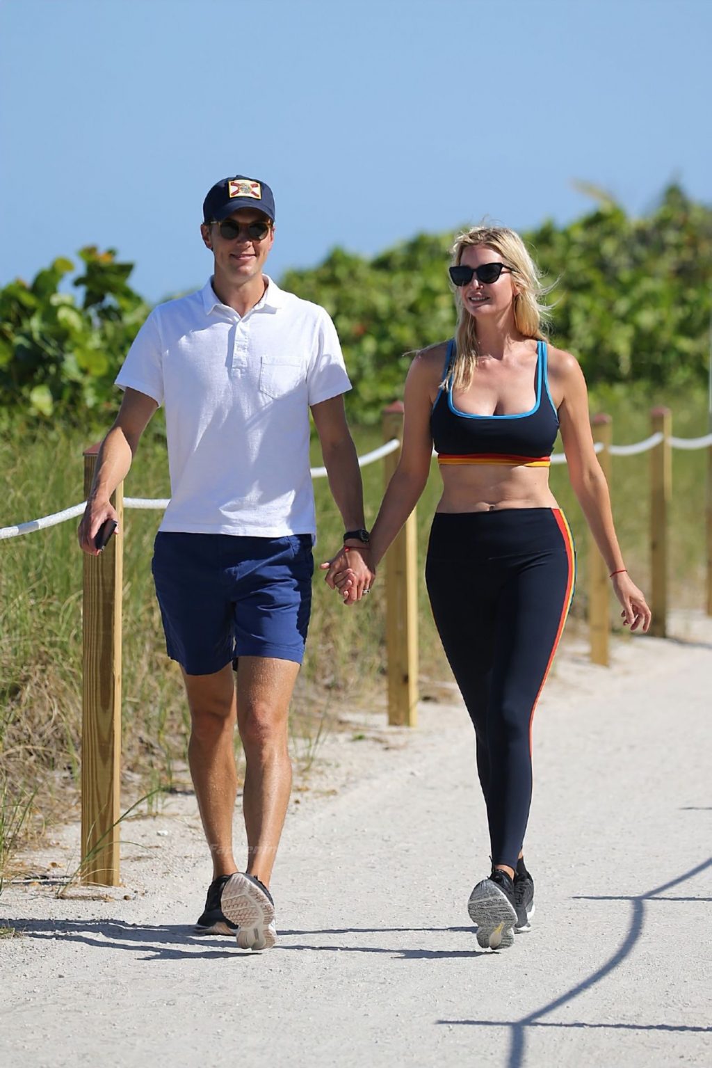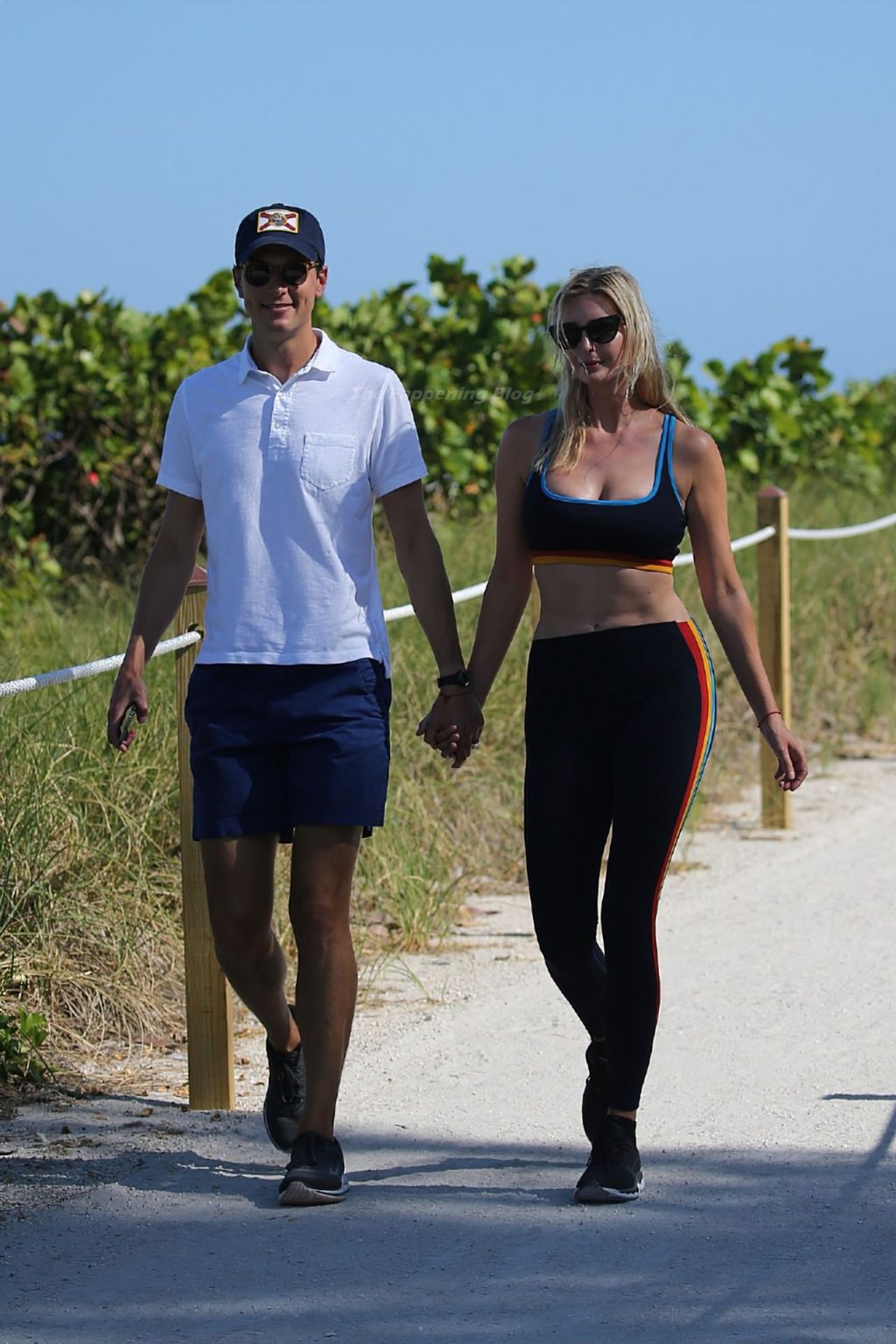Ivanka Trump exibe suas curvas com um top esportivo e leggings enquanto passeia com o marido Jared Kushner em Miami, 08/05/2021.