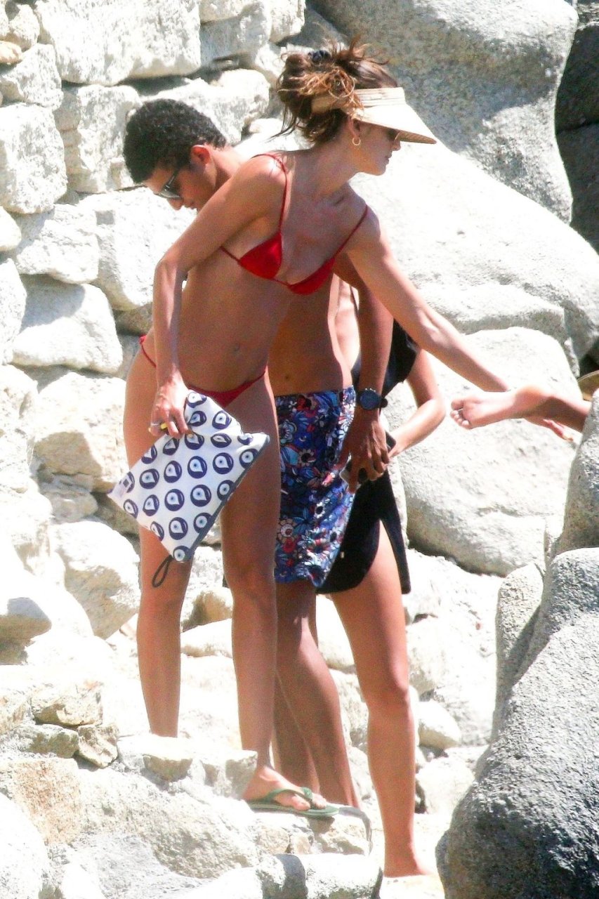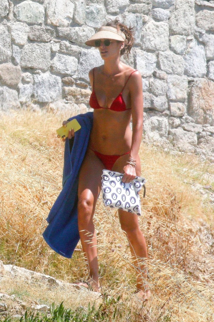 A supermodelo brasileira Izabel Goulart exibe seu físico sexy em um biquíni vermelho minúsculo enquanto aproveita as férias ao sol em Mykonos, 07/04/2019.