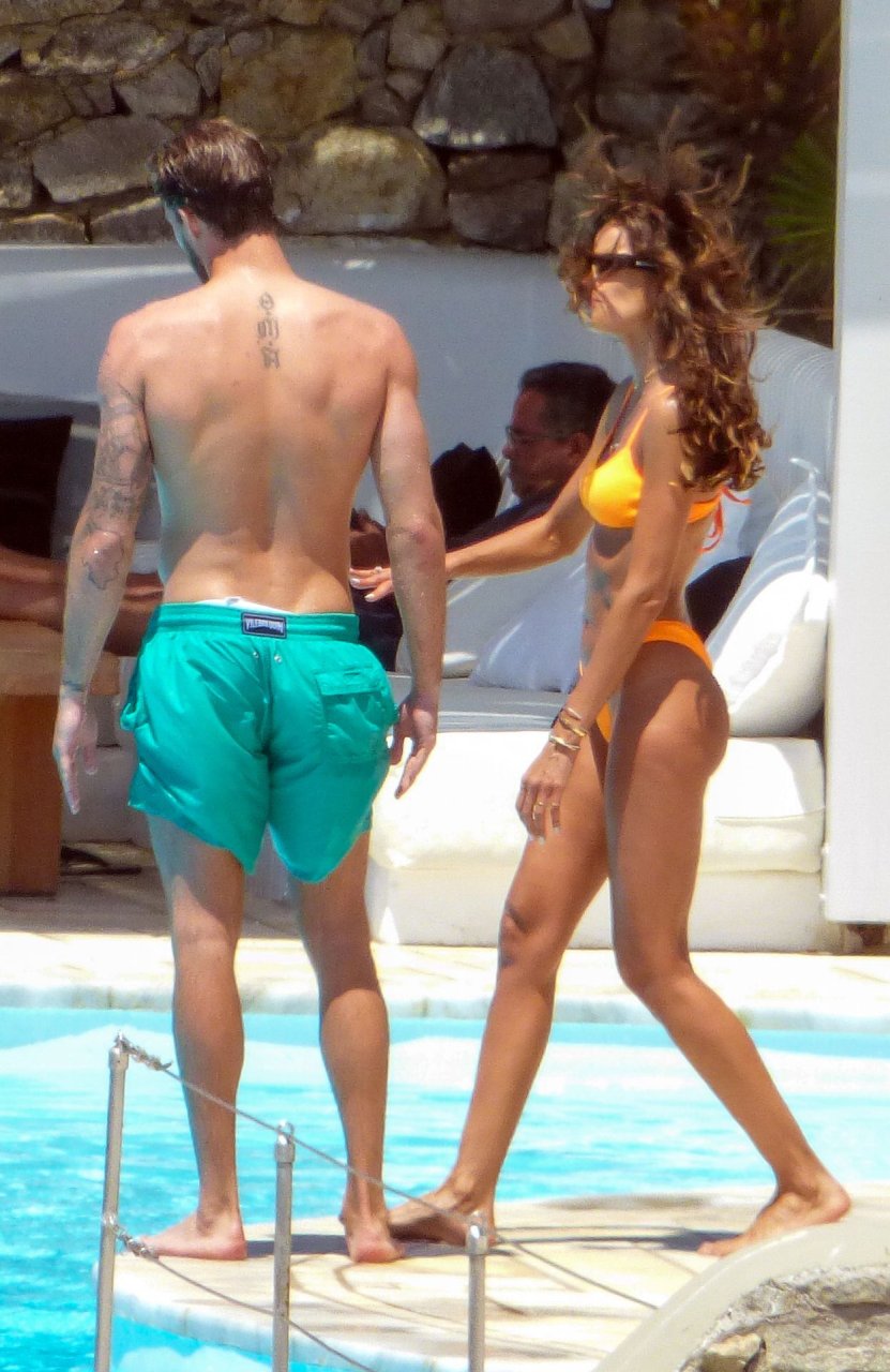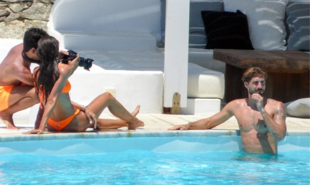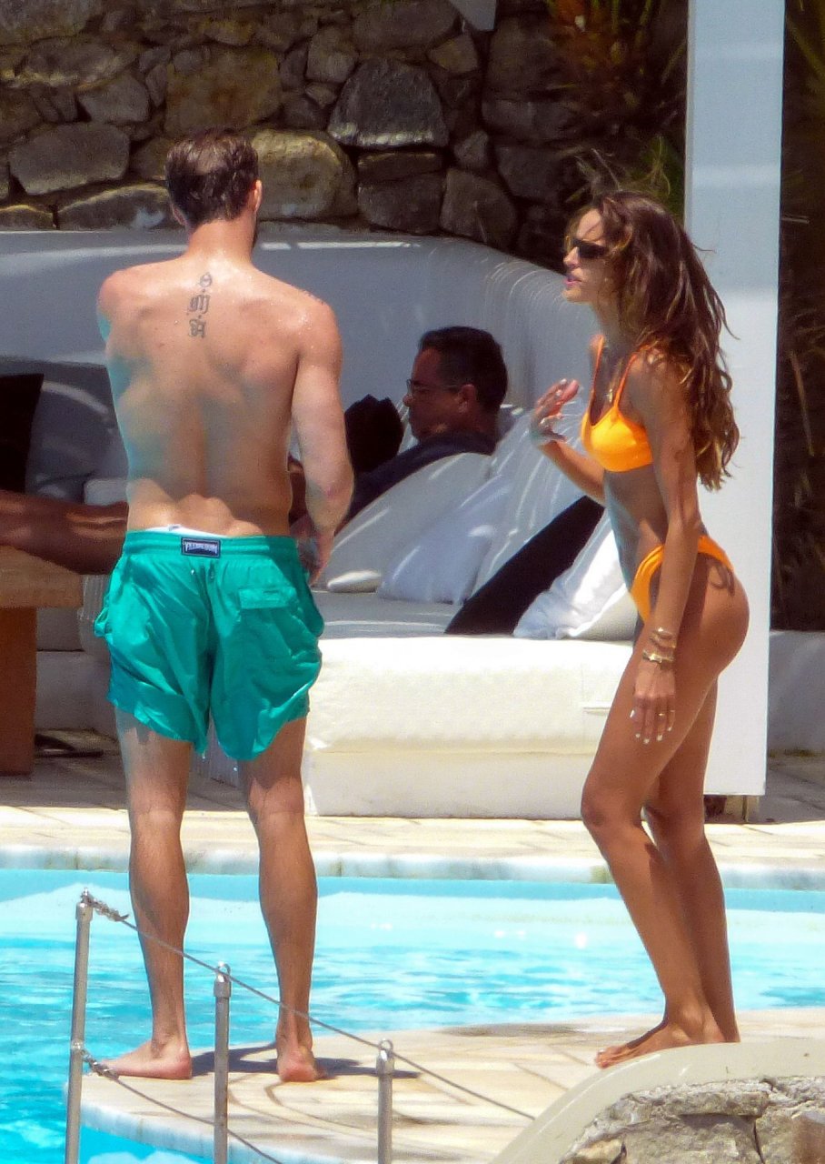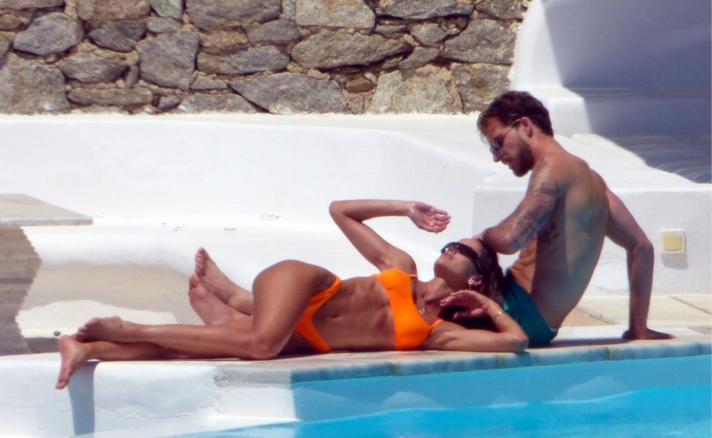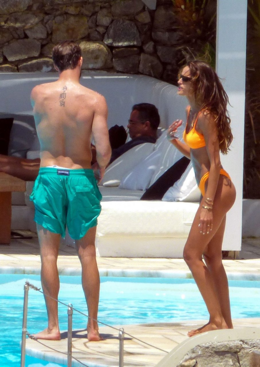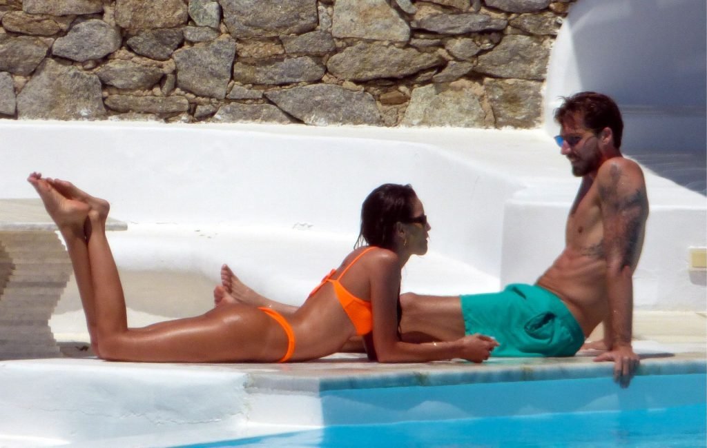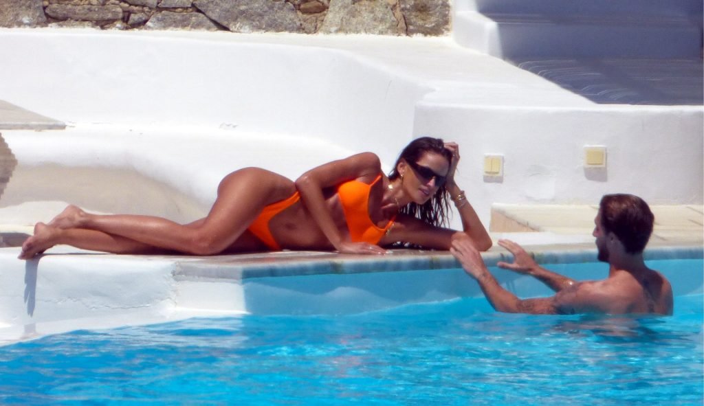 Kevin Trapp e Izabel Goulart se divertem na piscina na Ilha de Mykonos, Grécia, 29/06/2019. A estrela do futebol alemão do PSG, Trapp, 28, e sua noiva supermodelo brasileira, 34, pareciam estar aproveitando ao máximo suas férias cheias de diversão.