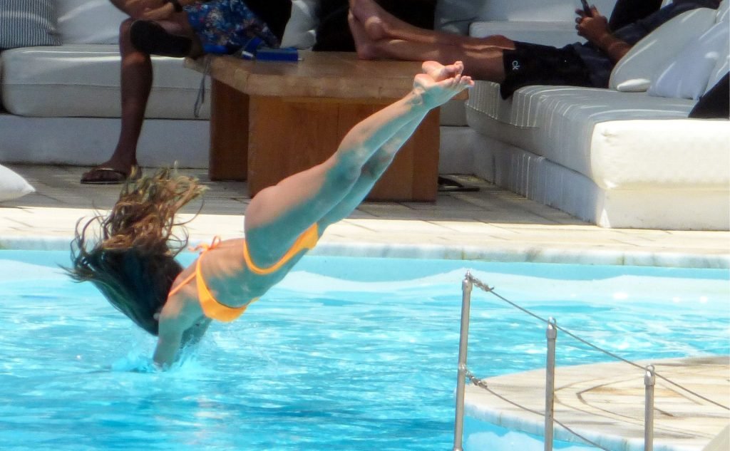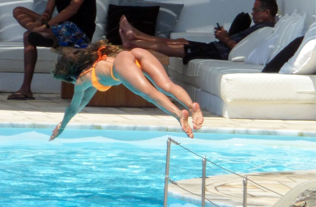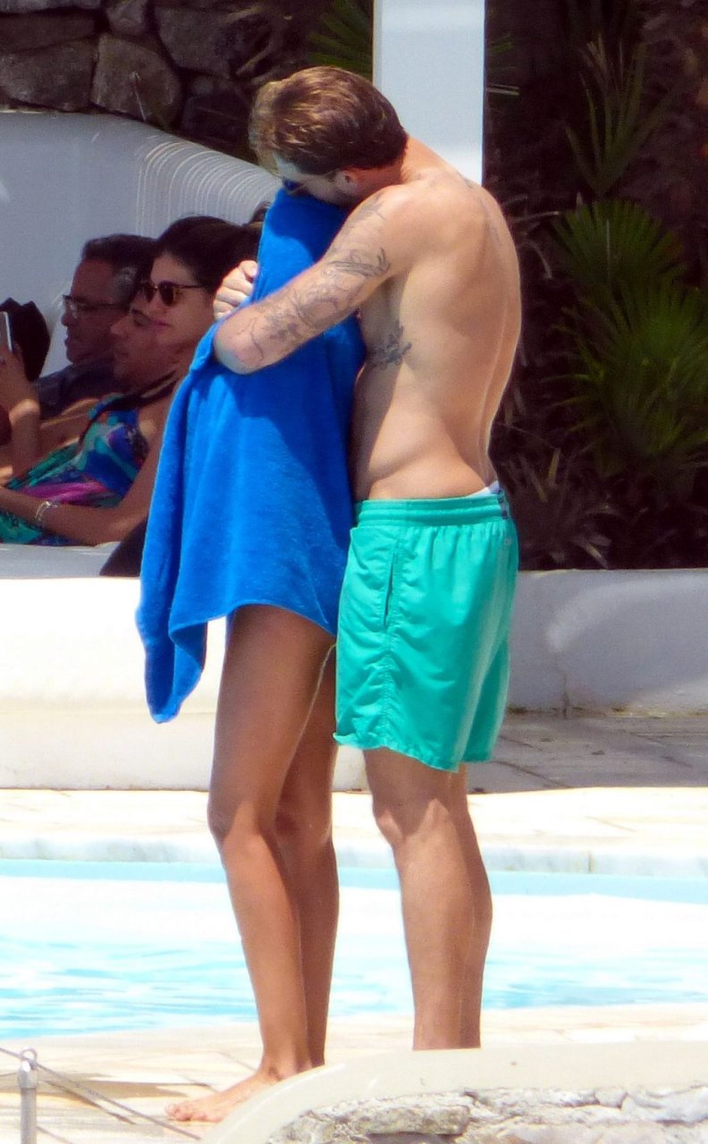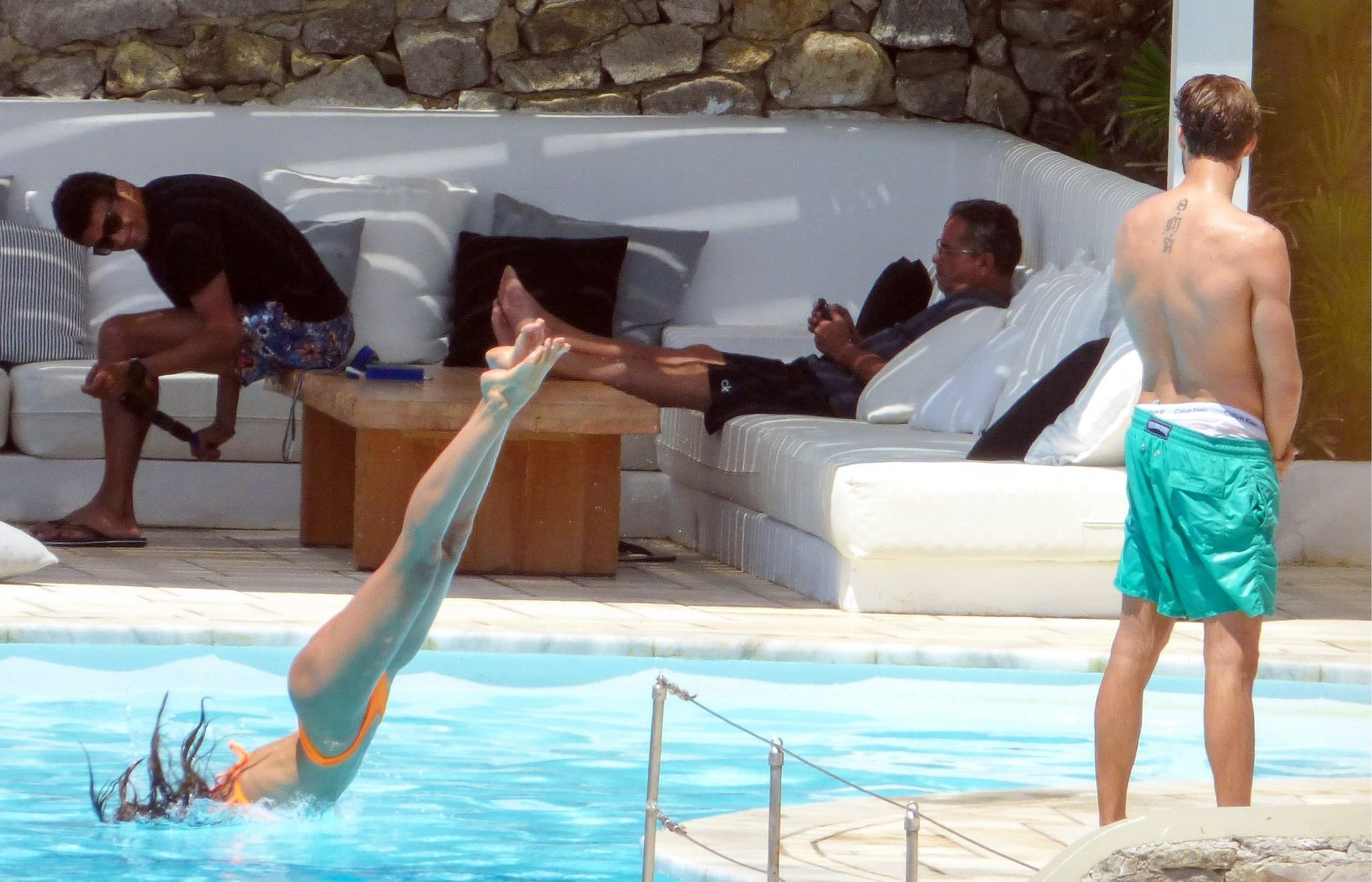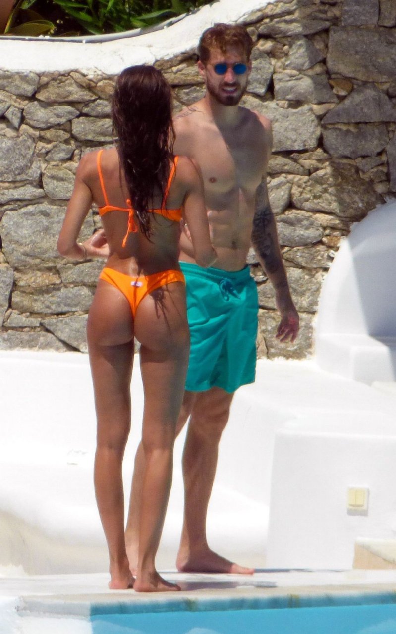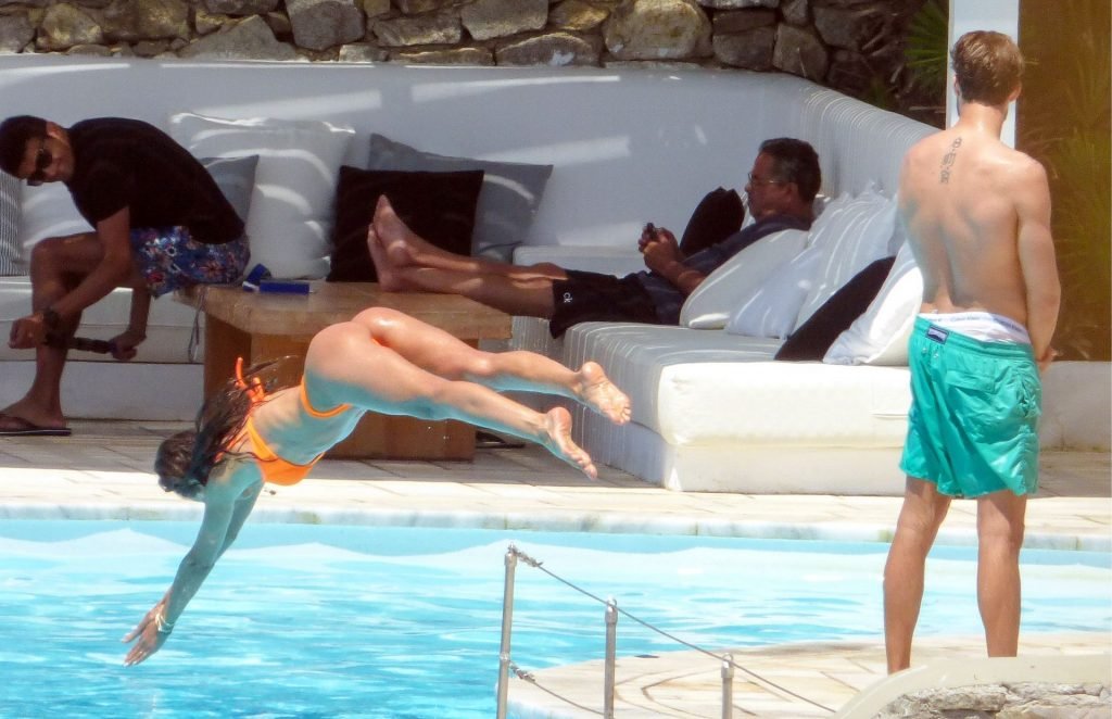 Kevin Trapp e Izabel Goulart se divertem na piscina na Ilha de Mykonos, Grécia, 29/06/2019. A estrela do futebol alemão do PSG, Trapp, 28, e sua noiva supermodelo brasileira, 34, pareciam estar aproveitando ao máximo suas férias cheias de diversão.