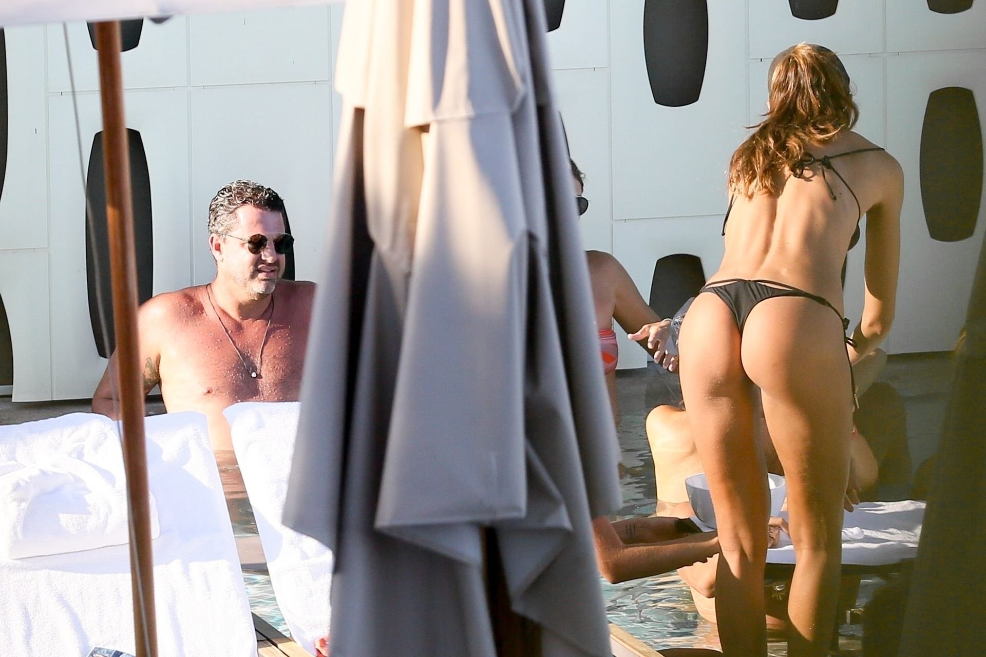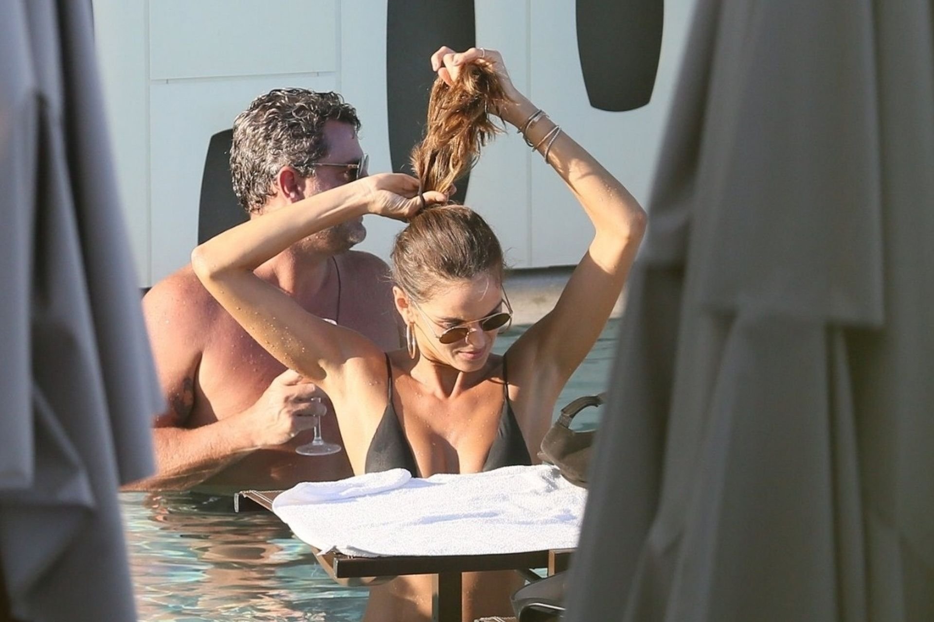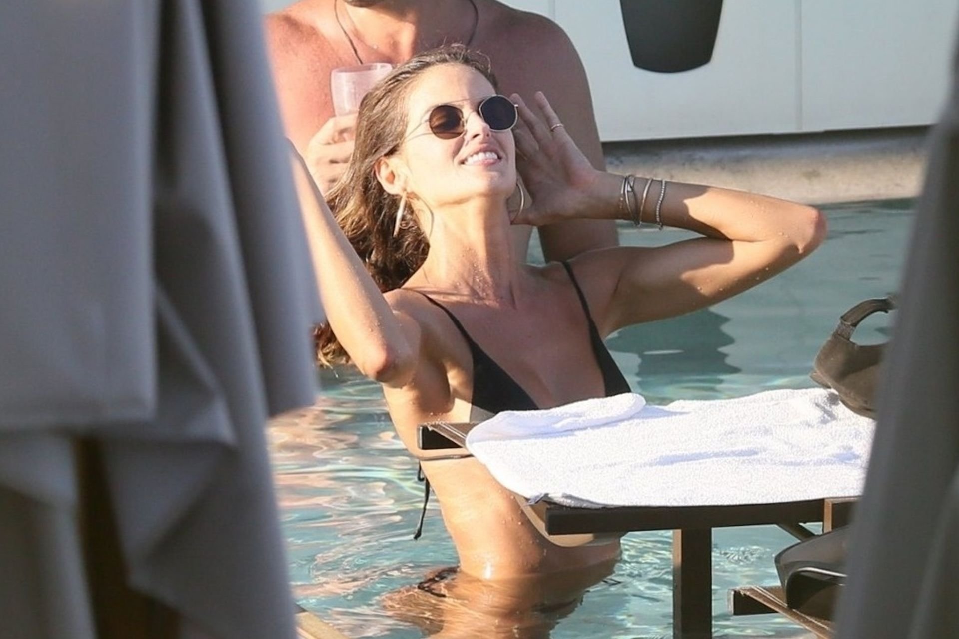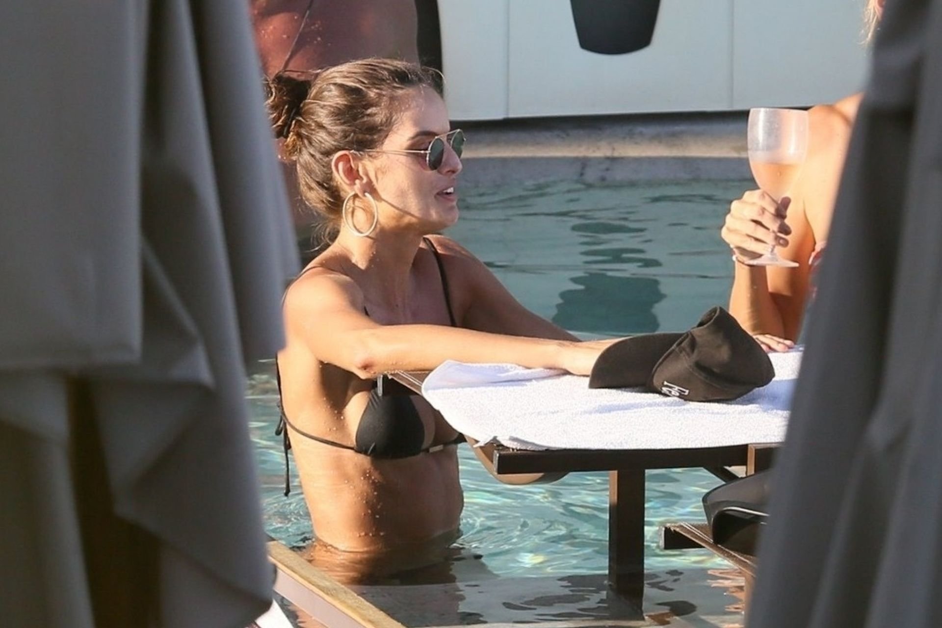 Model Izabel Goulart aproveita um tempo de descanso após festejar durante as festividades do Carnaval no Rio, 08/03/2019. A magra gata mostrou seu doce e pequeno bumbum na piscina com amigos.