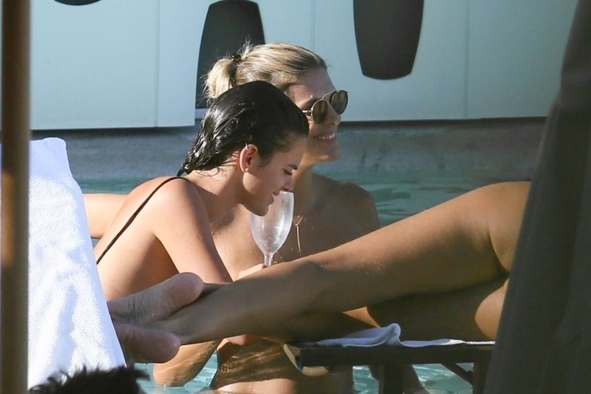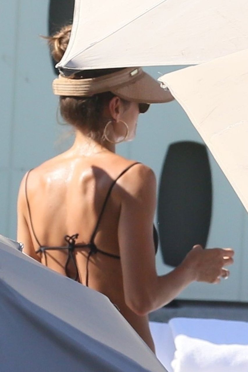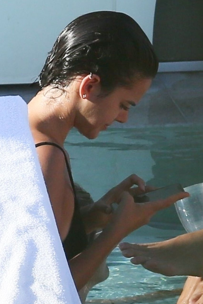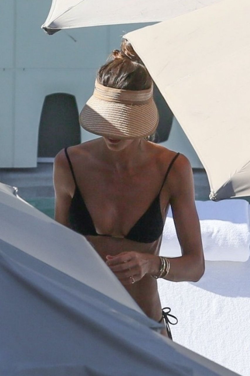 Model Izabel Goulart aproveita um tempo de descanso após festejar durante as festividades do Carnaval no Rio, 08/03/2019. A magra gata mostrou seu doce e pequeno bumbum na piscina com amigos.