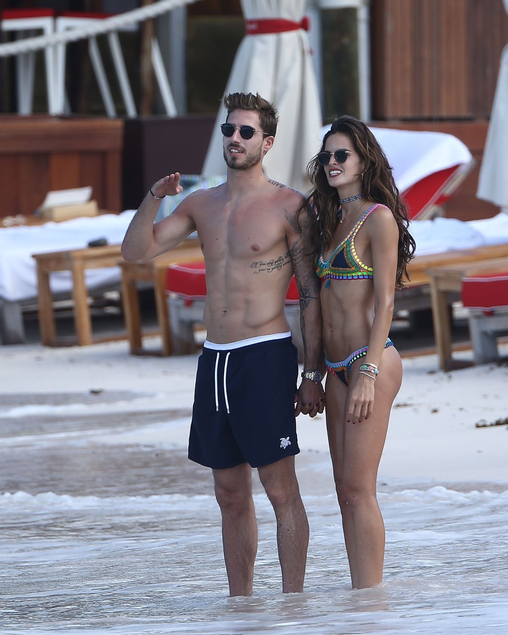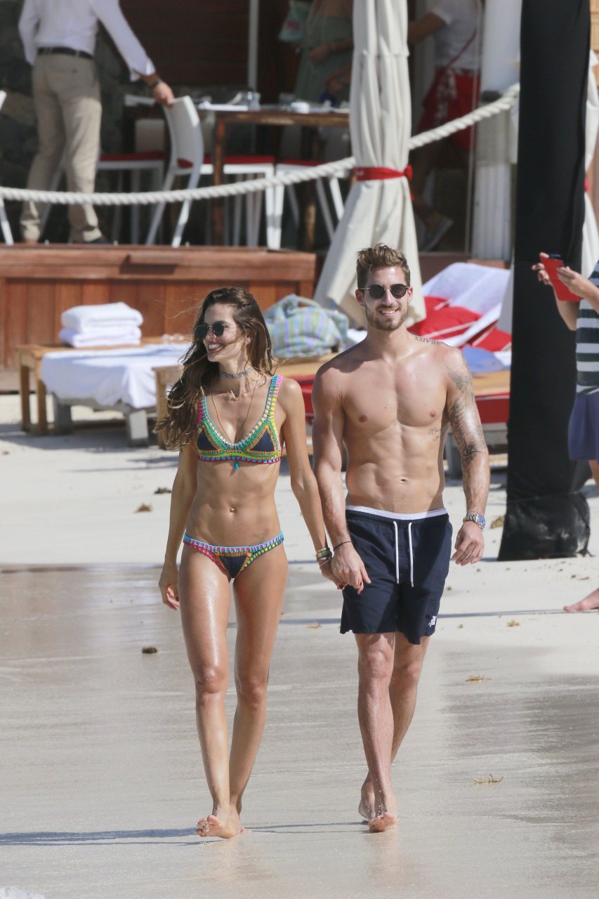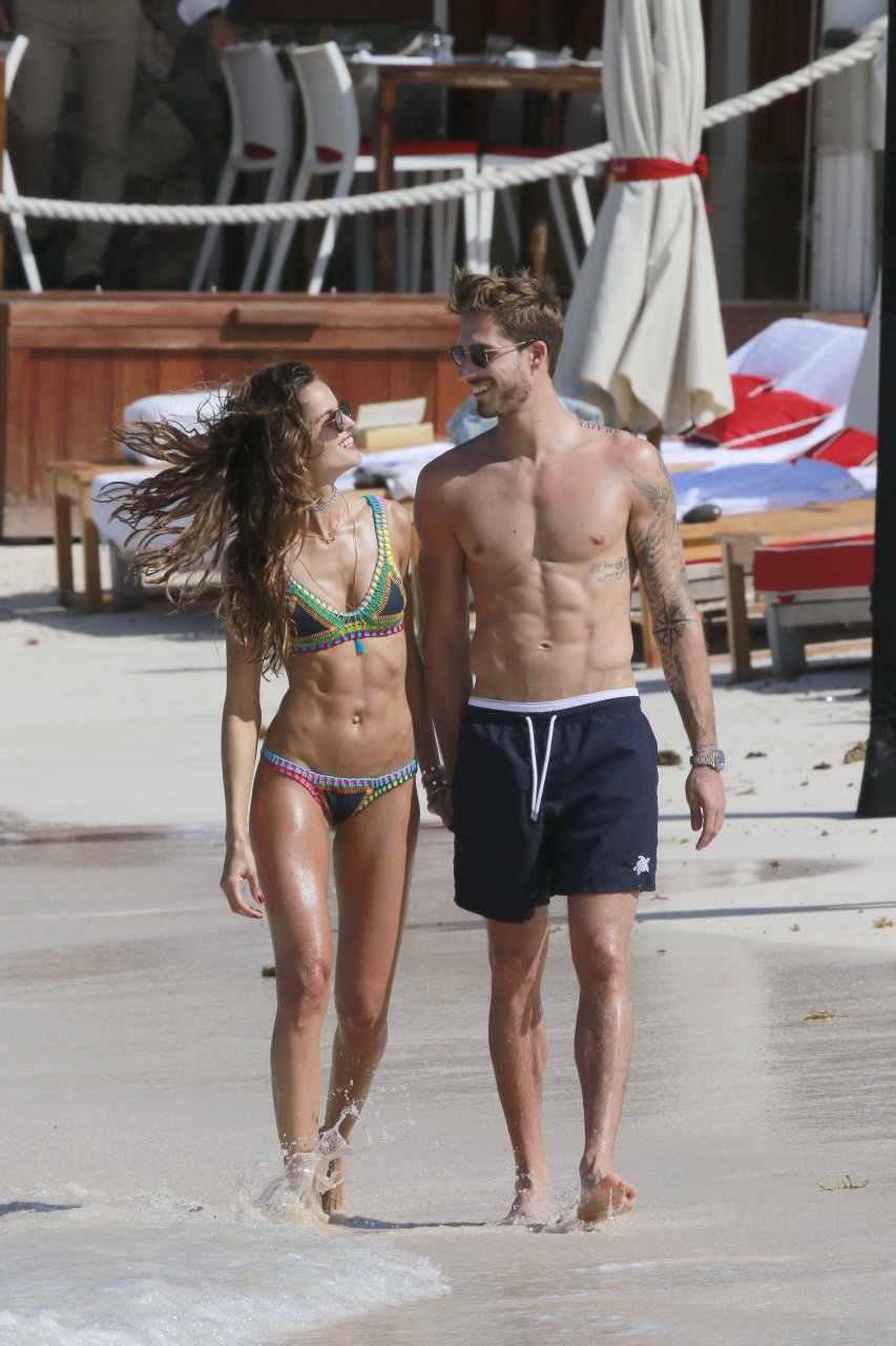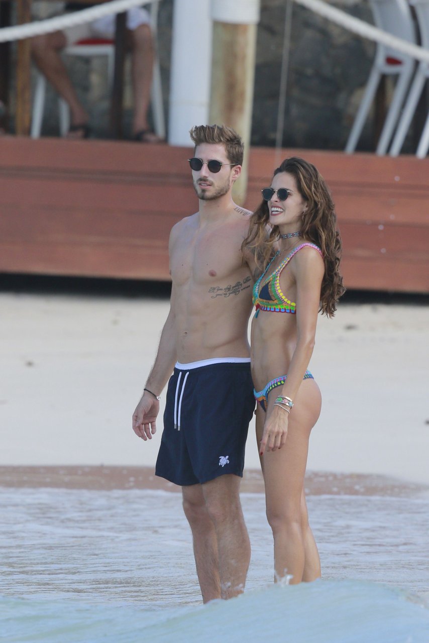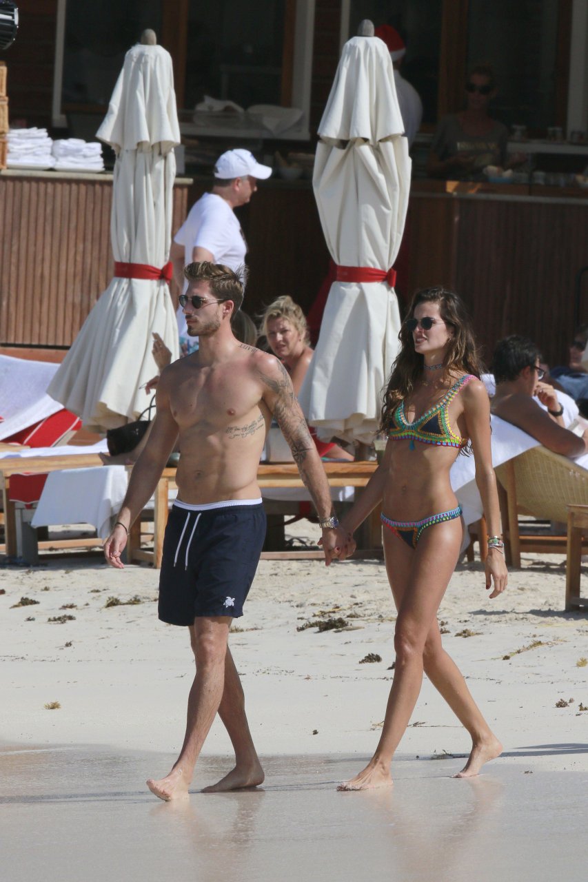 Izabel Goulart exibe seu corpo esguio em um biquíni fio dental com o namorado na praia em St. Barts, 25/12/2016. Izabel Goulart é uma modelo brasileira. Idade: 32 (23 de outubro de 1984). Altura: 177 cm.