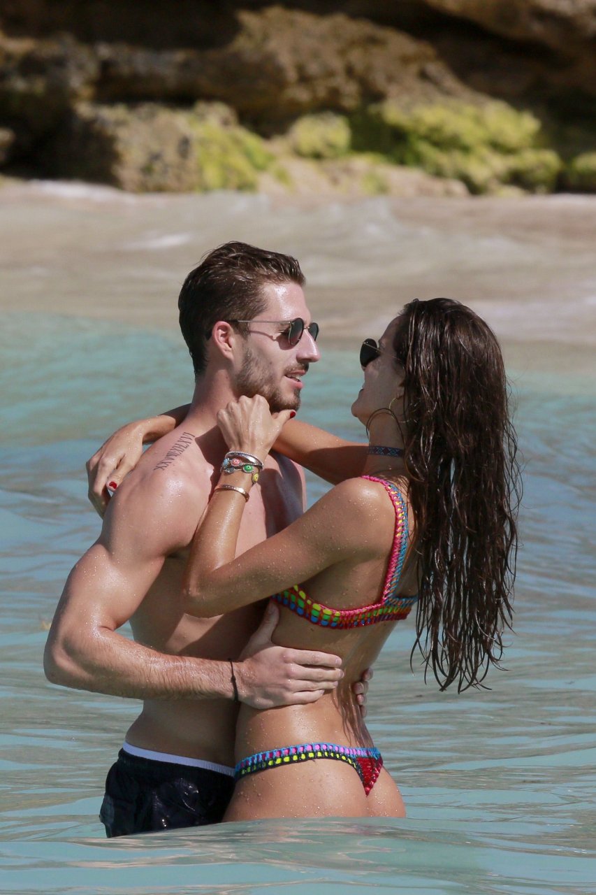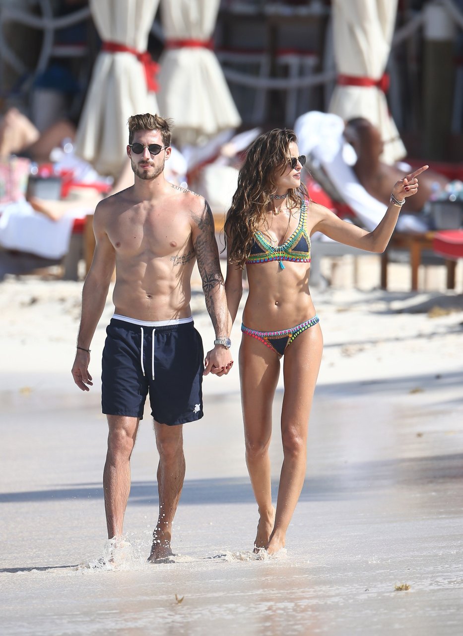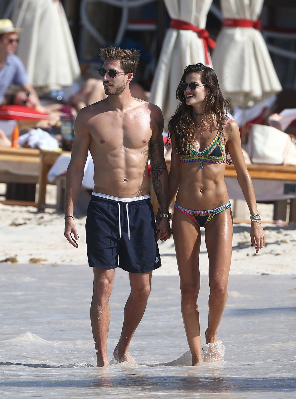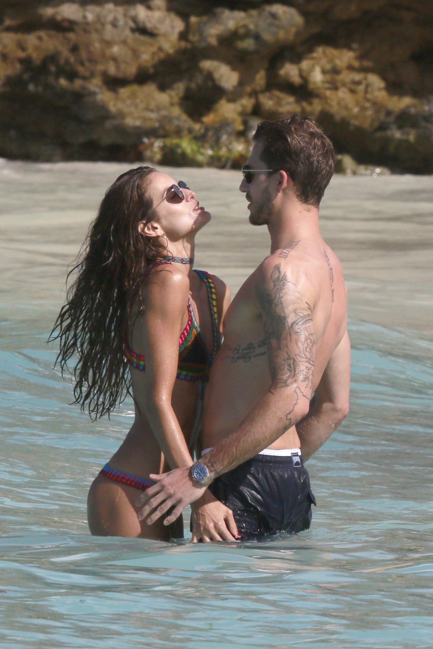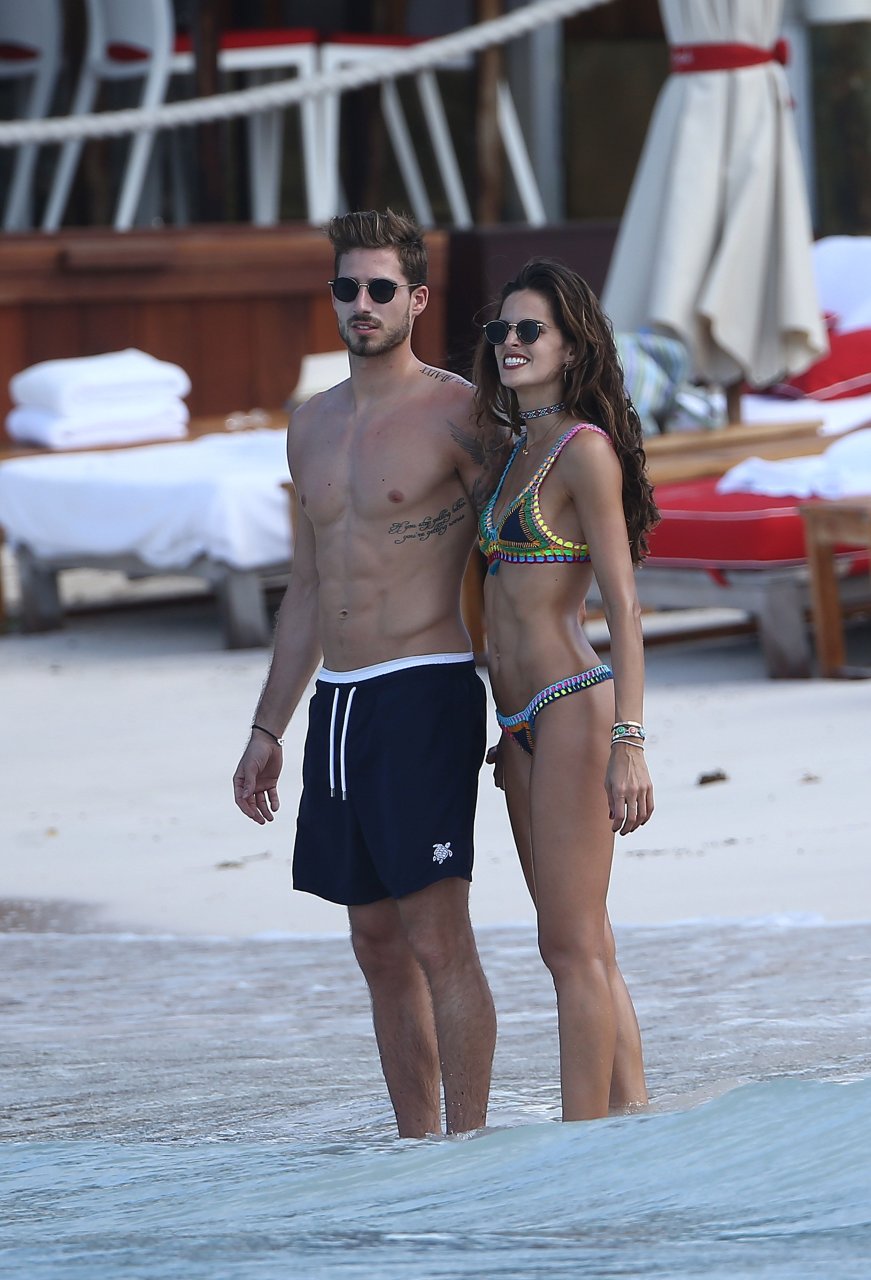 Izabel Goulart exibe seu corpo esguio em um biquíni fio dental com o namorado na praia em St. Barts, 25/12/2016. Izabel Goulart é uma modelo brasileira. Idade: 32 (23 de outubro de 1984). Altura: 177 cm.