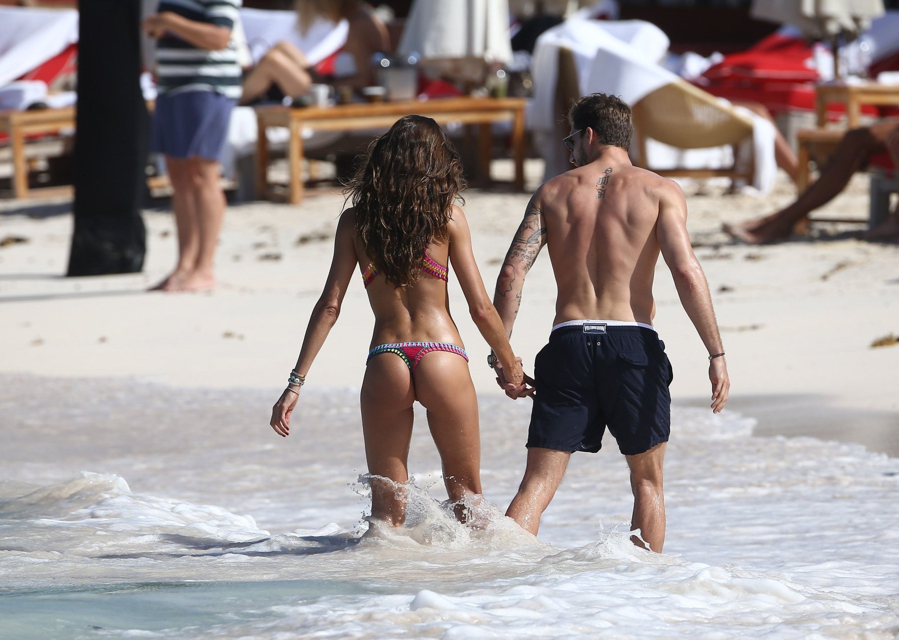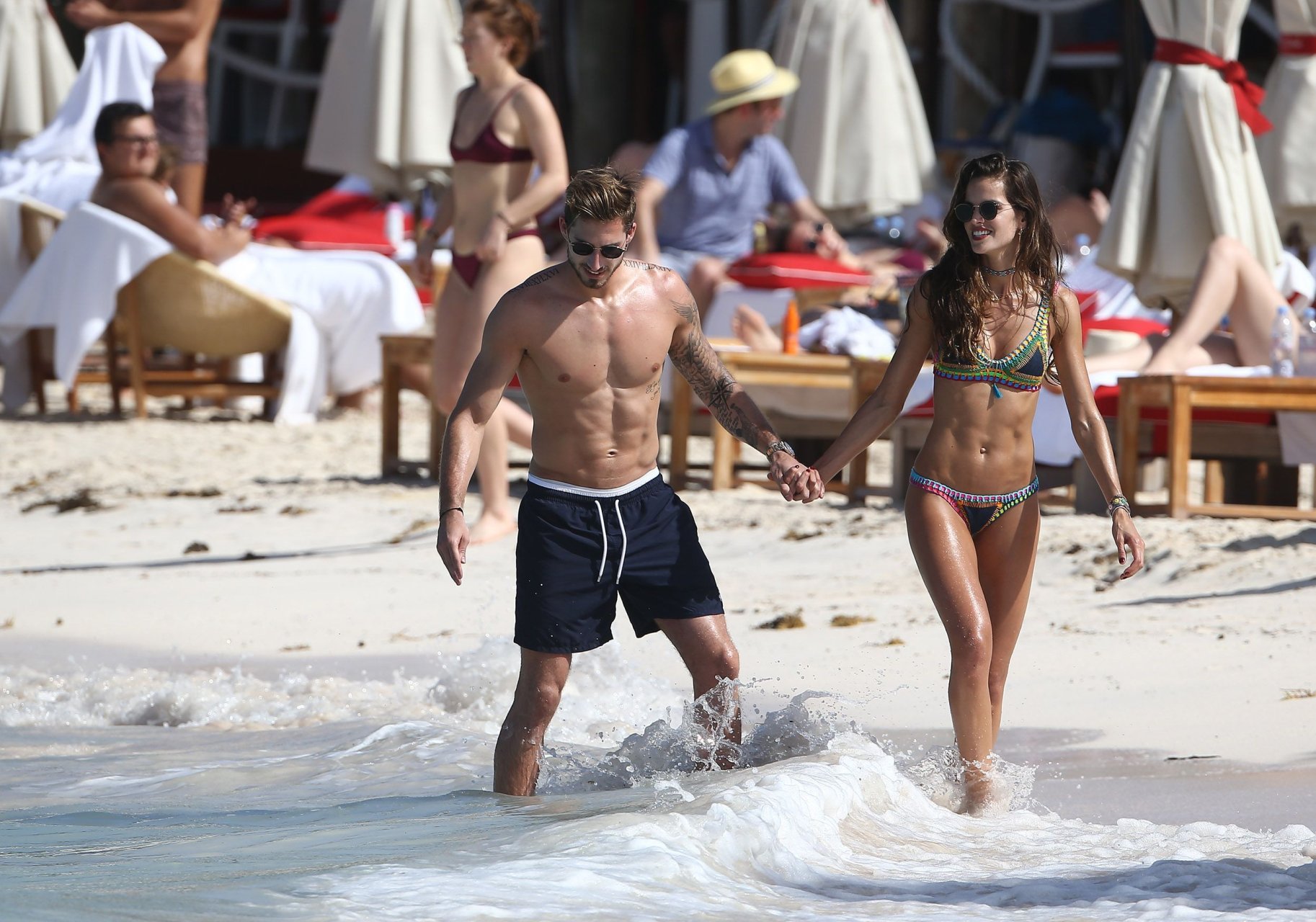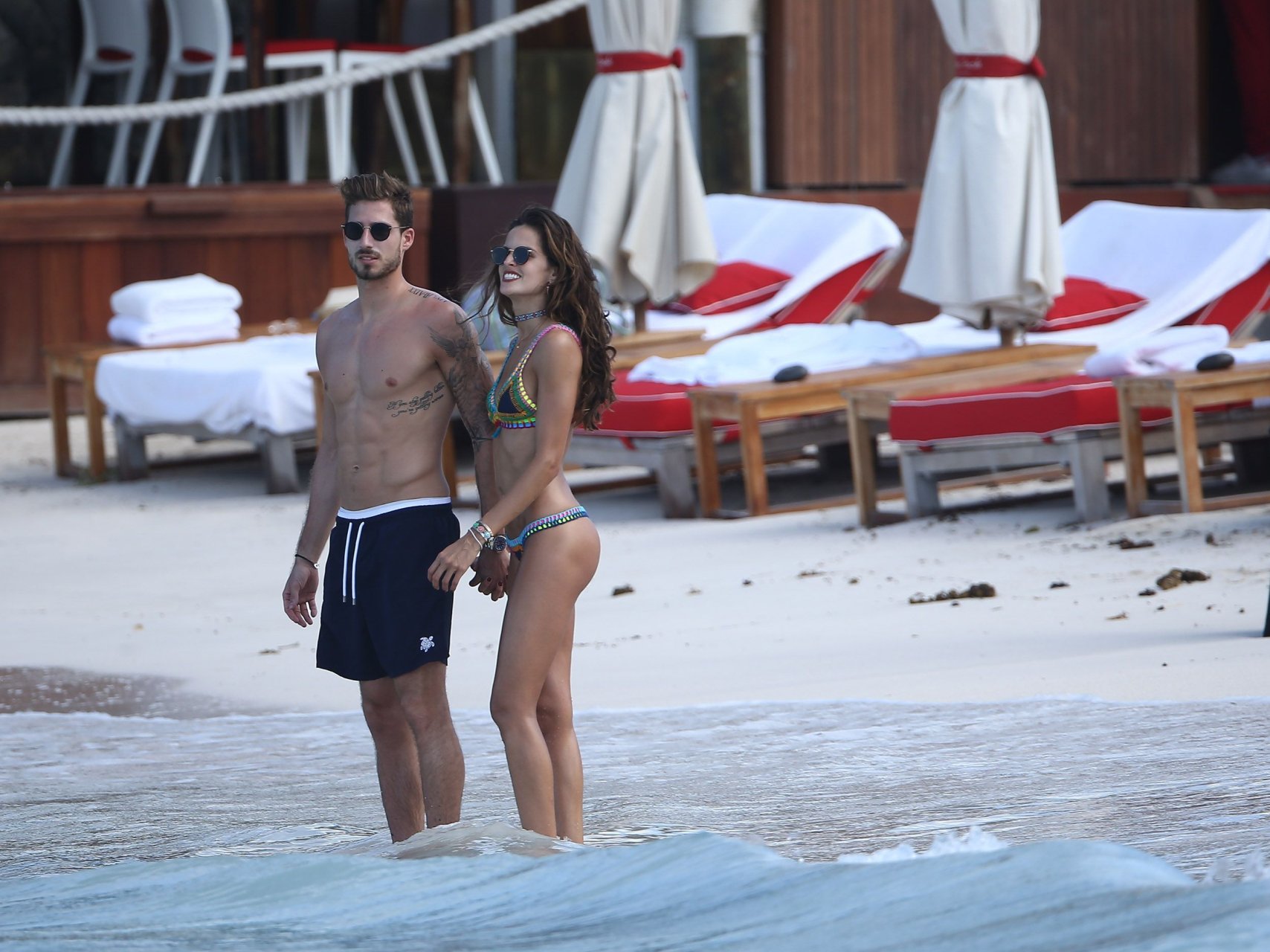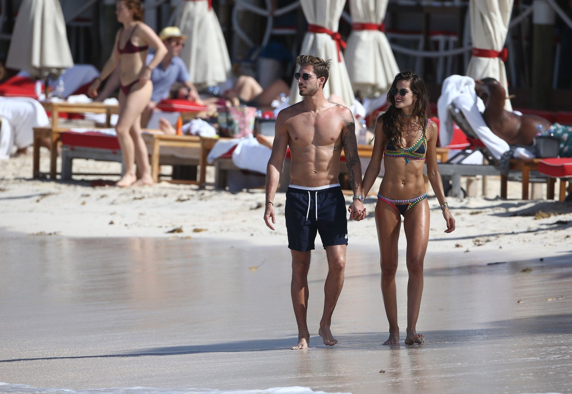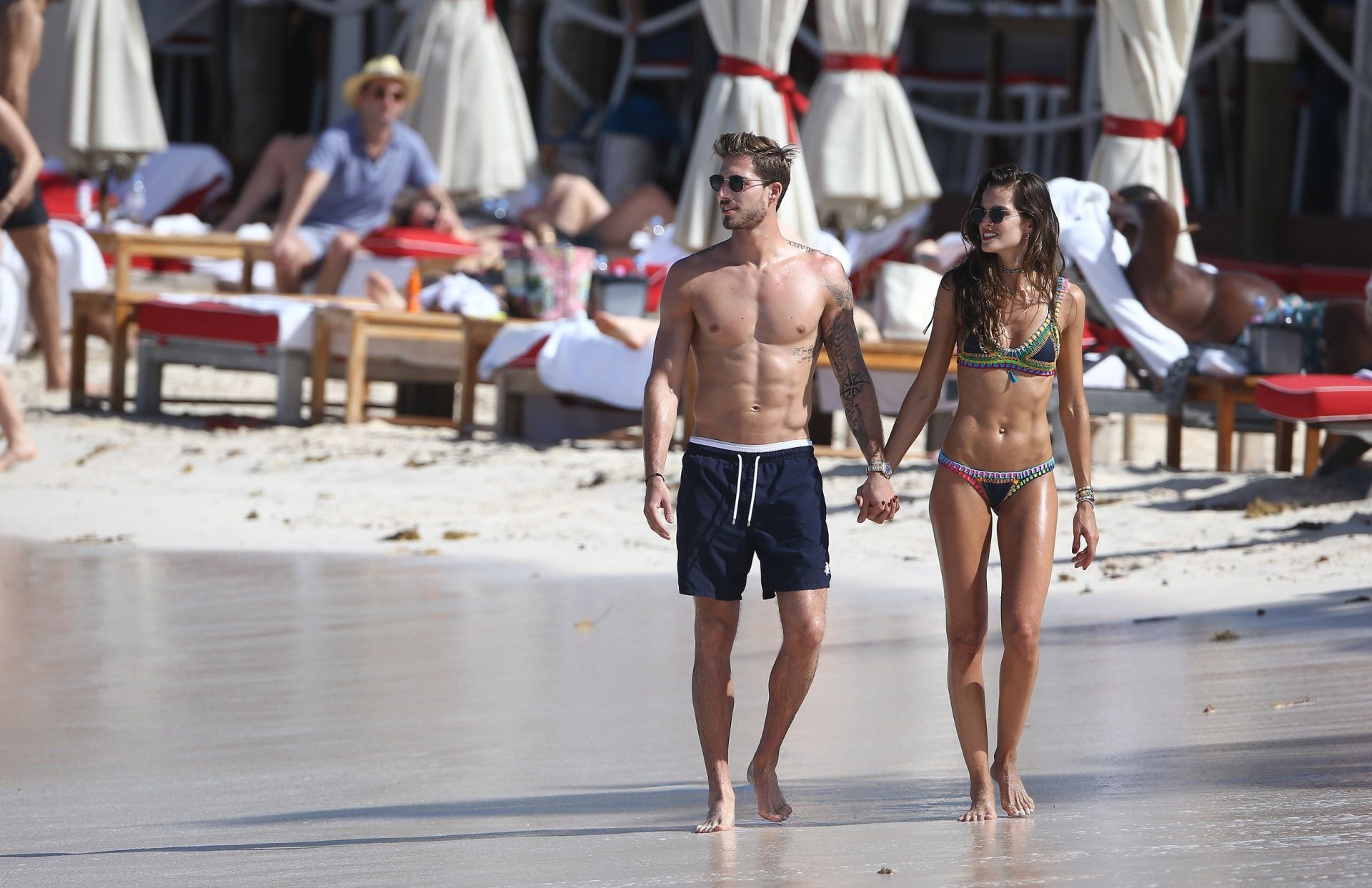 Izabel Goulart exibe seu corpo esguio em um biquíni fio dental com o namorado na praia em St. Barts, 25/12/2016. Izabel Goulart é uma modelo brasileira. Idade: 32 (23 de outubro de 1984). Altura: 177 cm.