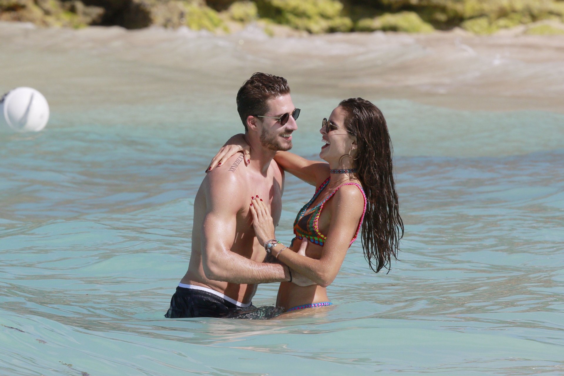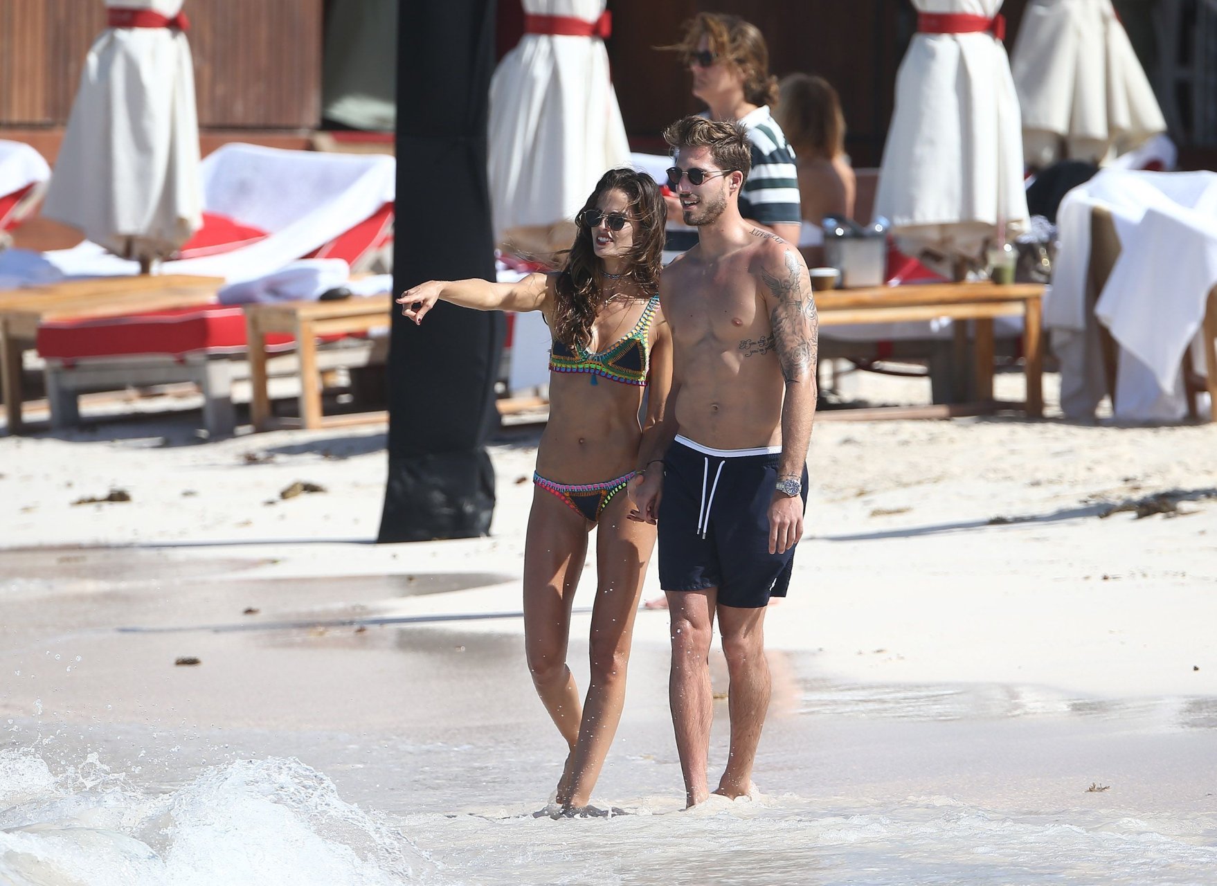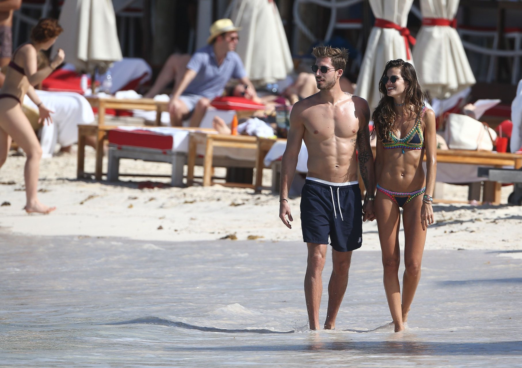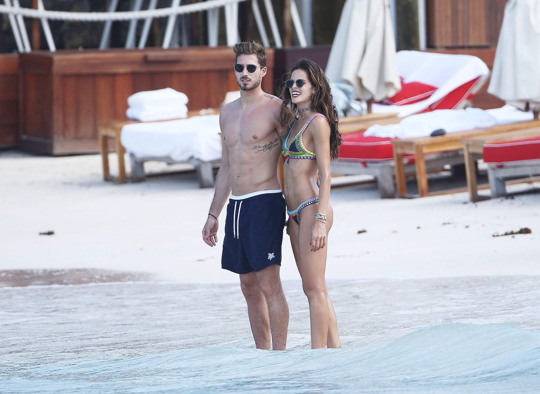 Izabel Goulart exibe seu corpo esguio em um biquíni fio dental com o namorado na praia em St. Barts, 25/12/2016. Izabel Goulart é uma modelo brasileira. Idade: 32 (23 de outubro de 1984). Altura: 177 cm.