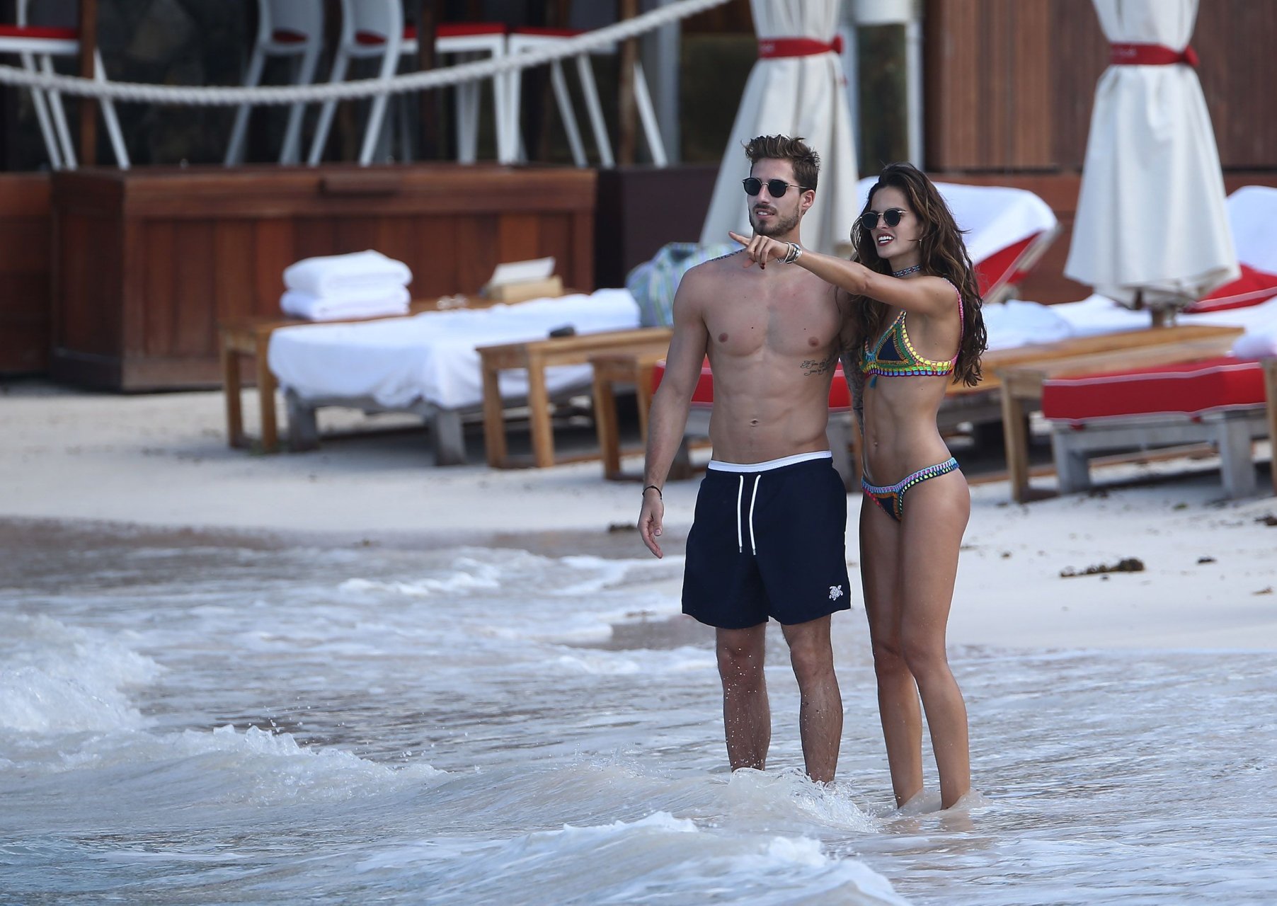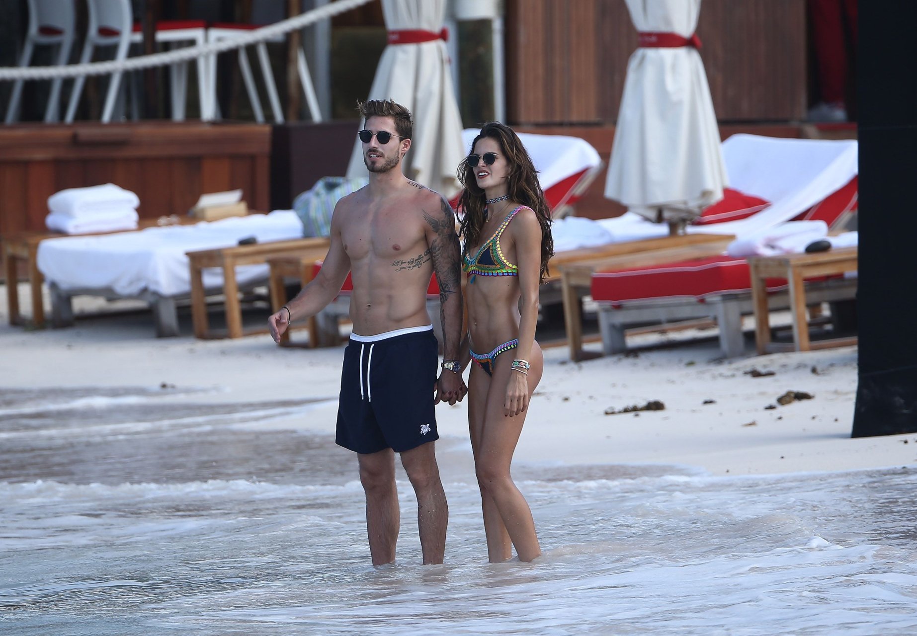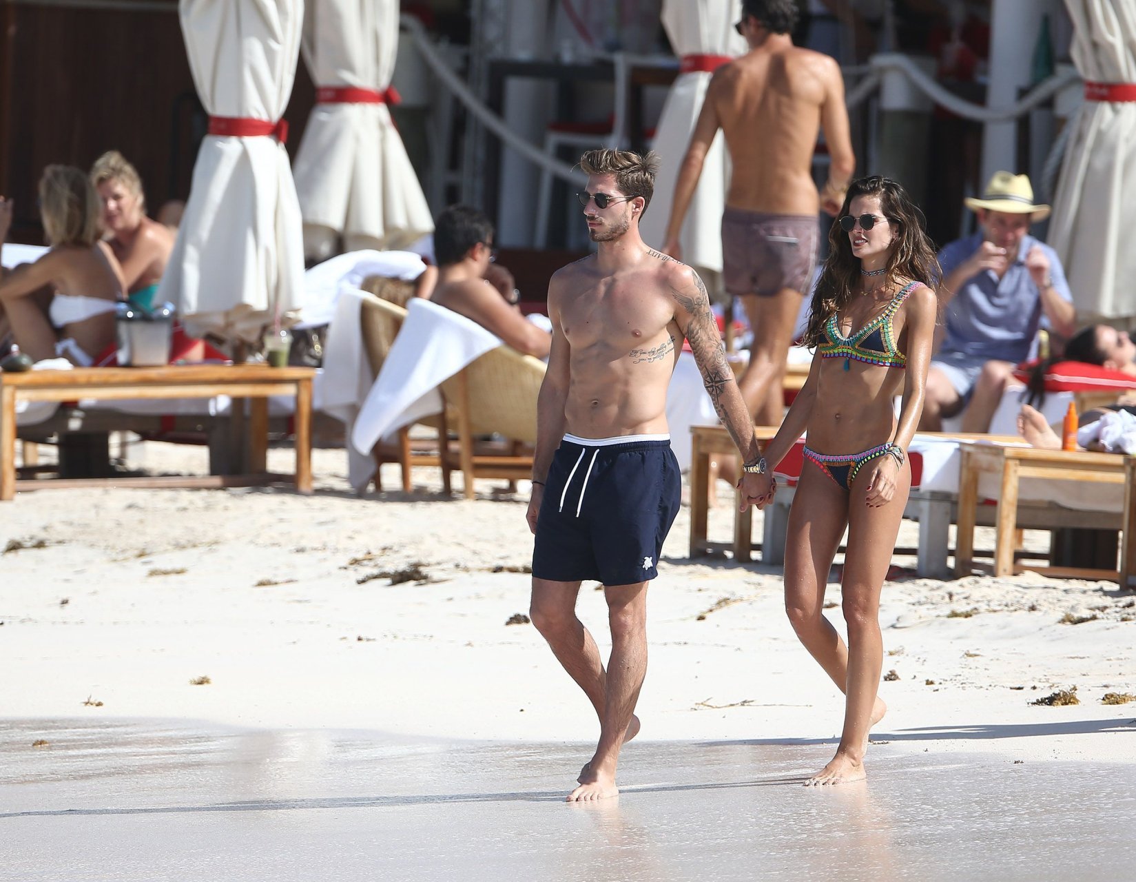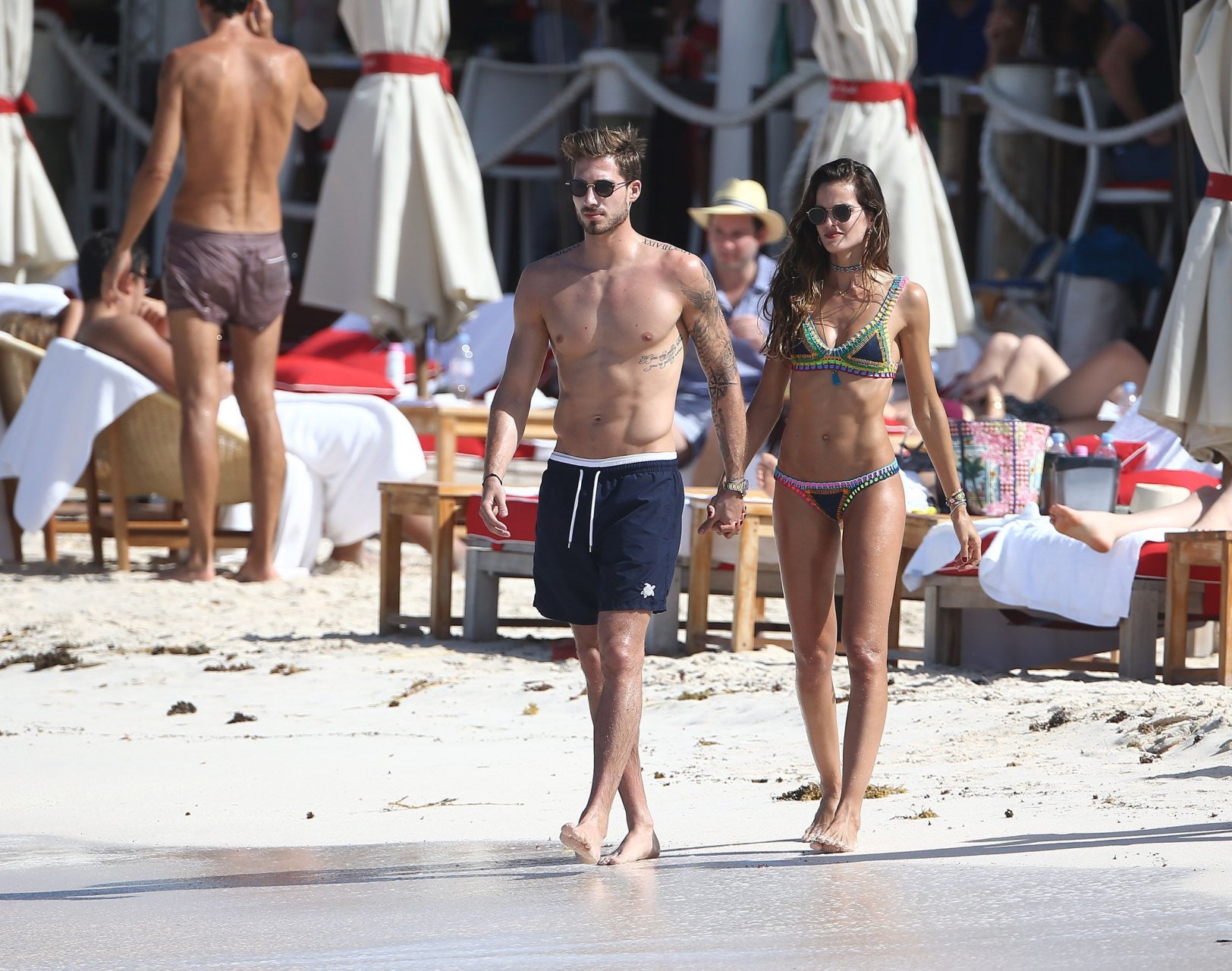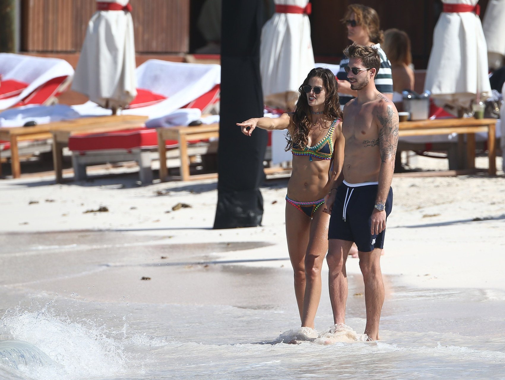 Izabel Goulart exibe seu corpo esguio em um biquíni fio dental com o namorado na praia em St. Barts, 25/12/2016. Izabel Goulart é uma modelo brasileira. Idade: 32 (23 de outubro de 1984). Altura: 177 cm.