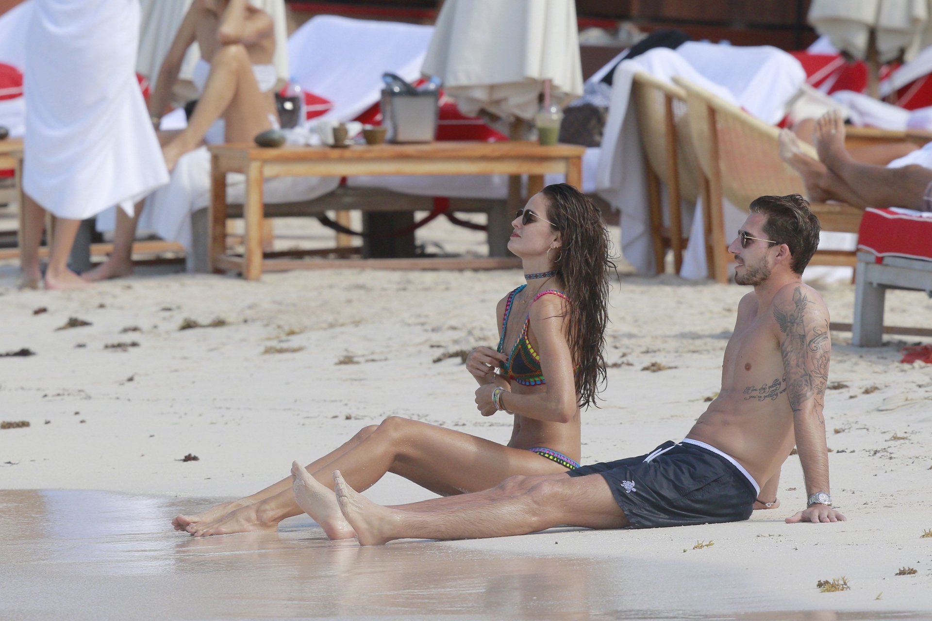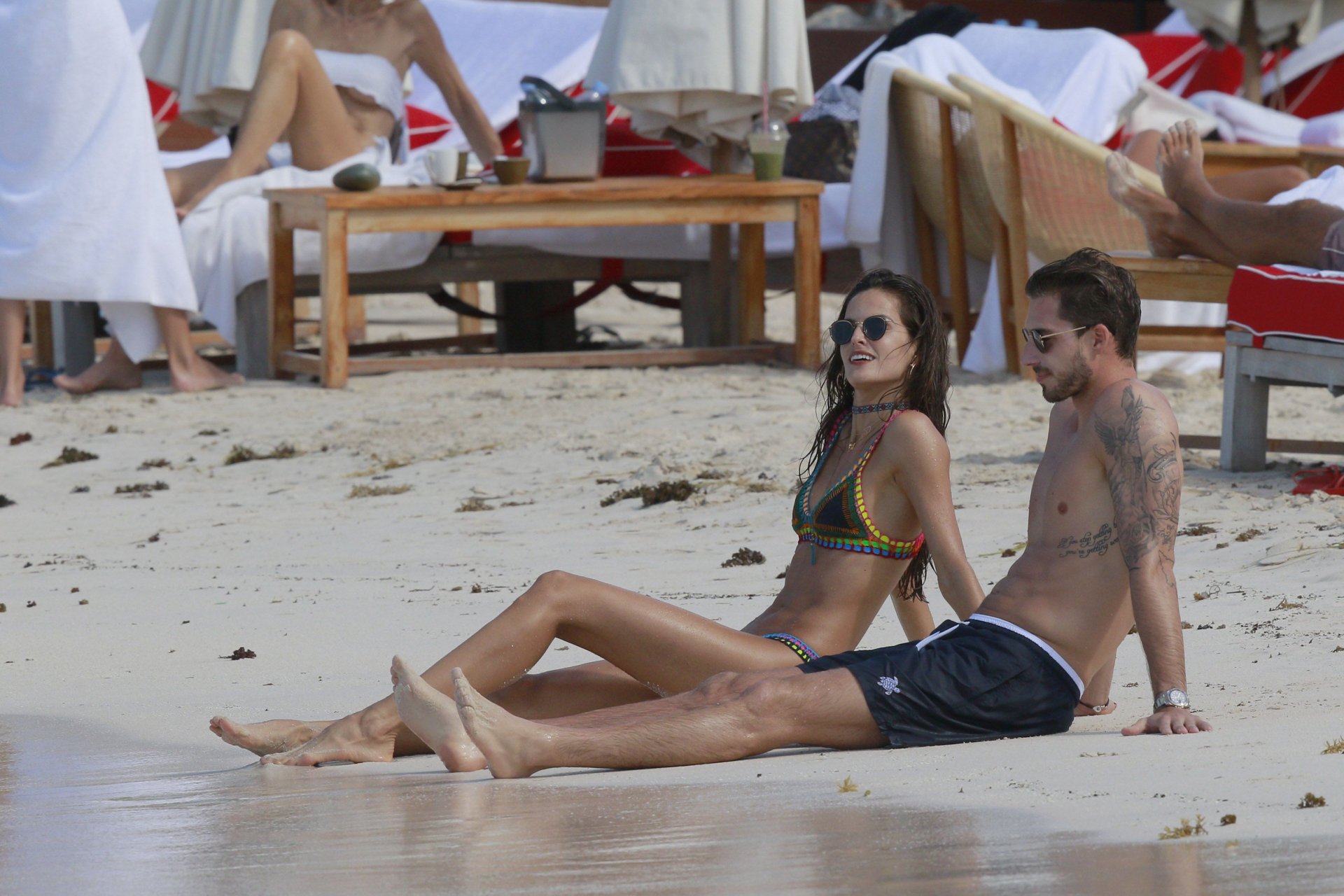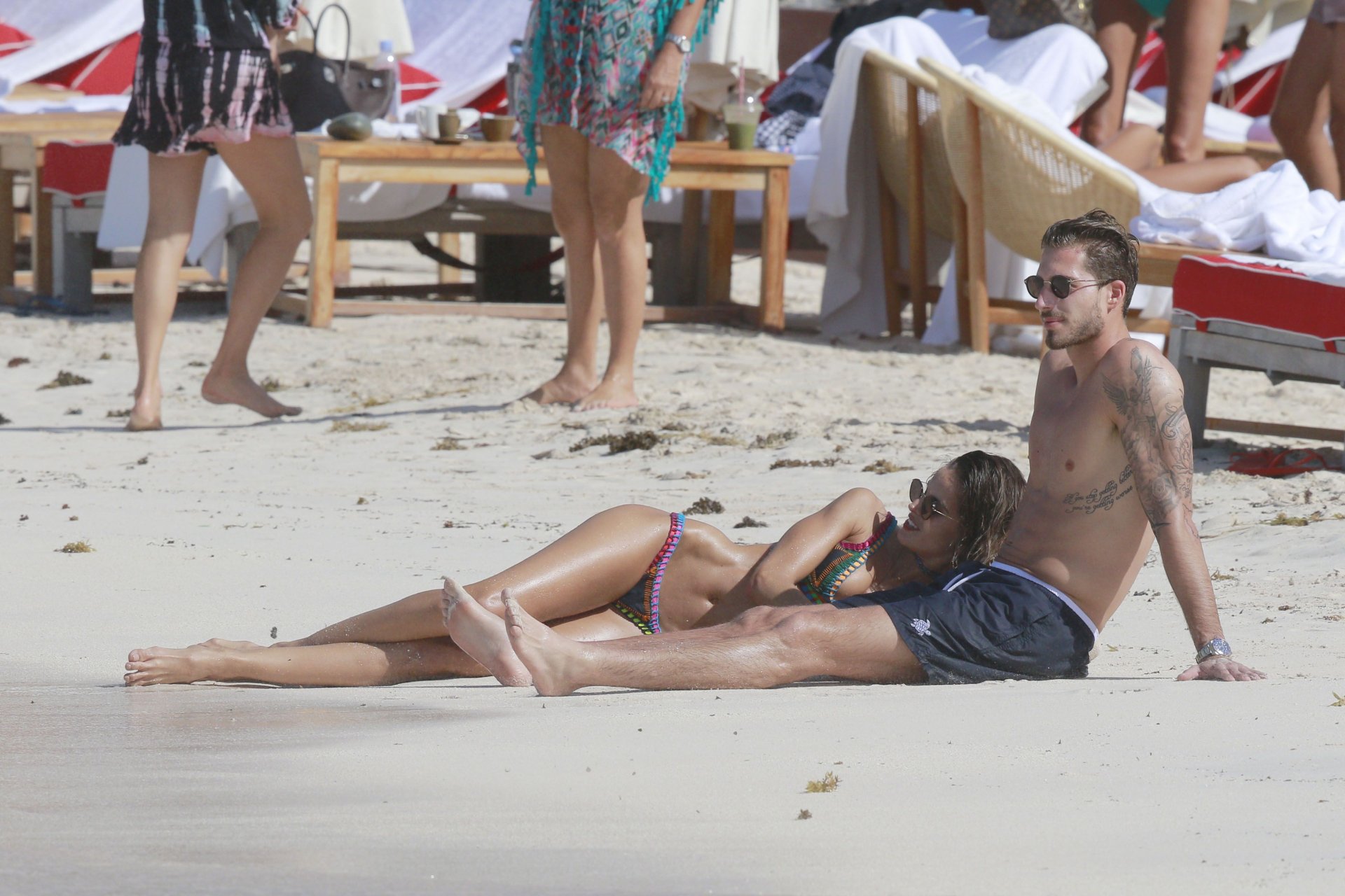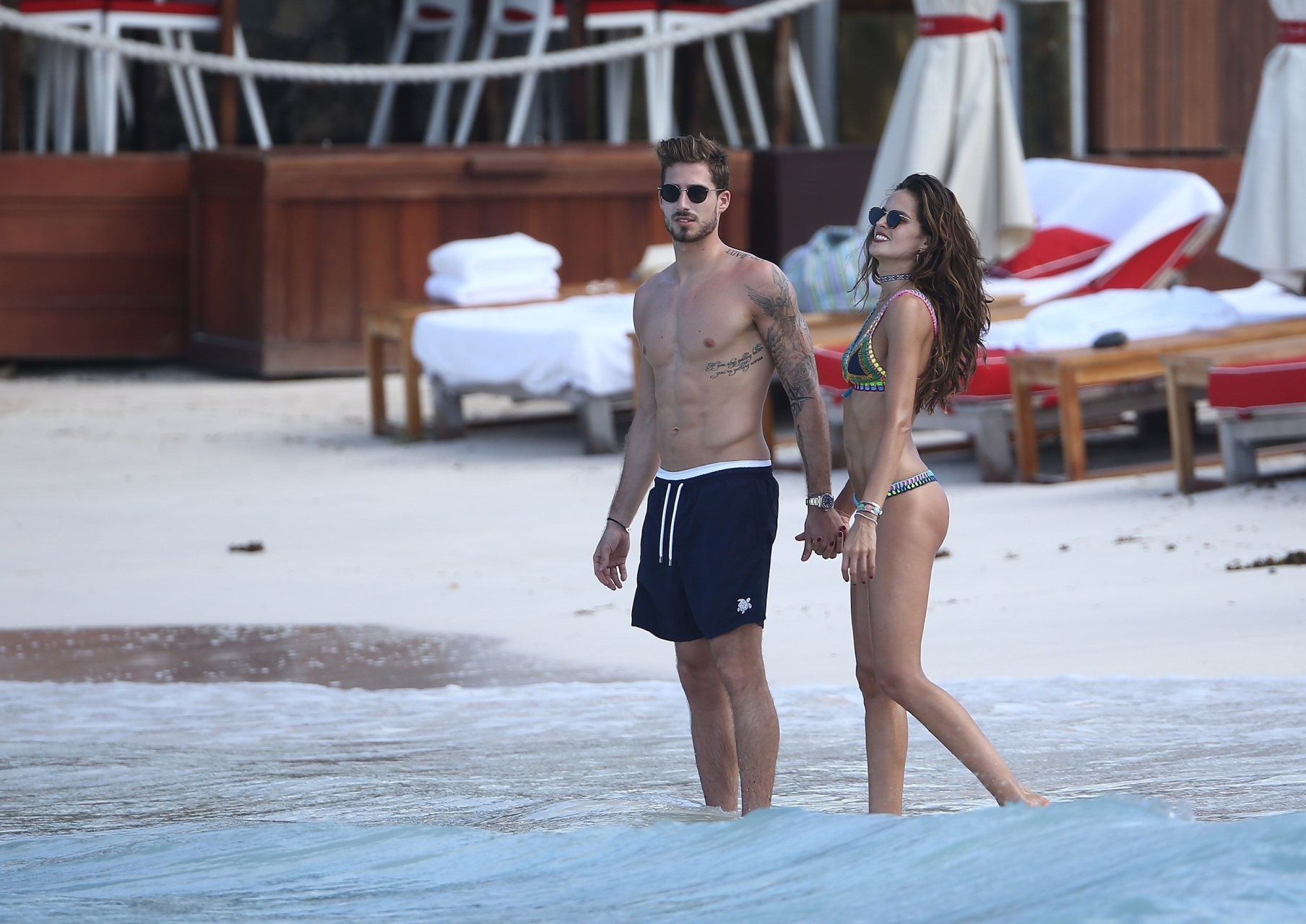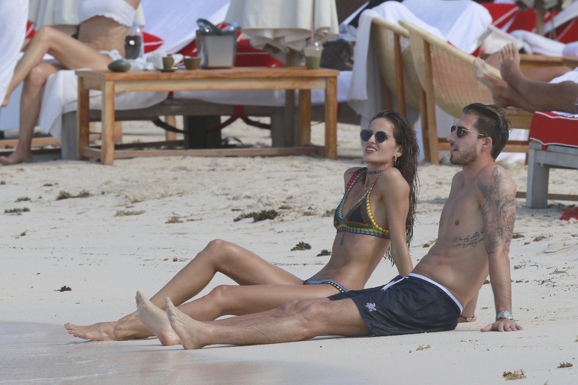 Izabel Goulart exibe seu corpo esguio em um biquíni fio dental com o namorado na praia em St. Barts, 25/12/2016. Izabel Goulart é uma modelo brasileira. Idade: 32 (23 de outubro de 1984). Altura: 177 cm.
