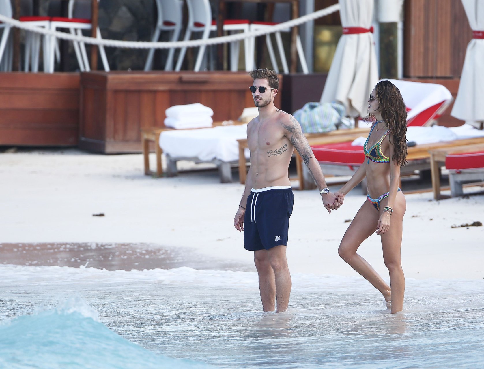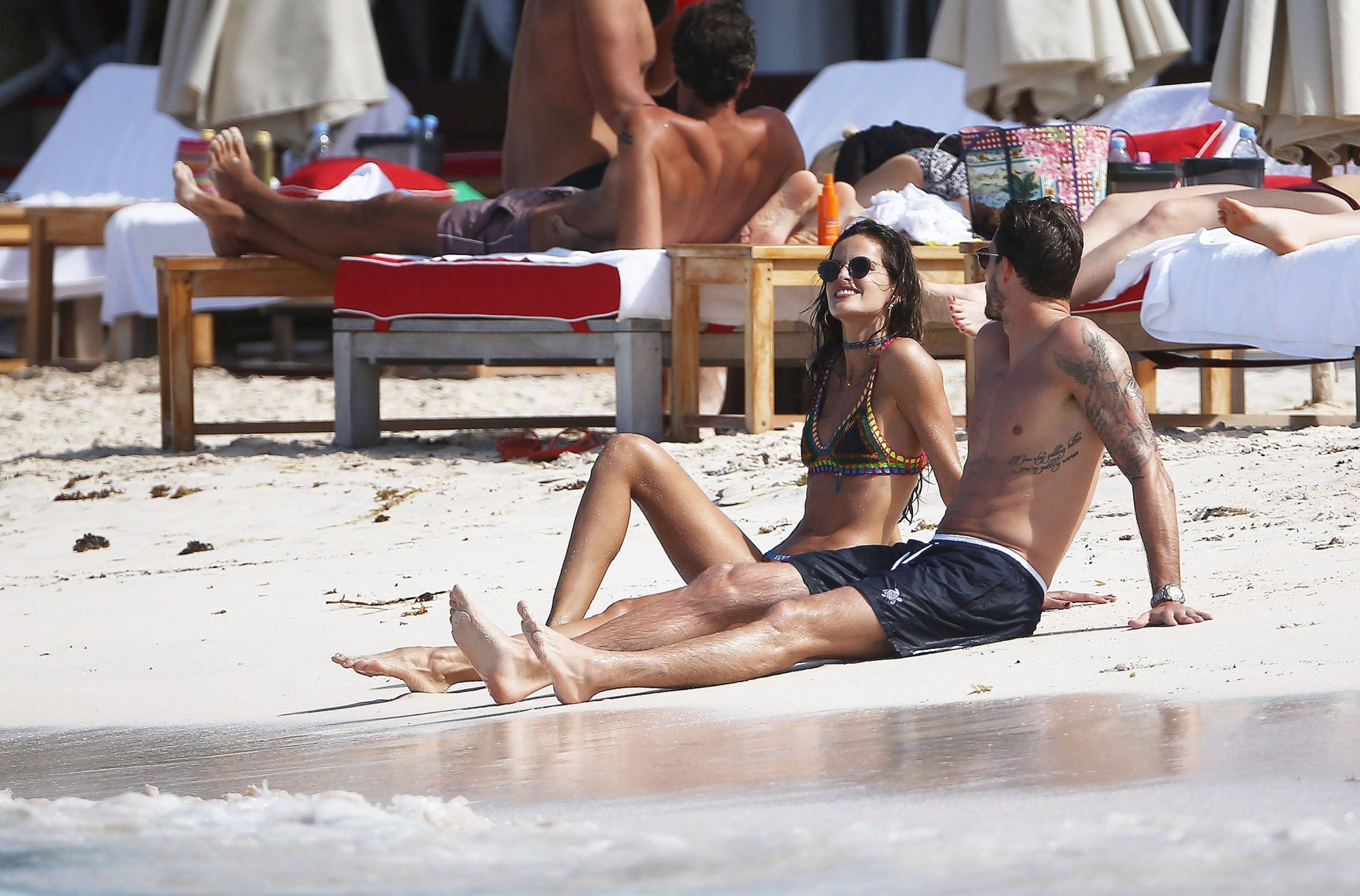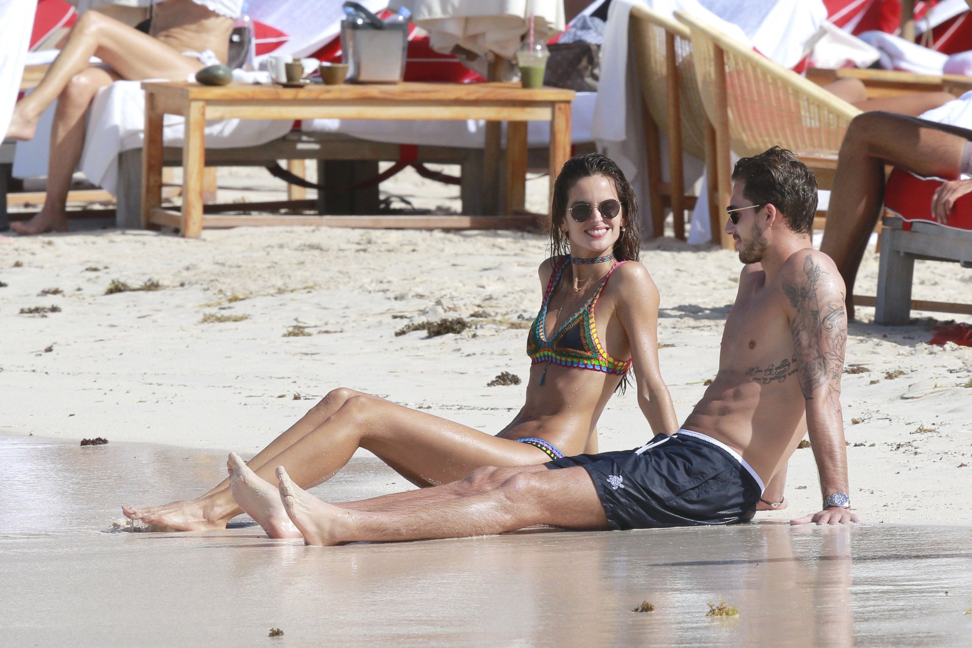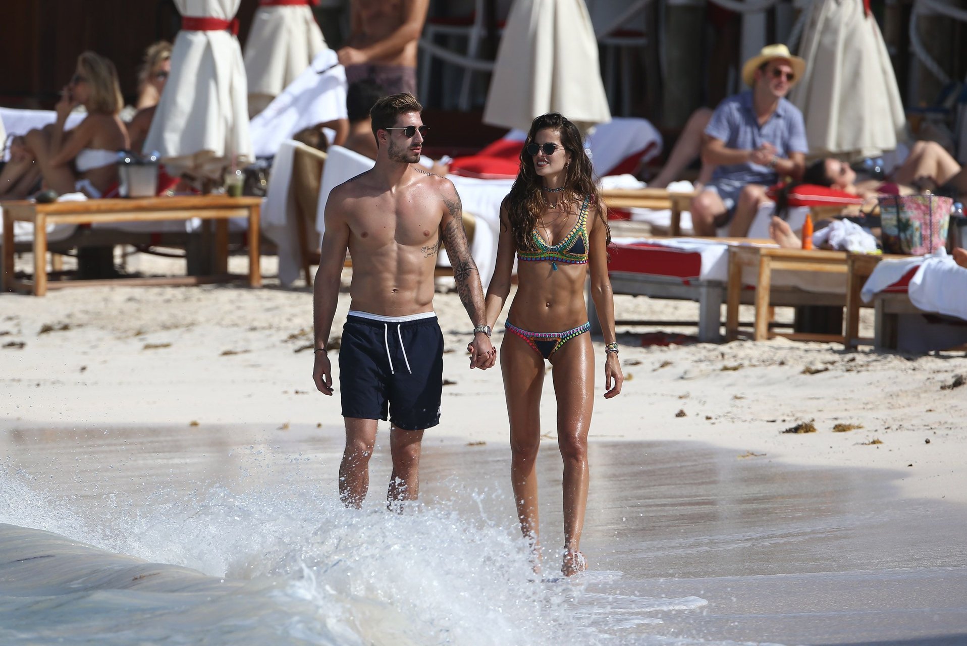 Izabel Goulart exibe seu corpo esguio em um biquíni fio dental com o namorado na praia em St. Barts, 25/12/2016. Izabel Goulart é uma modelo brasileira. Idade: 32 (23 de outubro de 1984). Altura: 177 cm.