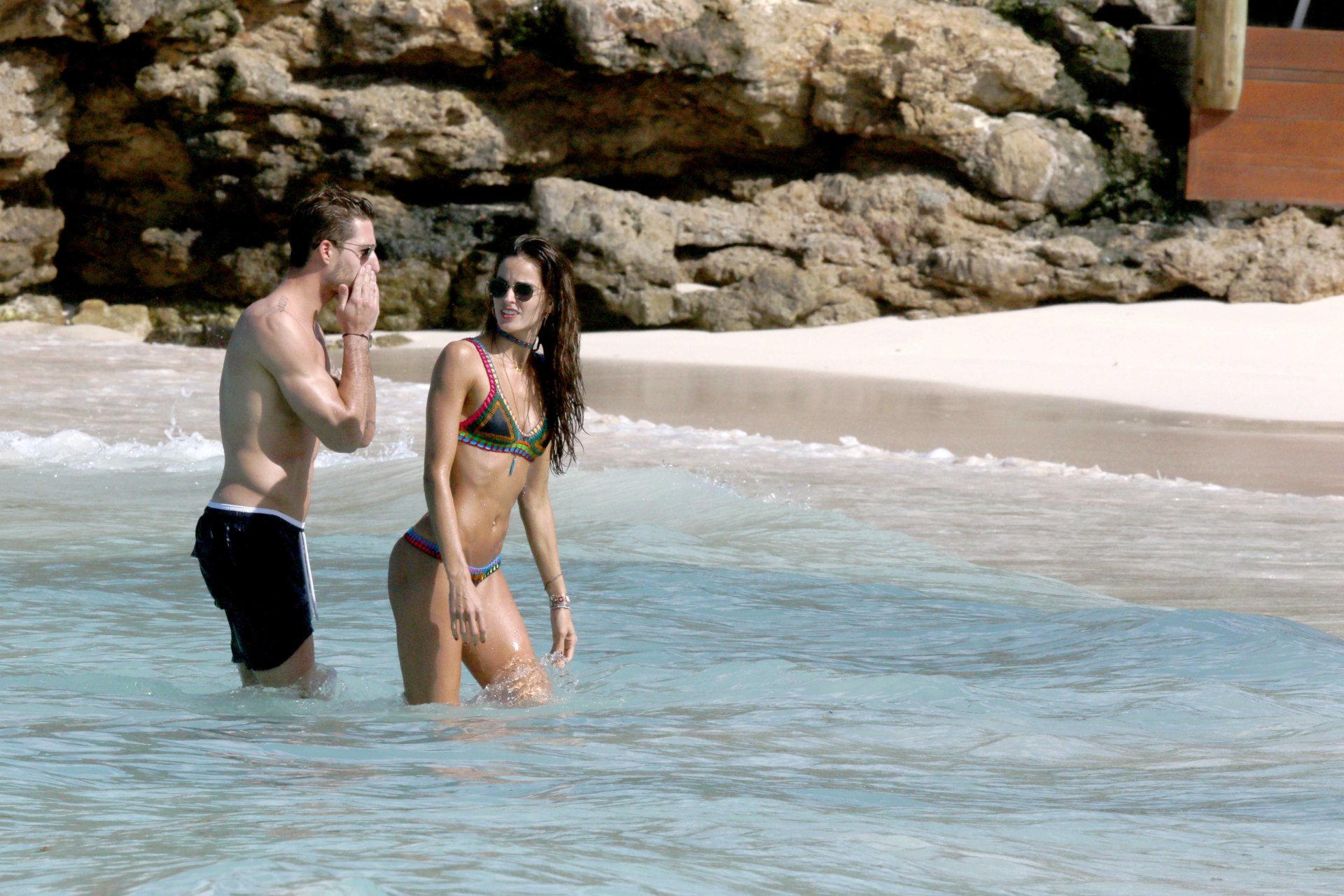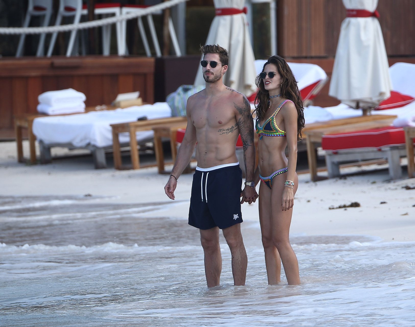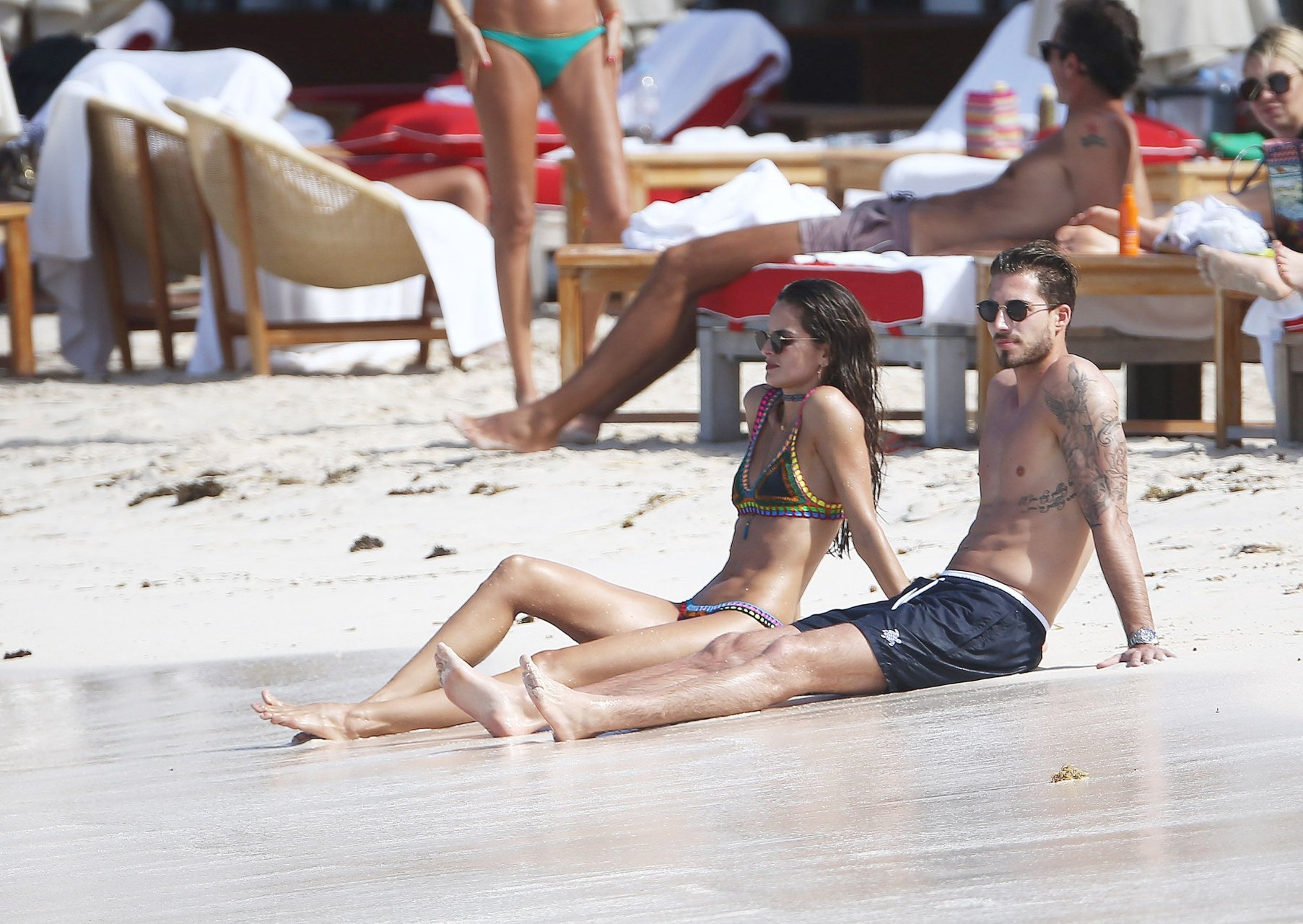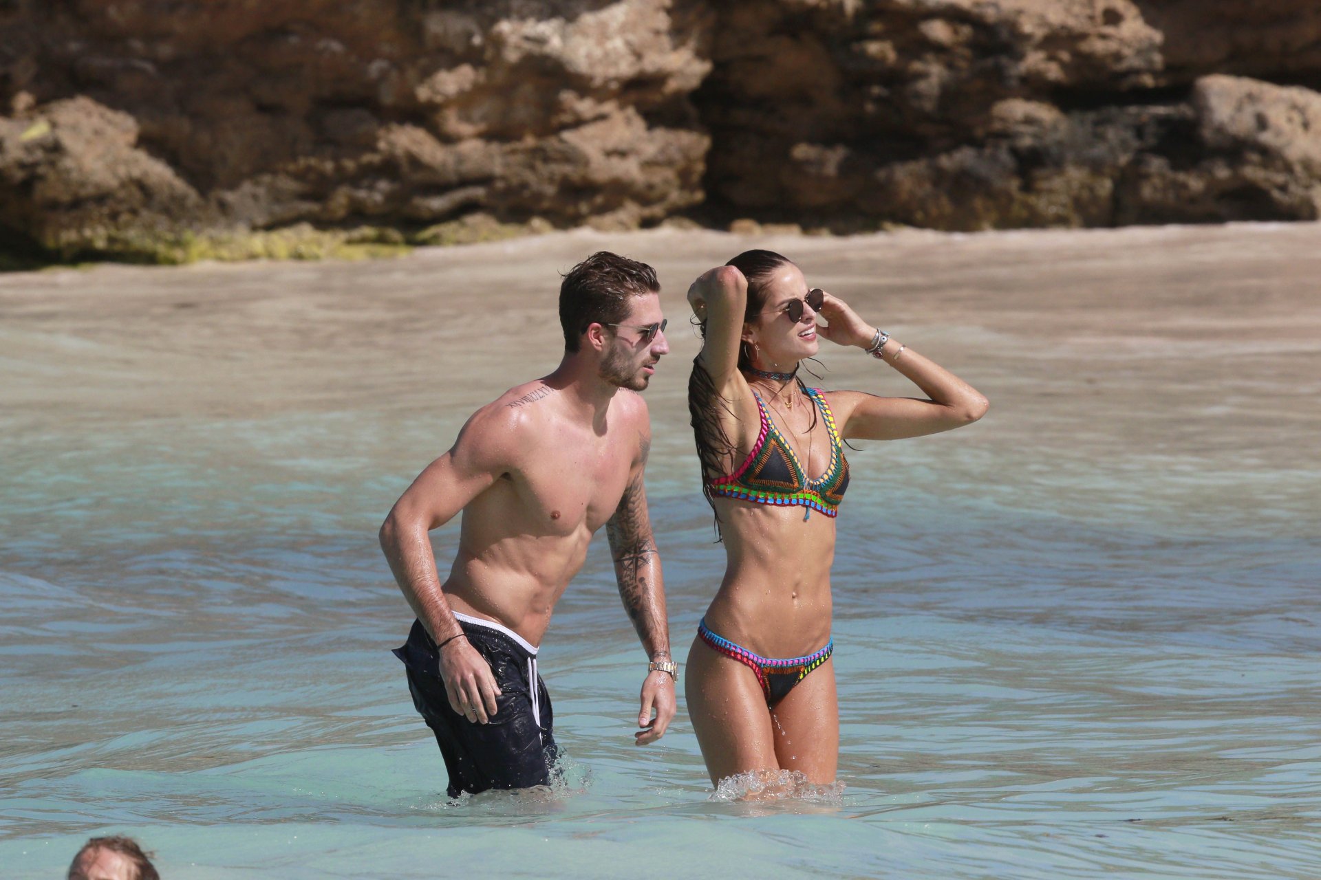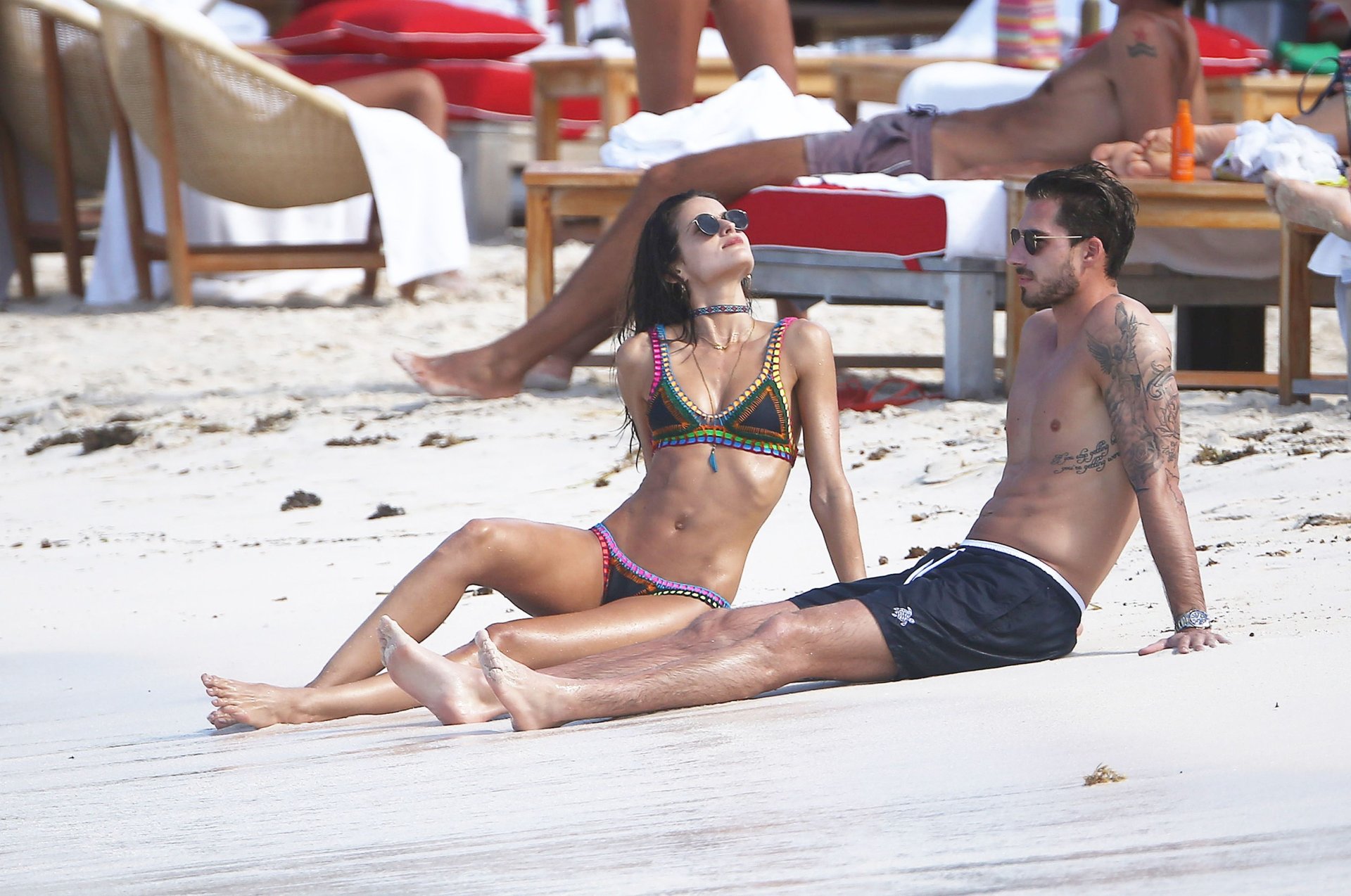 Izabel Goulart exibe seu corpo esguio em um biquíni fio dental com o namorado na praia em St. Barts, 25/12/2016. Izabel Goulart é uma modelo brasileira. Idade: 32 (23 de outubro de 1984). Altura: 177 cm.