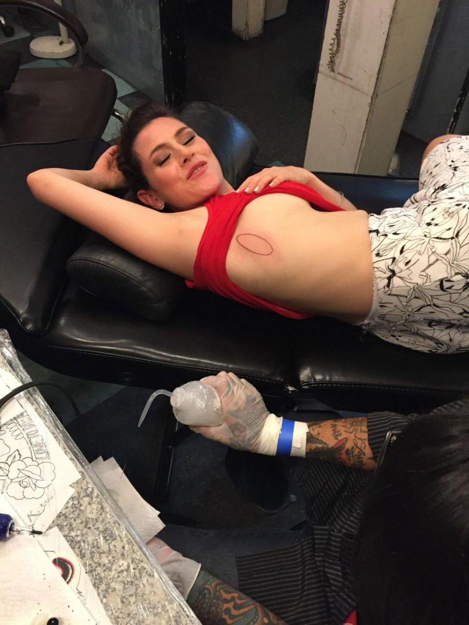 Aquela foto dela em pé, sem camisa, é na verdade Diane Guerrero. Muito legal! Faça uma pesquisa online e você vai perceber. Mesmo piercing no umbigo, mesmos ombros e braços, mesma tatuagem no braço