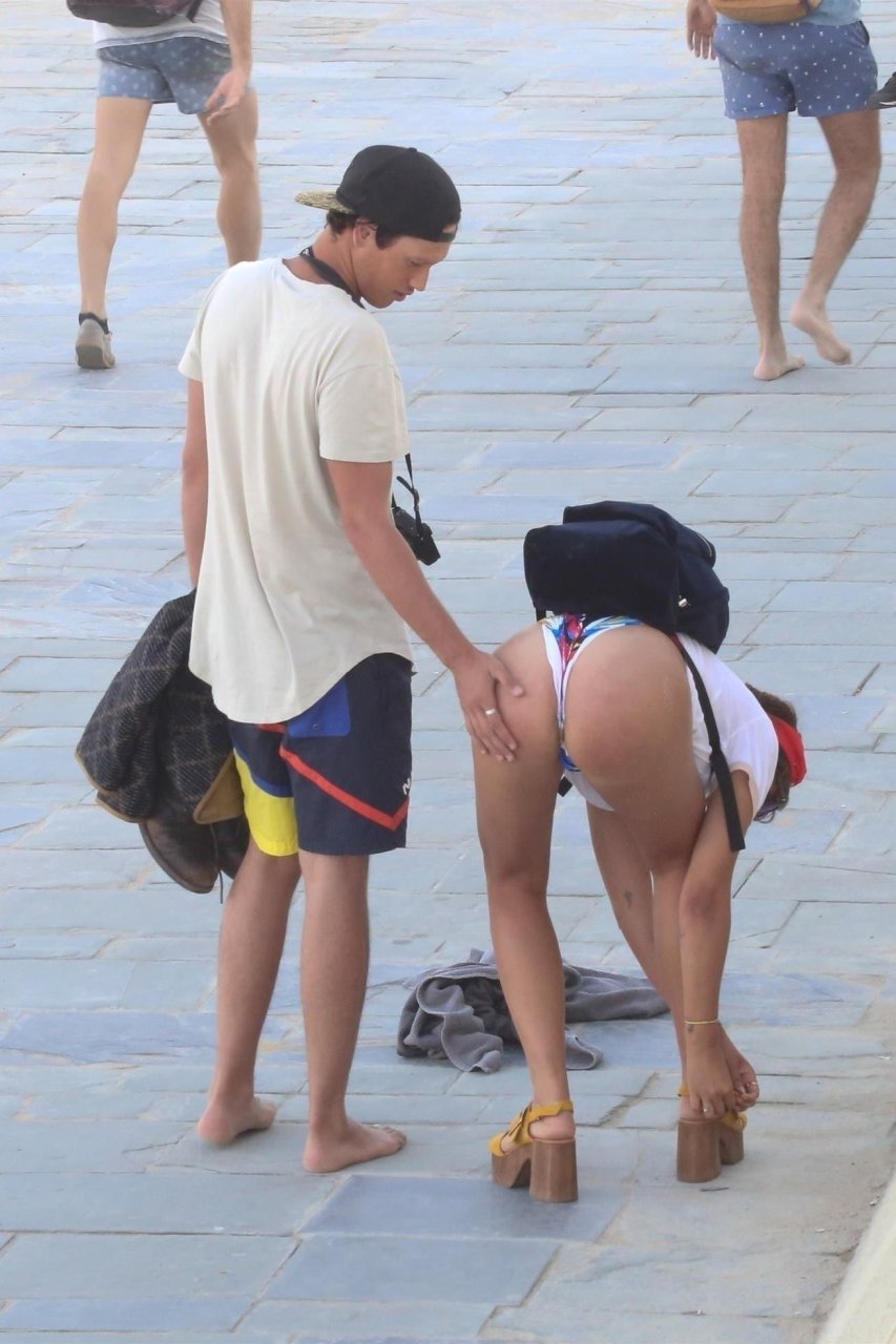 Eu acho que ela é atraente, mas não desta vez, não é uma boa escolha este maiô, seus seios estão expostos por estarem flácidos, e sua bunda não é para fio dental, muita celulite.