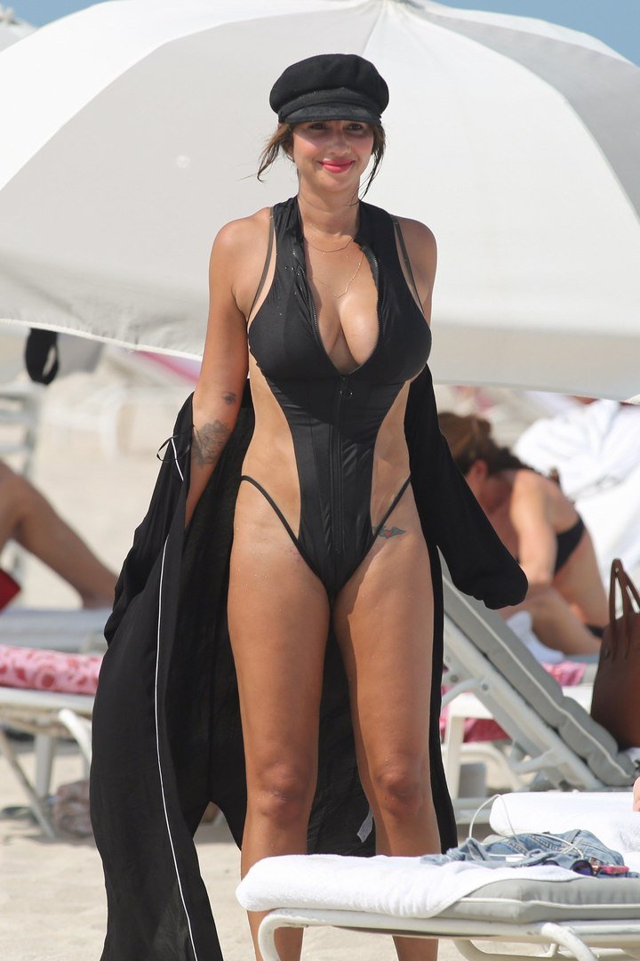 Jackie Cruz usa um monokini preto na praia em Miami, 27/04/2017. Jackie Cruz é uma atriz, musicista e modelo dominicana-americana. Idade – 30 anos (nascida em 8 de agosto de 1986).