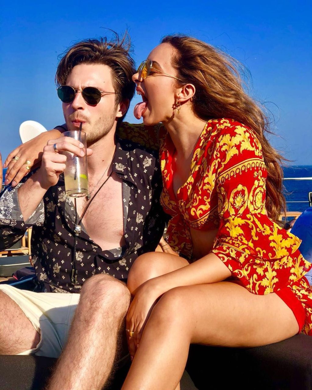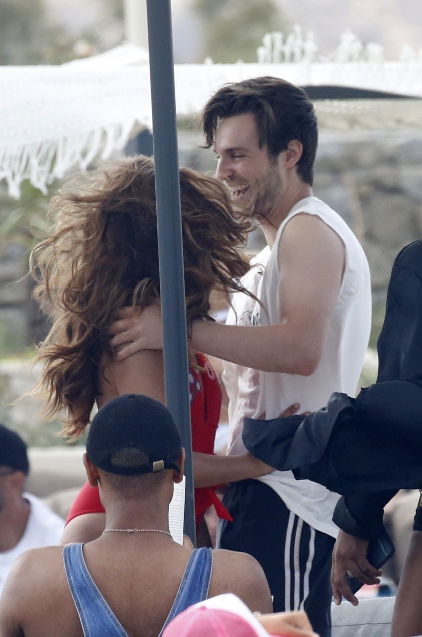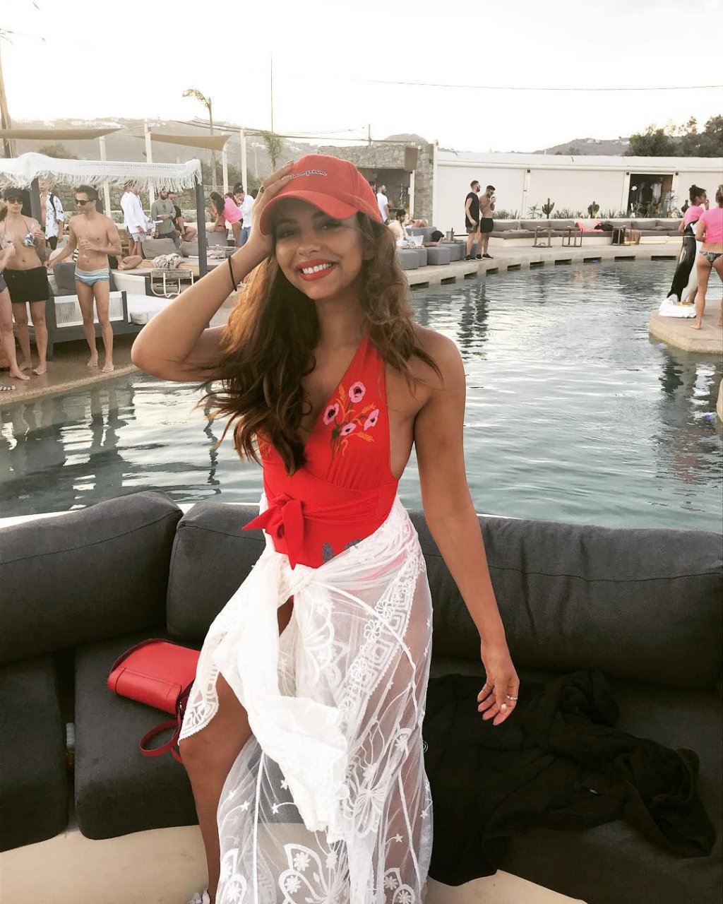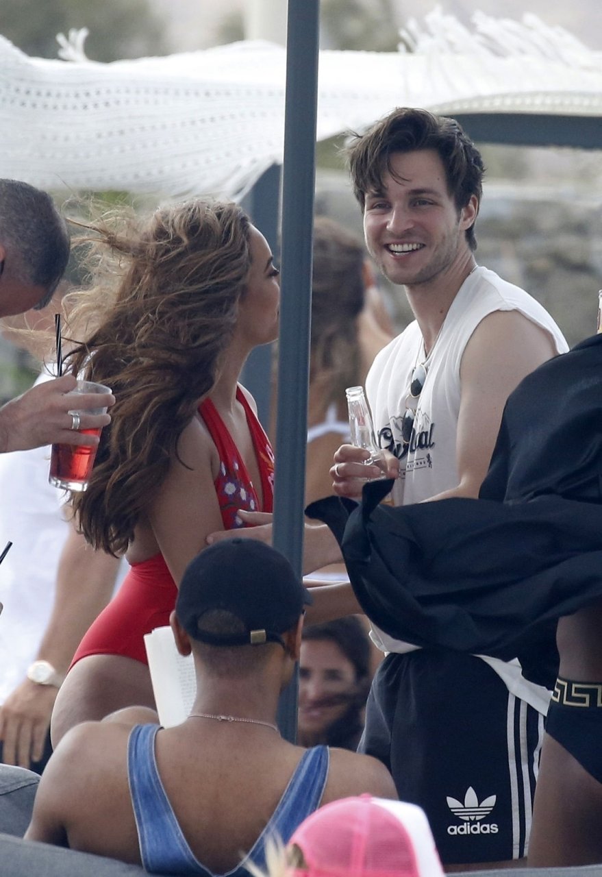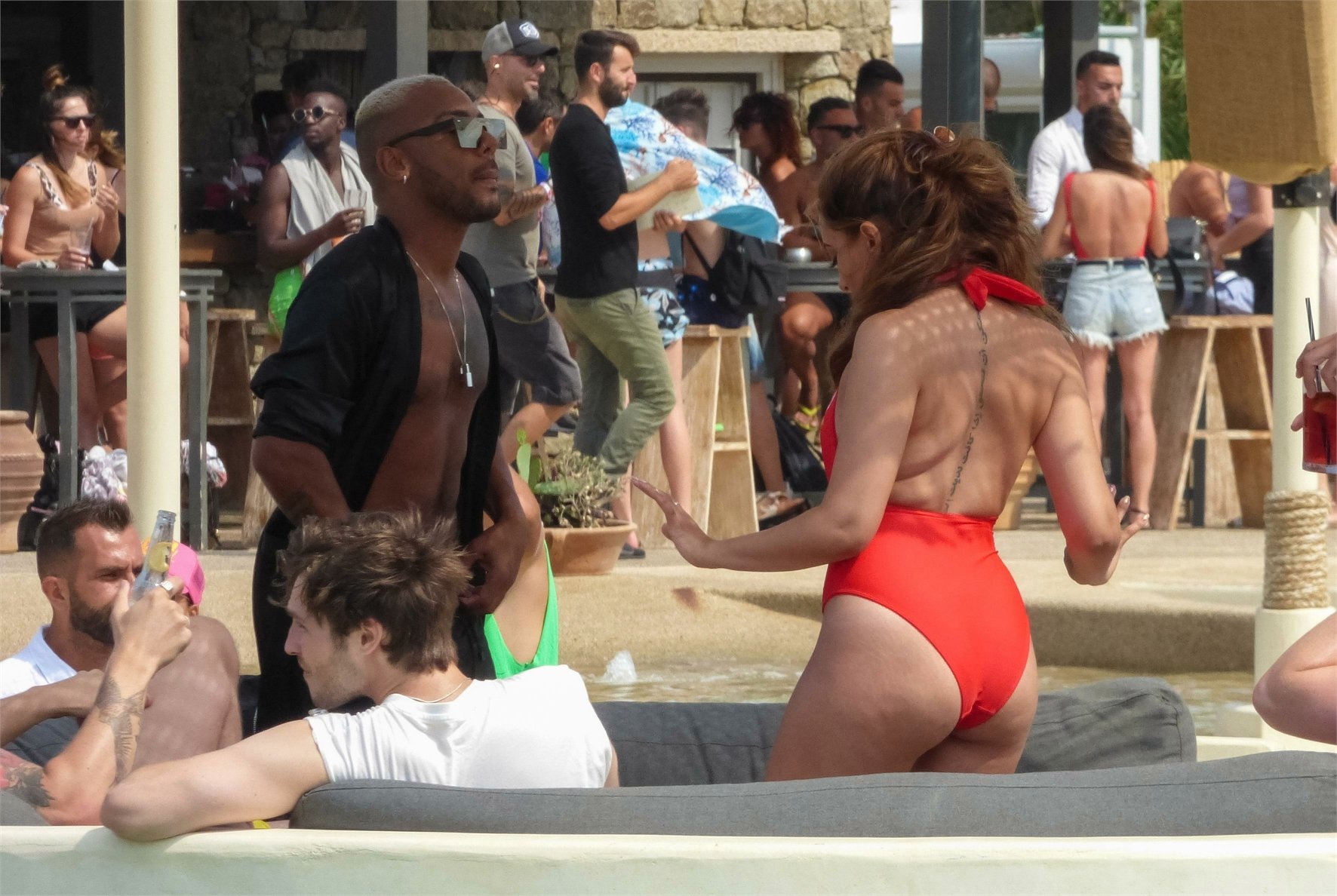 Curvilínea Jade Thirlwall foi vista com um maiô vermelho enquanto ia a um bar de praia com seu namorado Jed Elliott em Mykonos, Grécia, 04/08/2018. Jade Amelia Thirlwall é uma cantora britânica de 25 anos (Little Mix), dançarina e estrela de TV.