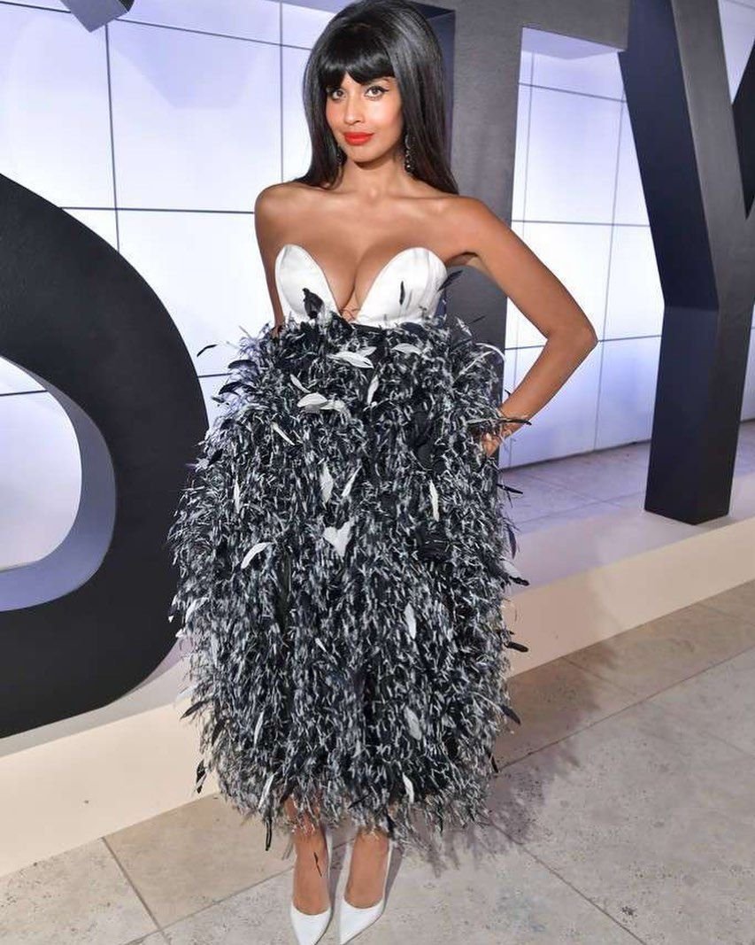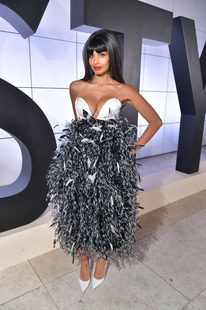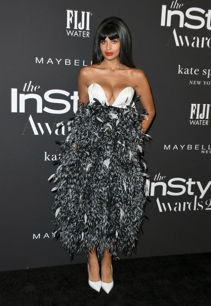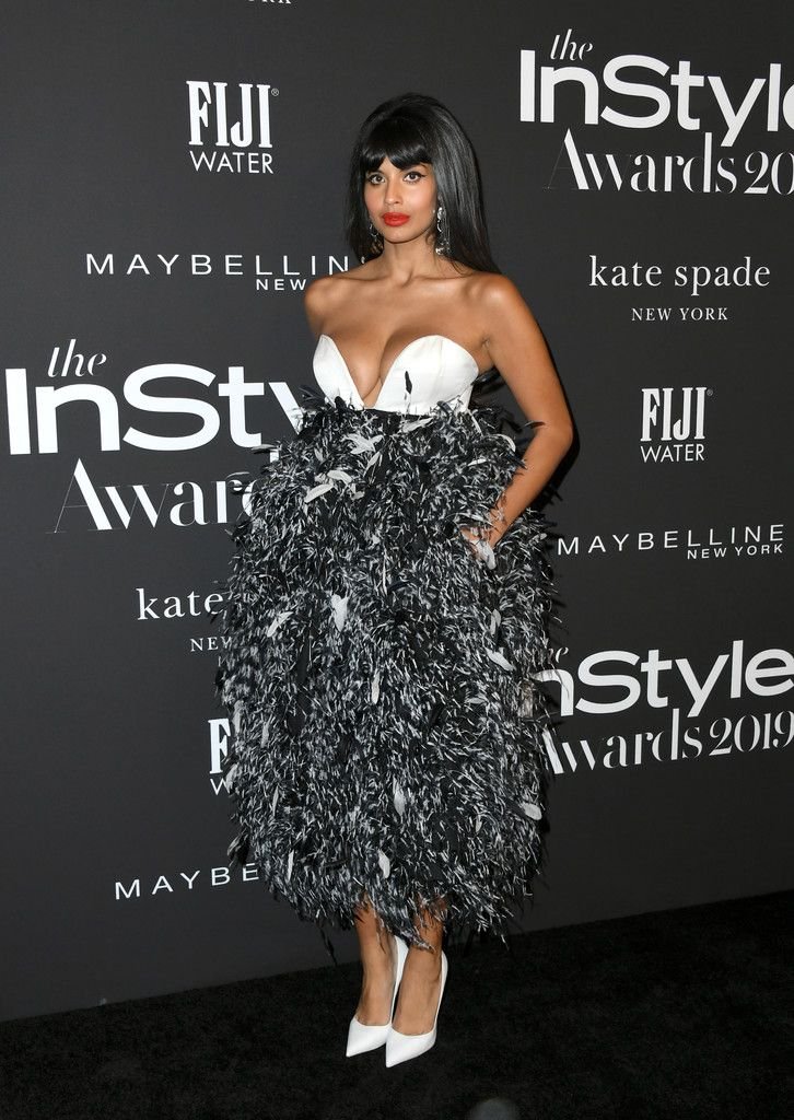 A atriz inglesa Jameela Jamil exibiu seu decote no 5º Prêmio Anual InStyle em Los Angeles, 21/10/19.