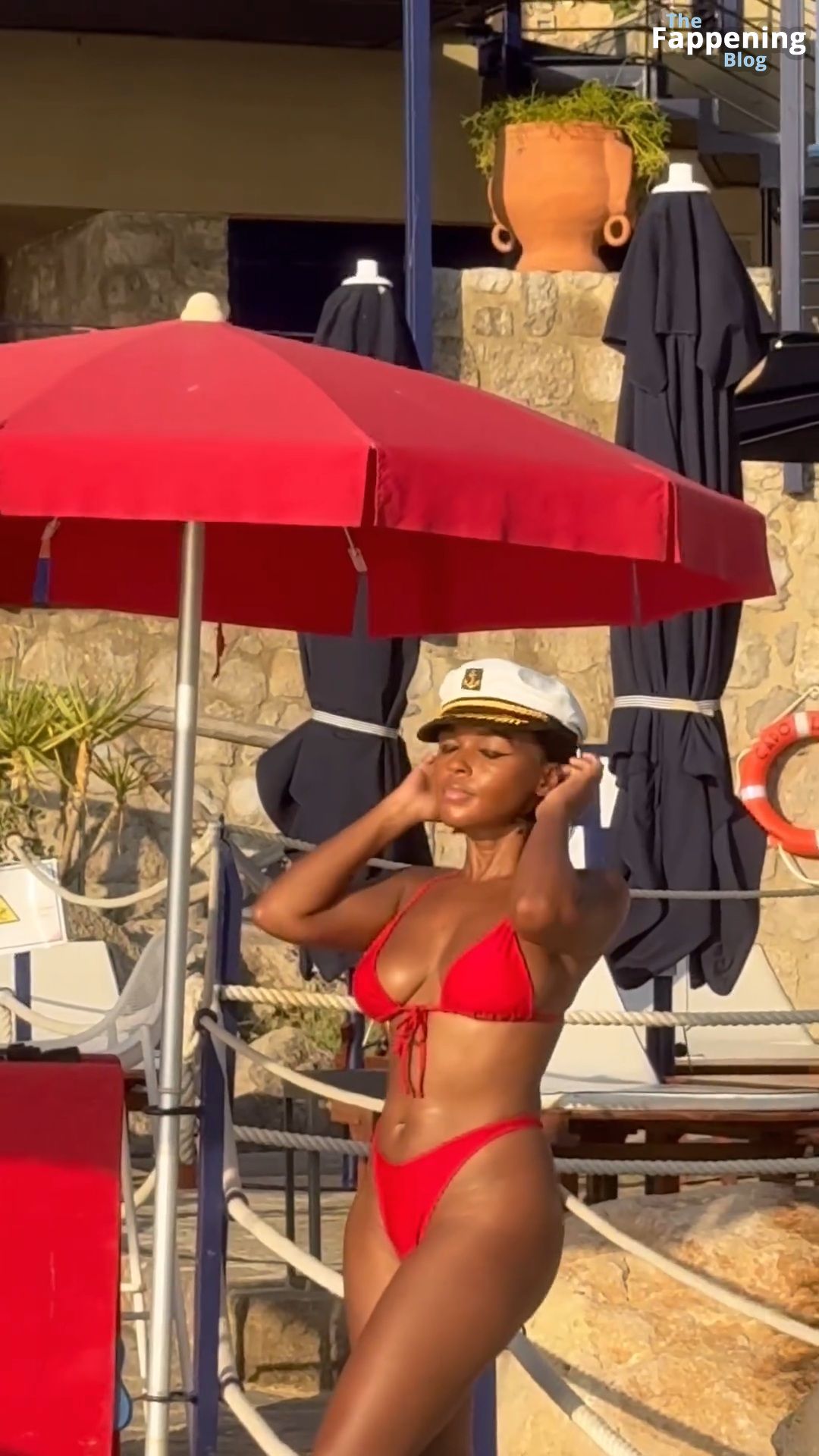 Nesse biquíni vermelho revelador que destaca perfeitamente suas curvas, ela parece uma verdadeira rainha. Em uma das fotos, ela está sentada elegantemente no convés do iate, enrolando a cabeça com um lenço de seda — parece cena de Hollywood clássico. E em outras fotos, Janelle aparece com um chapéu de capitã, olhando para o horizonte com binóculos, como se estivesse em busca de novas vibrações e inspiração para seus próximos passos.