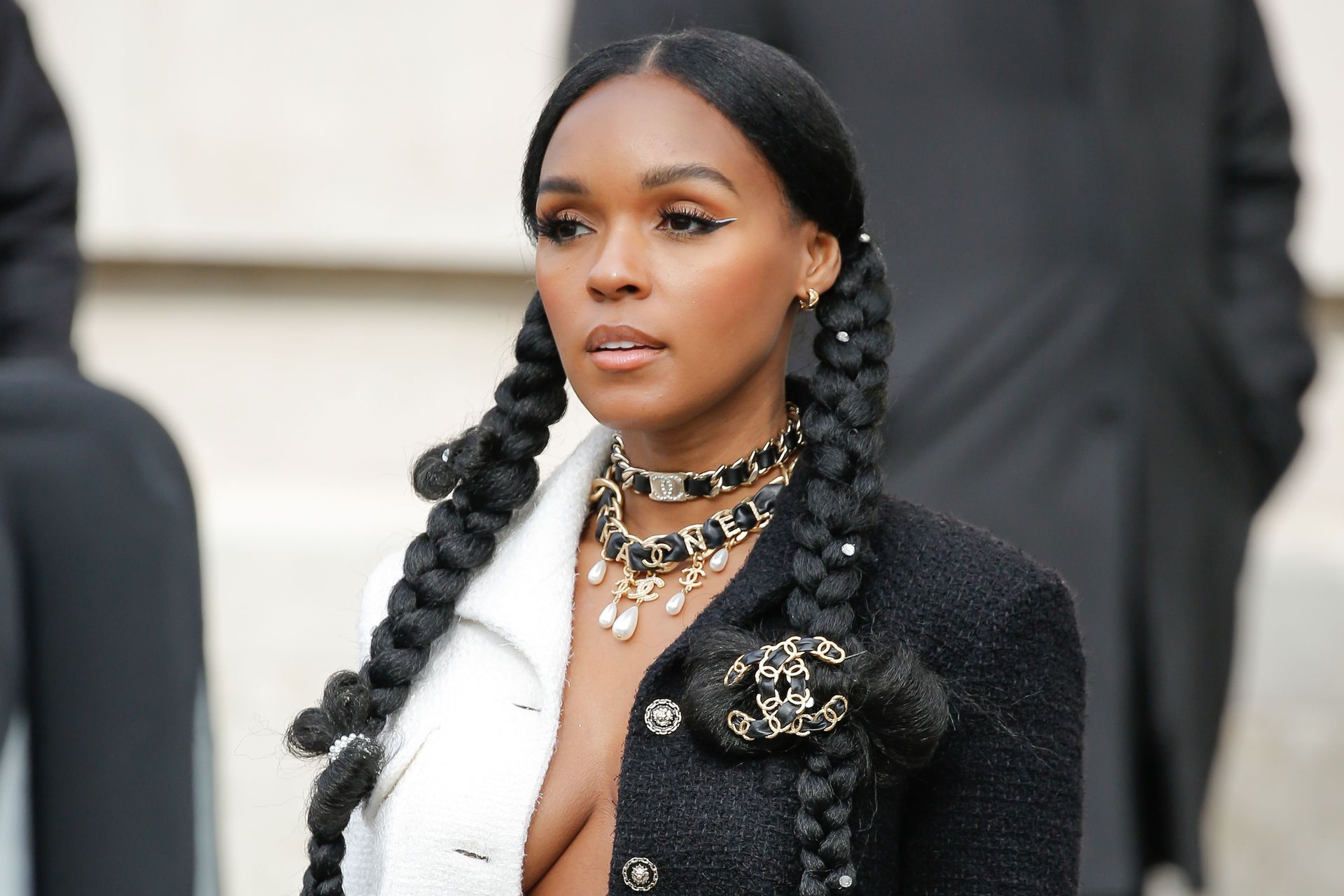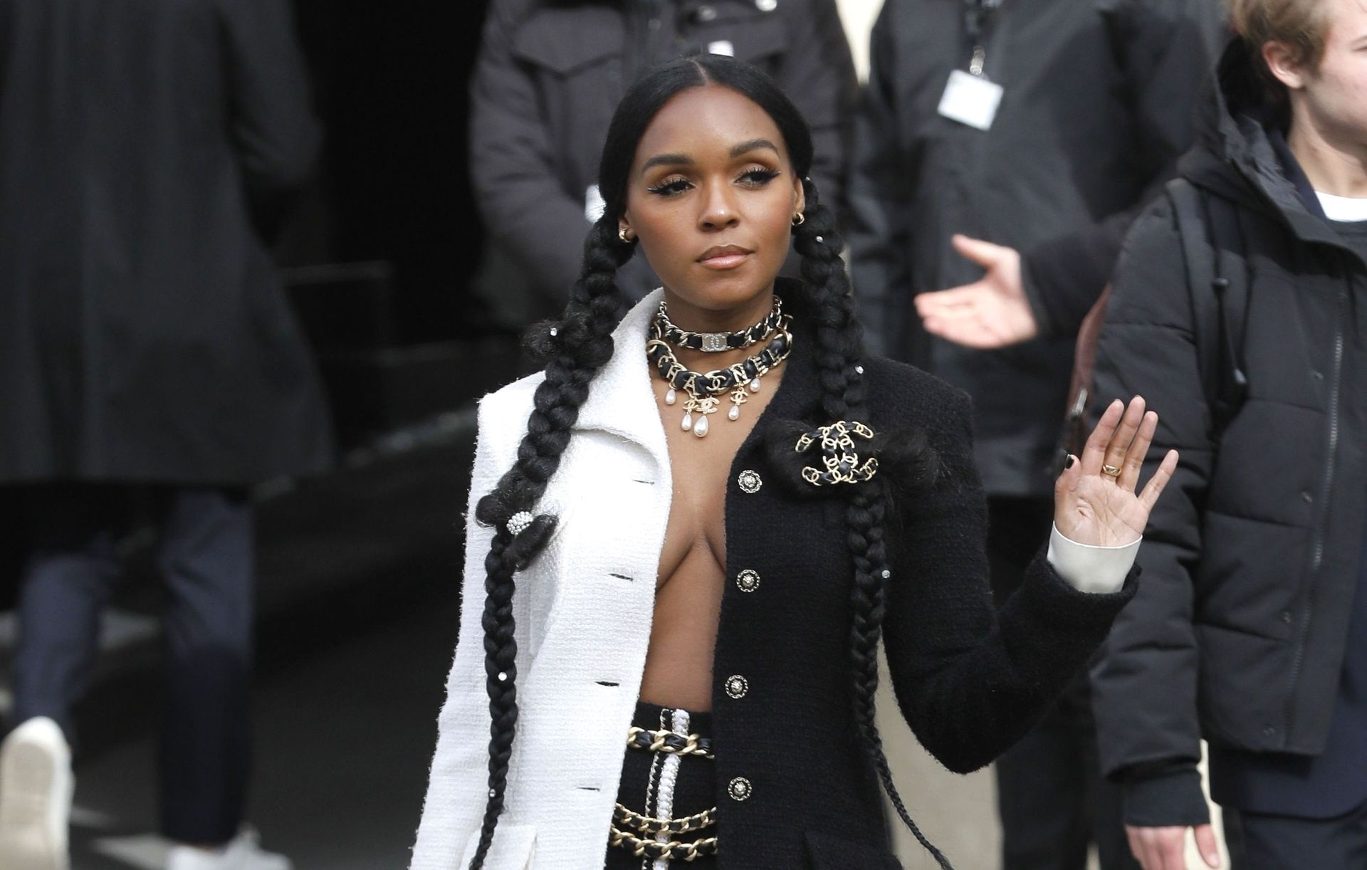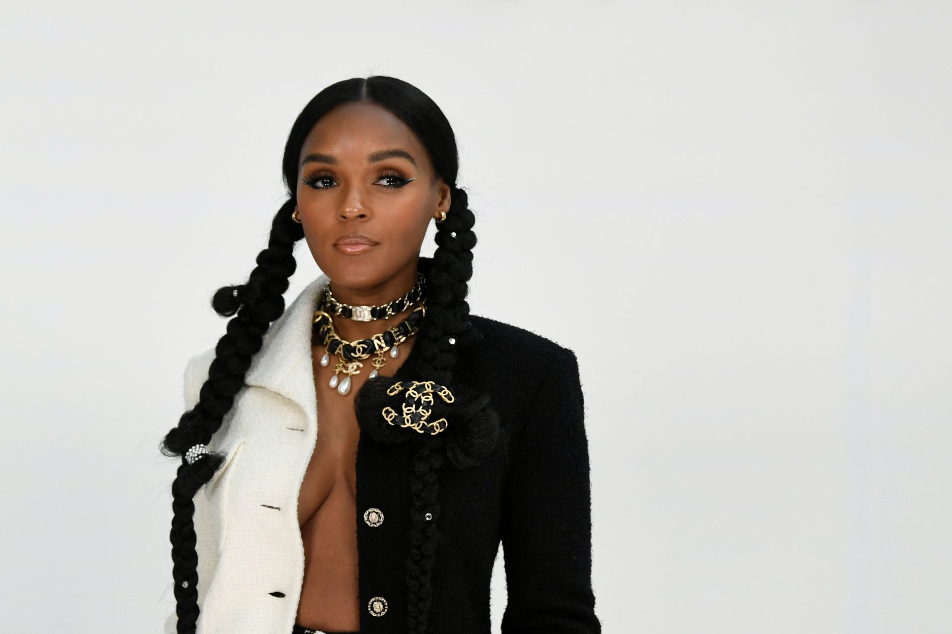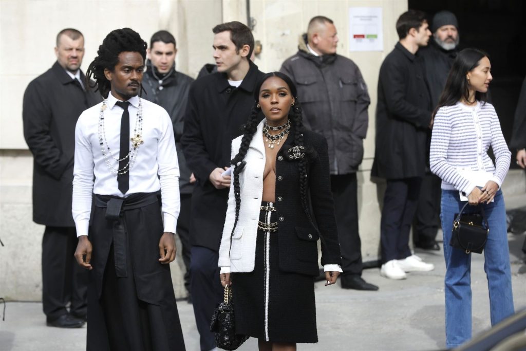 Cantora Janelle Monae foi fotografada durante o desfile da coleção prêt-à-porter outono/inverno 2020-2021 da Chanel na Semana de Moda de Paris, 03/04/2020.