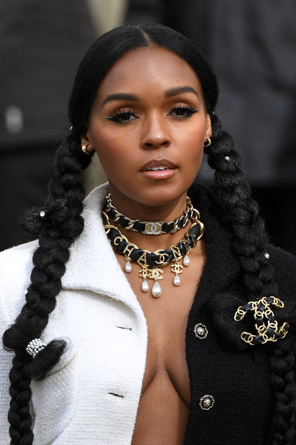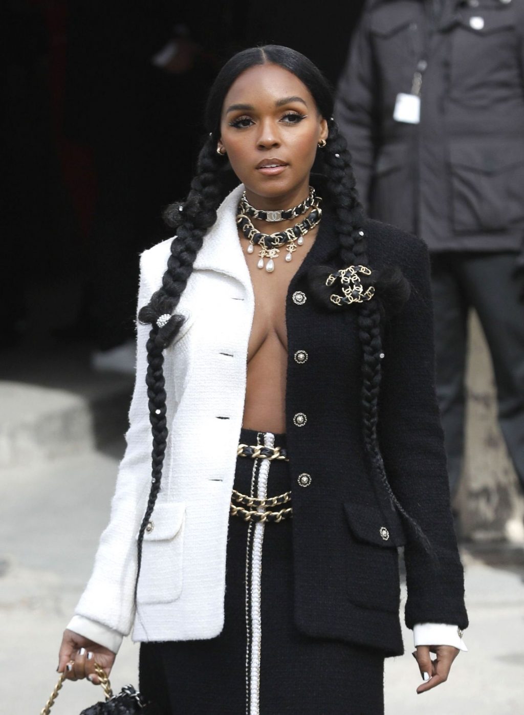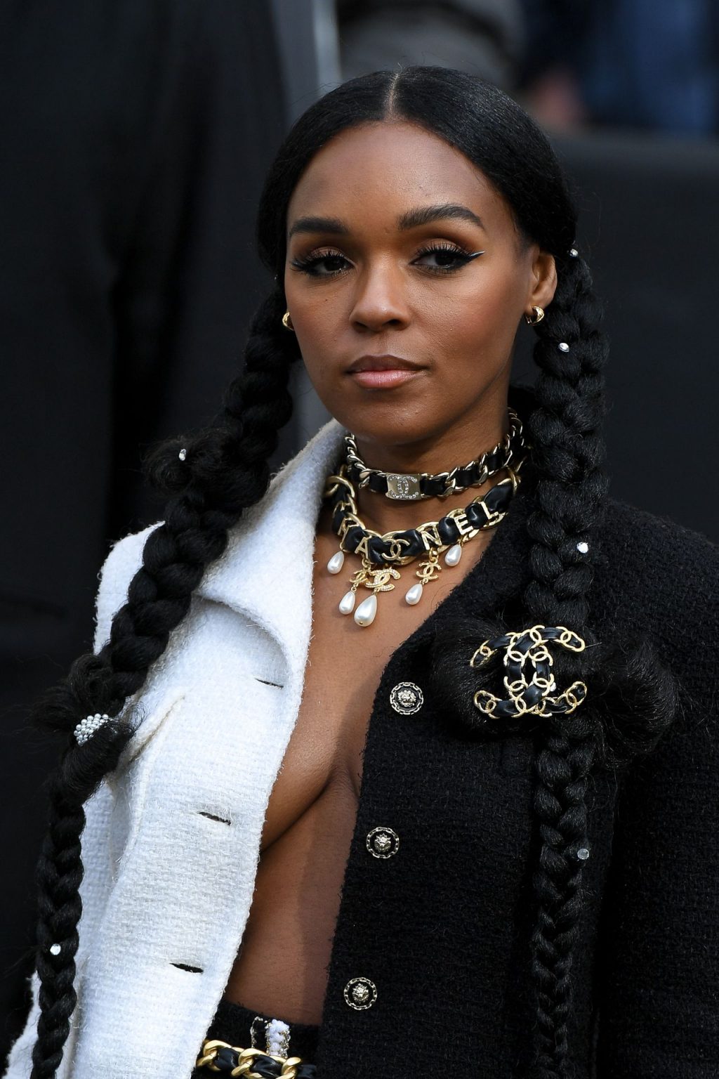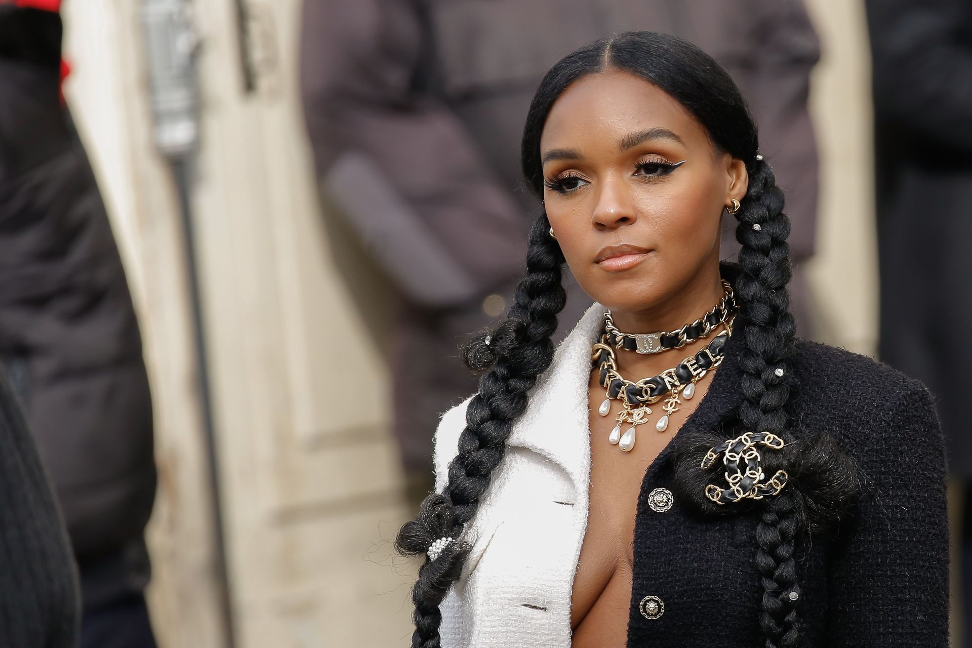 Cantora Janelle Monae foi fotografada durante o desfile da coleção prêt-à-porter outono/inverno 2020-2021 da Chanel na Semana de Moda de Paris, 03/04/2020.