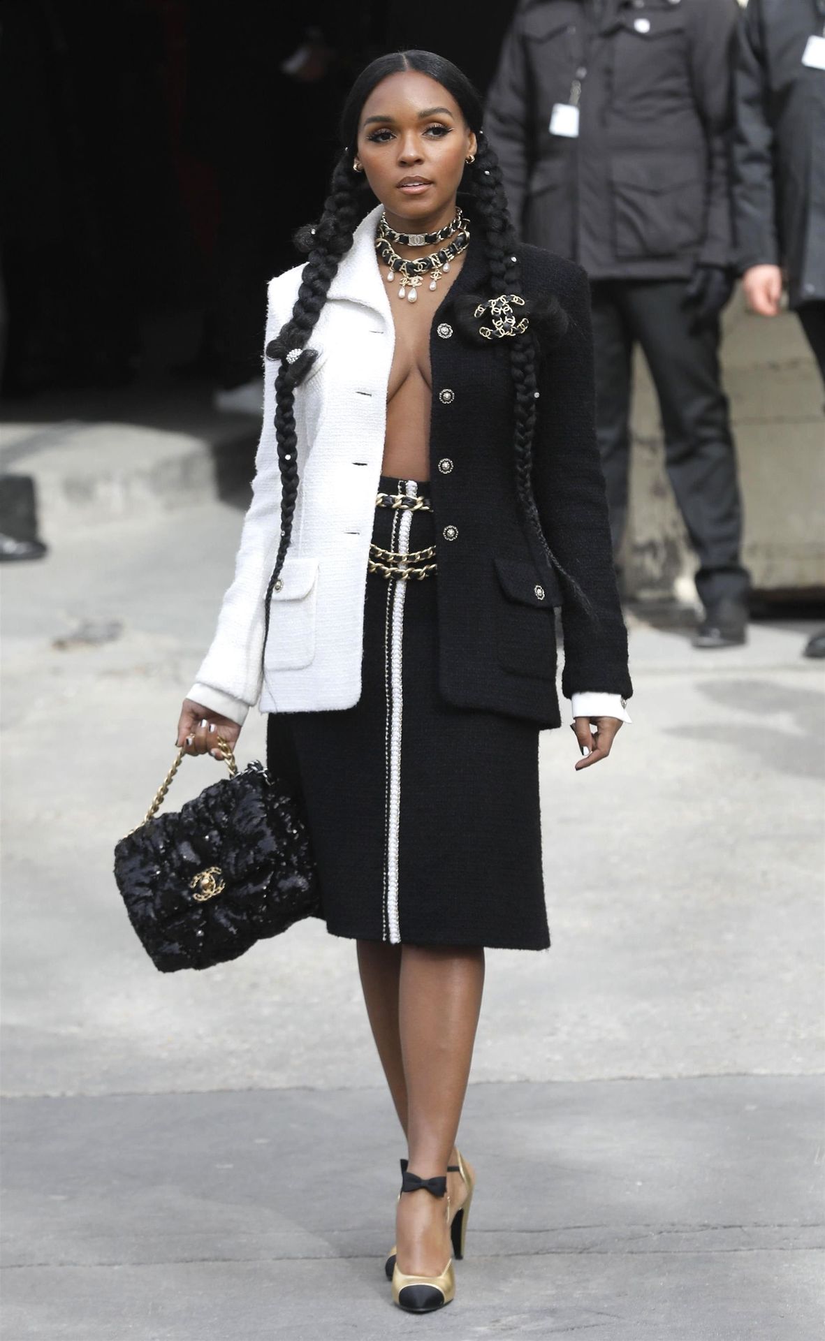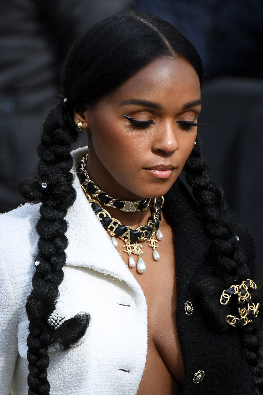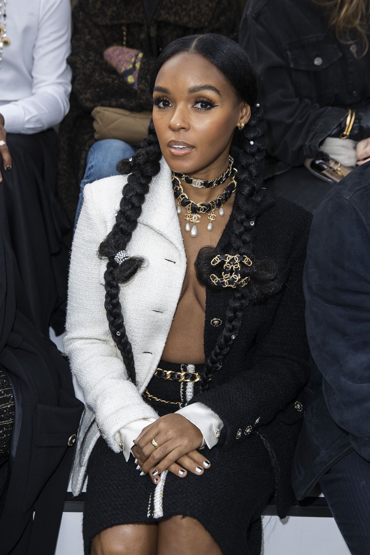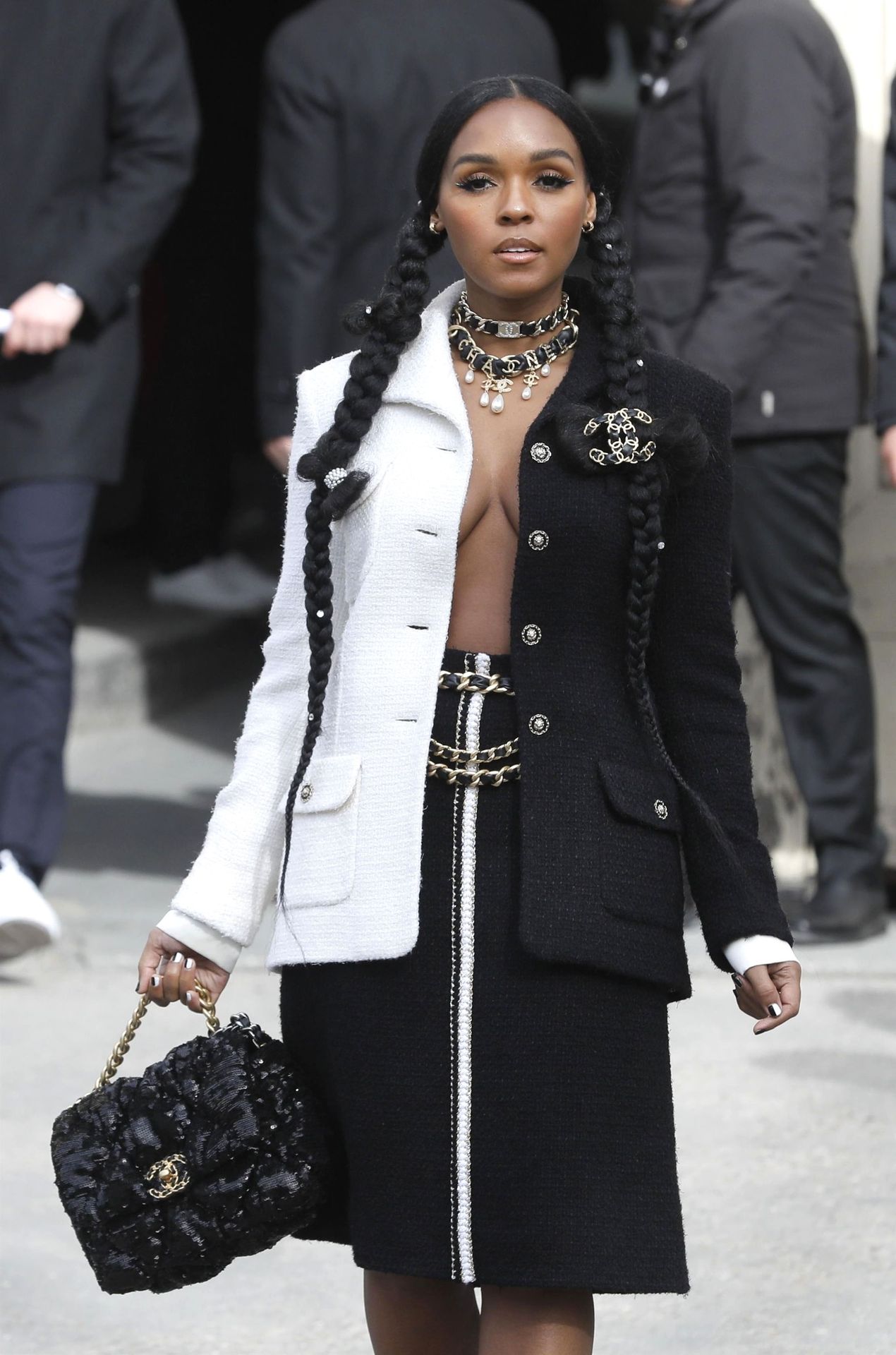 Cantora Janelle Monae foi fotografada durante o desfile da coleção prêt-à-porter outono/inverno 2020-2021 da Chanel na Semana de Moda de Paris, 03/04/2020.