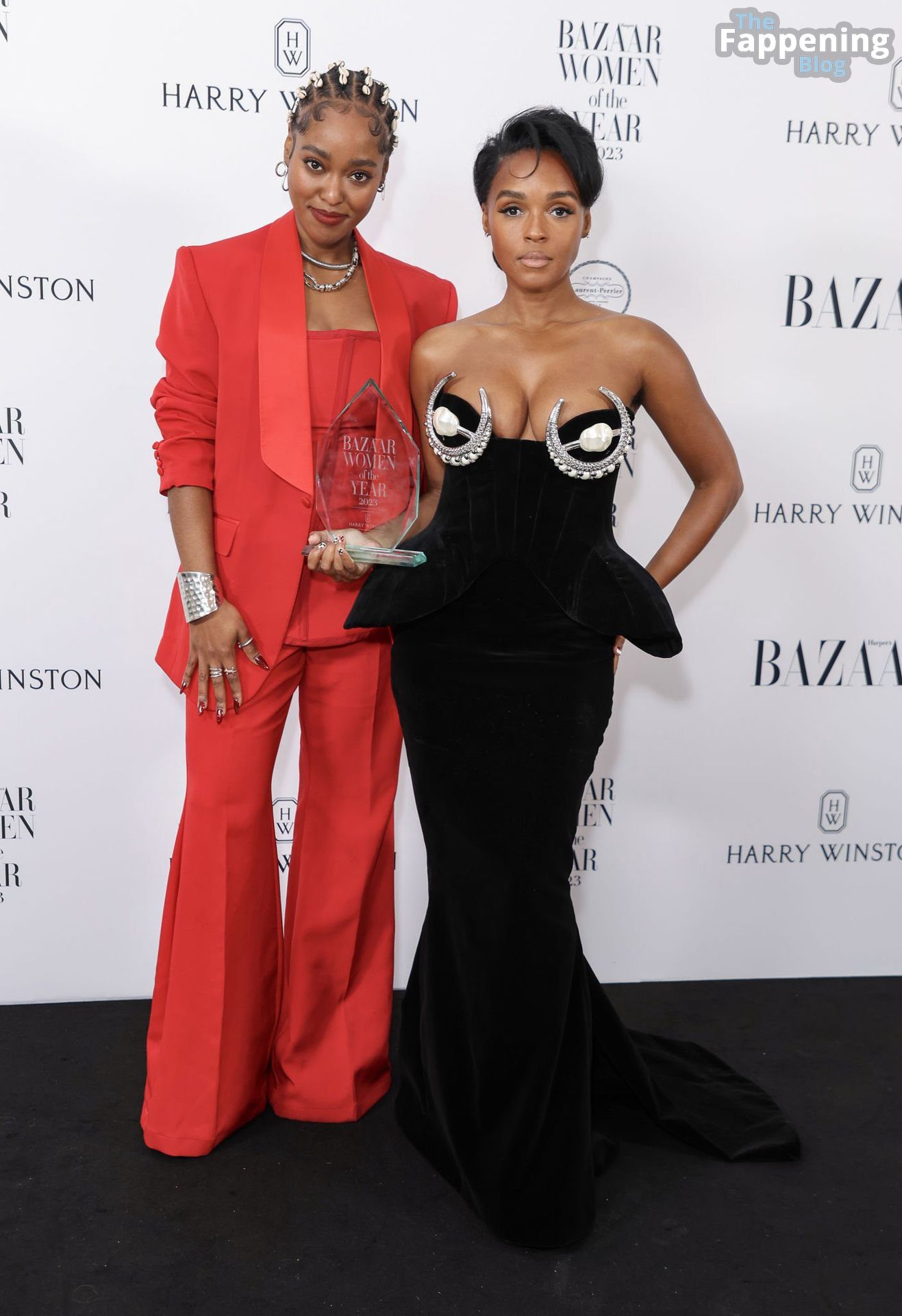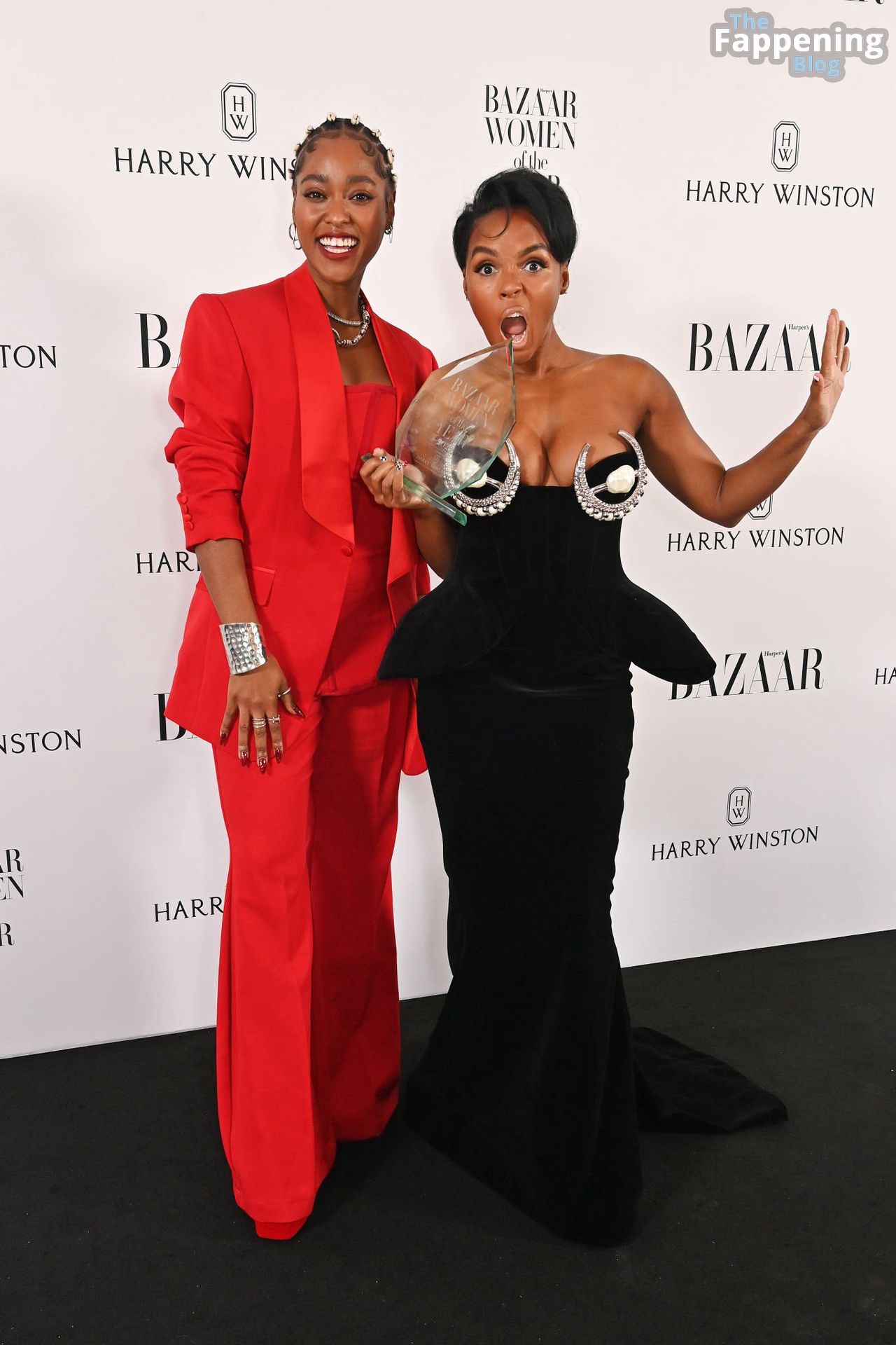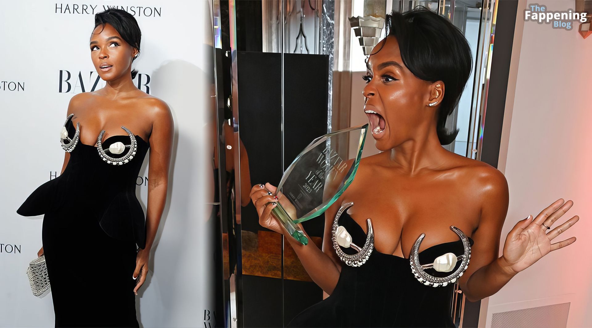 O visual de Janelle Monáe que exibe seu decote está chamando atenção no Harper’s Bazaar Women of the Year Awards.