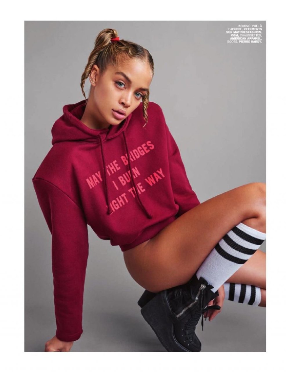 A garota tem uma tatuagem “Made in Germany” – um sinal de qualidade. Jasmine nasceu na Alemanha, e a futura amiga das irmãs Hadid, Jenner e Kardashian cresceu na Carolina do Sul.
