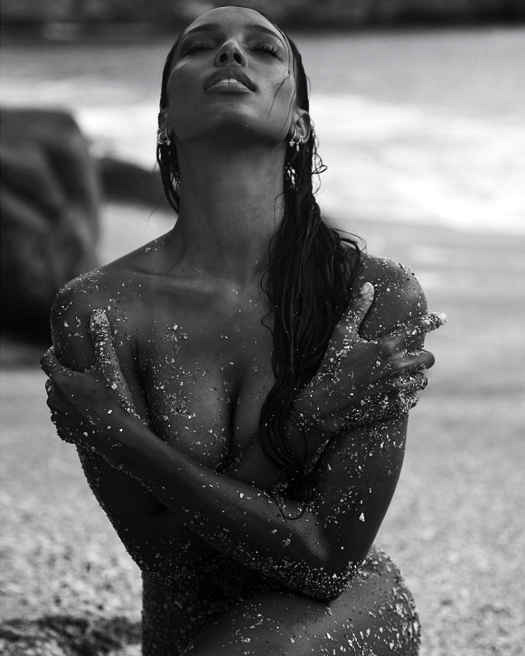 Estamos satisfeitos com as fotos nuas em preto e branco (cobertas) da modelo americana de 27 anos Jasmine Tookes, fotografada por David Roemer e postada no Instagram, 14/03/2018. Praia, areia e beleza sedutora! Se você perdeu duas fotos coloridas, confira aqui.