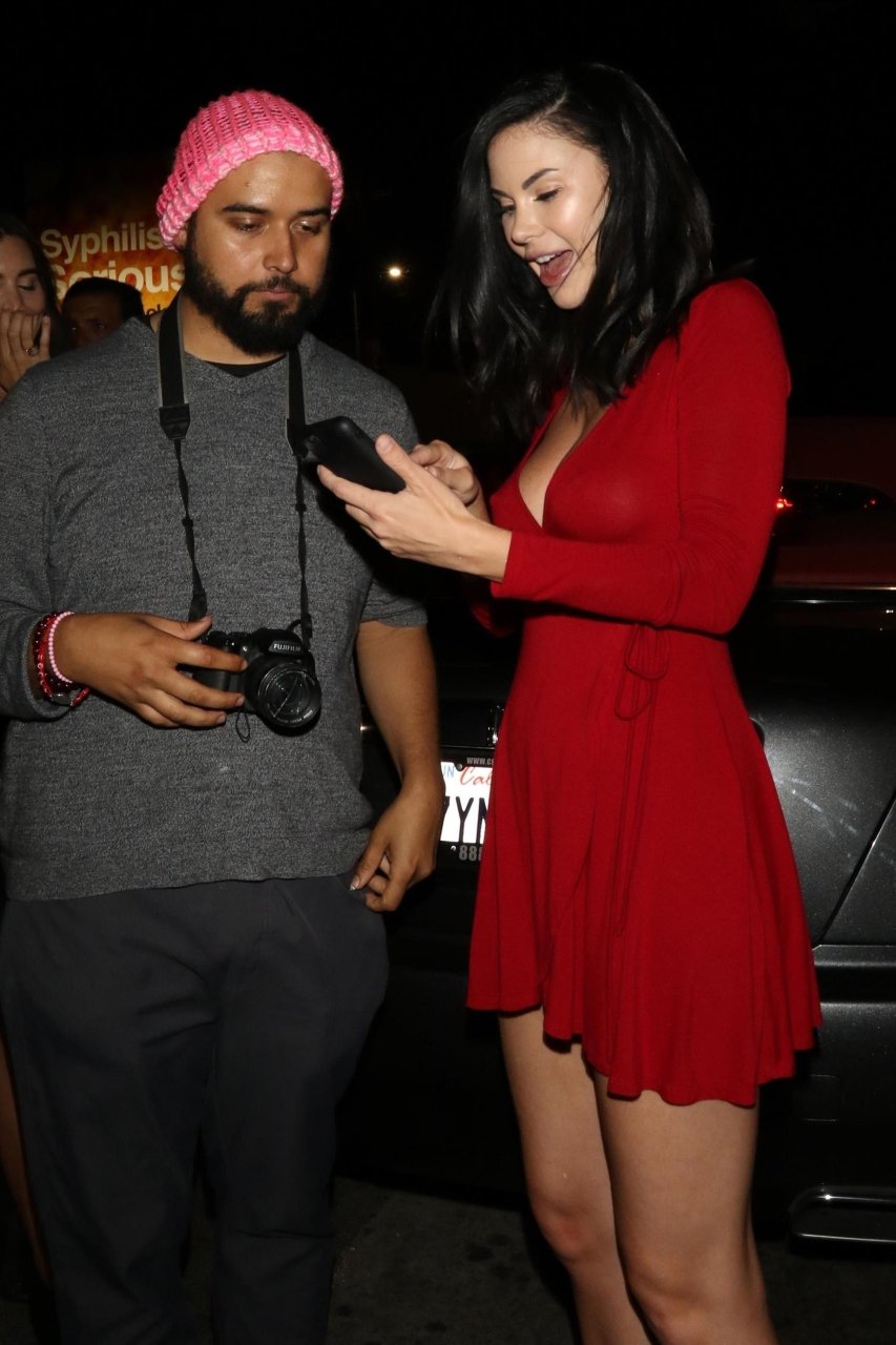 Modelo da Playboy, Jayde Nicole surpreende o público ao mostrar seus seios nus para as câmeras após uma noite no Warwick em Hollywood, 11/04/2018. Jayde Nicole é uma modelo e atriz canadense. Idade: 32 anos.